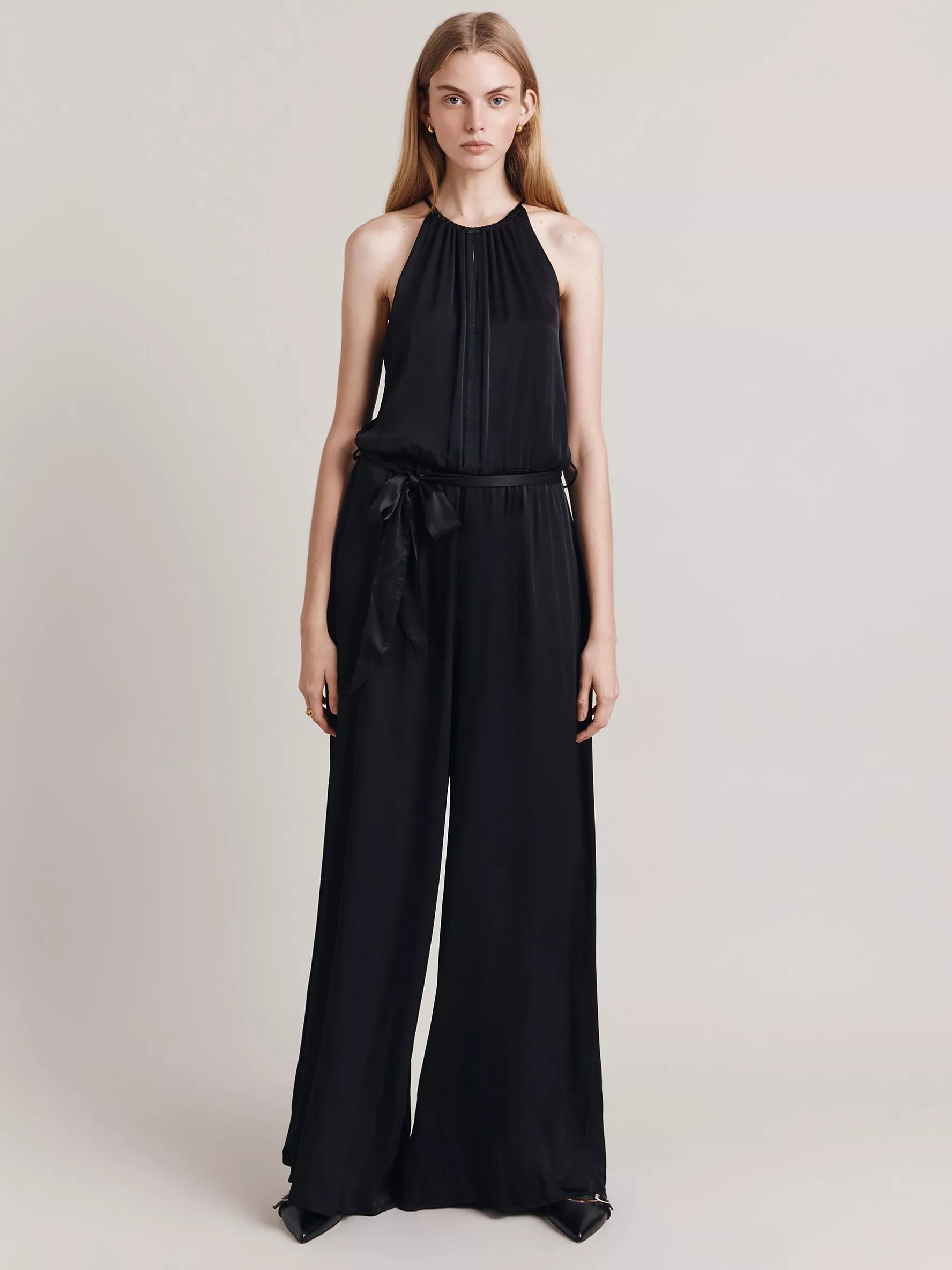 Elsie is a contemporary twist on a bridal jumpsuit, loose fit in the leg it you can cinch in the waist with the satin belt tie. Also featuring a keyhole detail in the front and back and gathered neckline to allow for as much or as little skin shown.