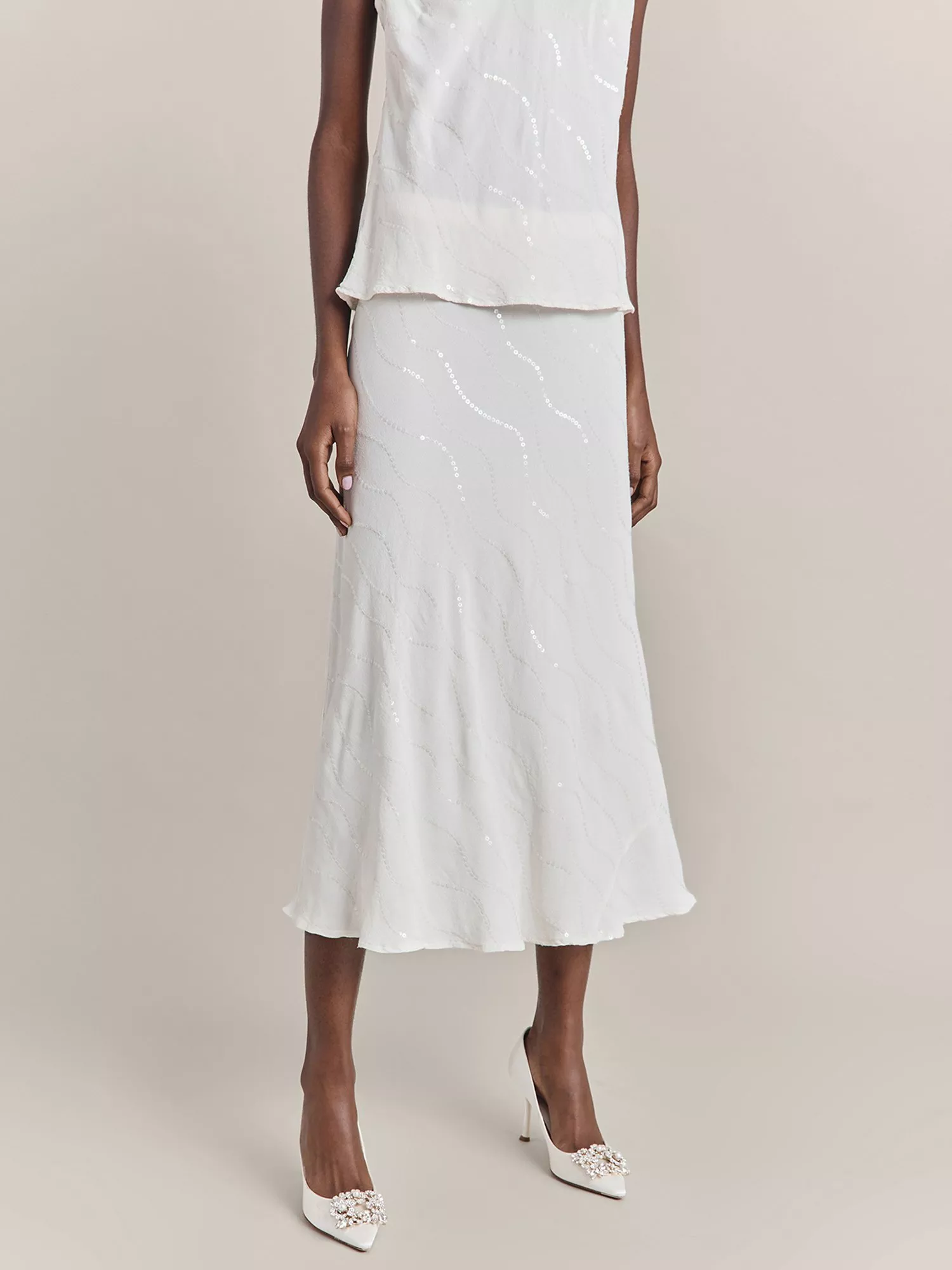 Cut to a classic A-line silhouette, this midi skirt by Ghost shimmers with detailed embellishment.