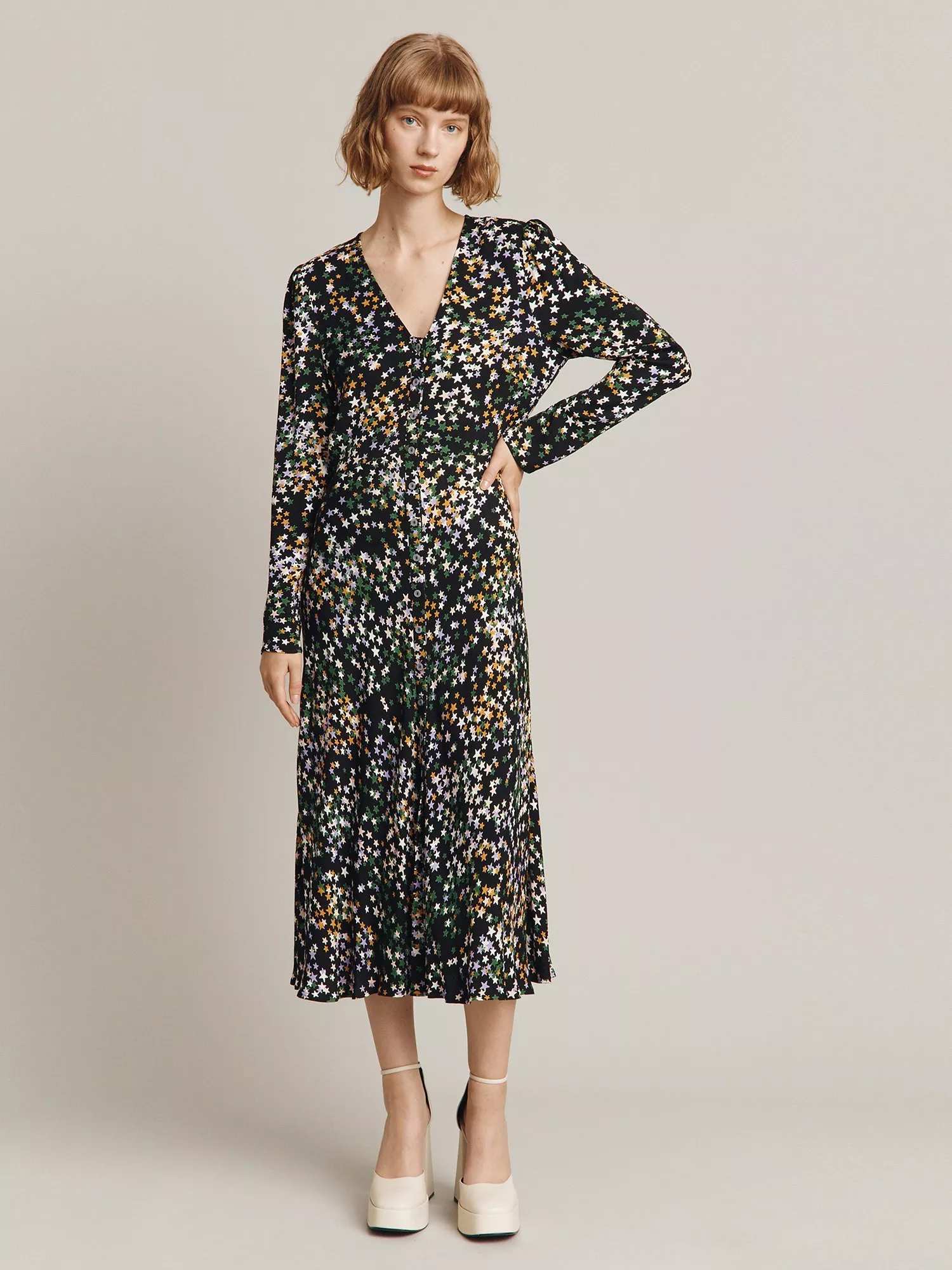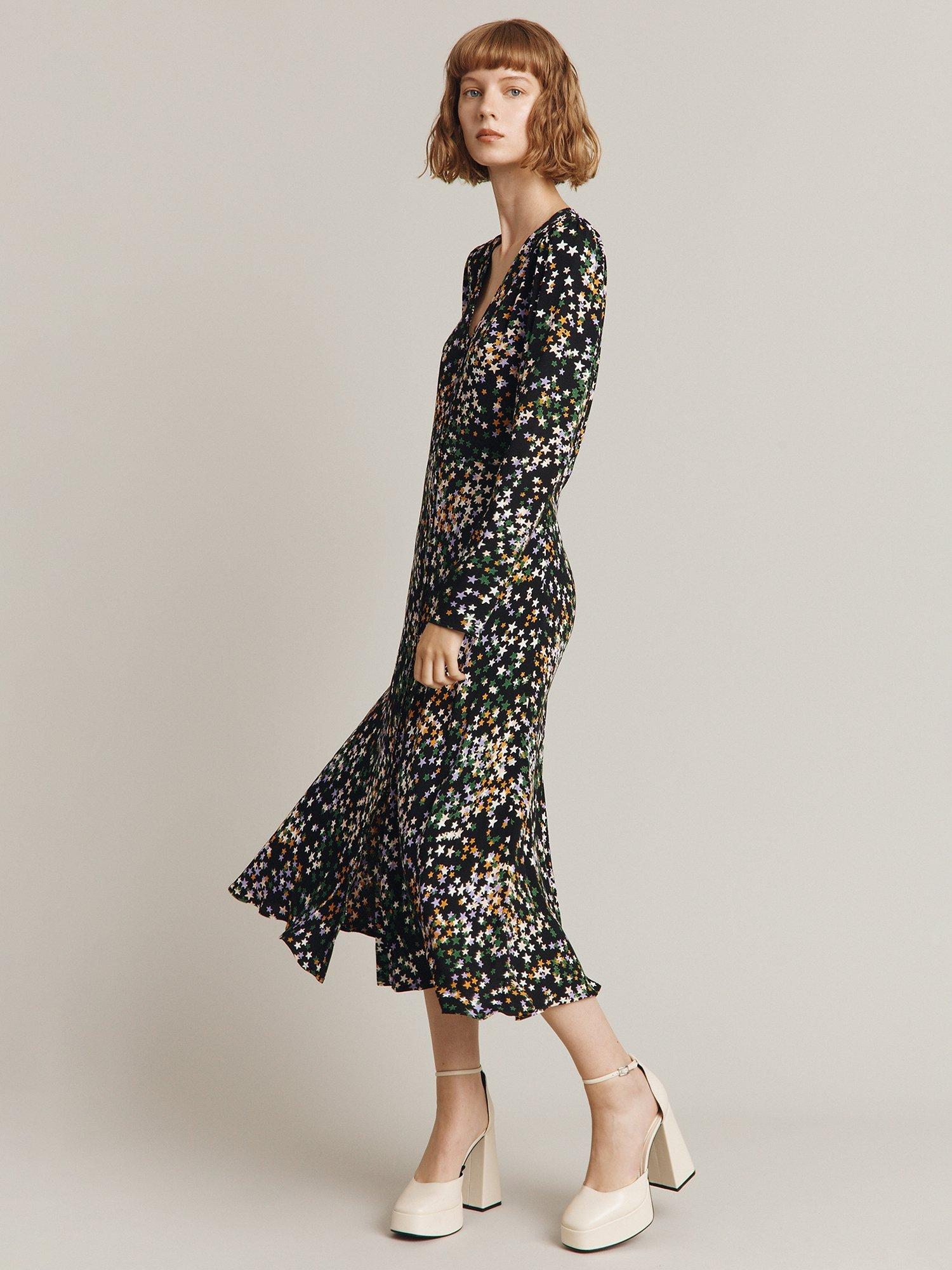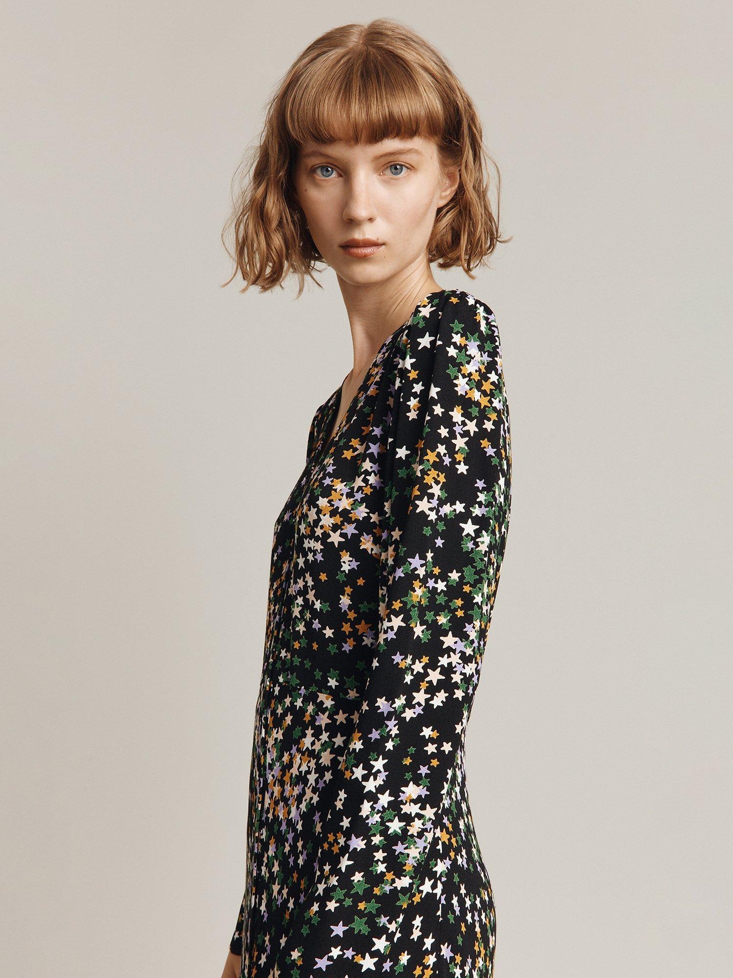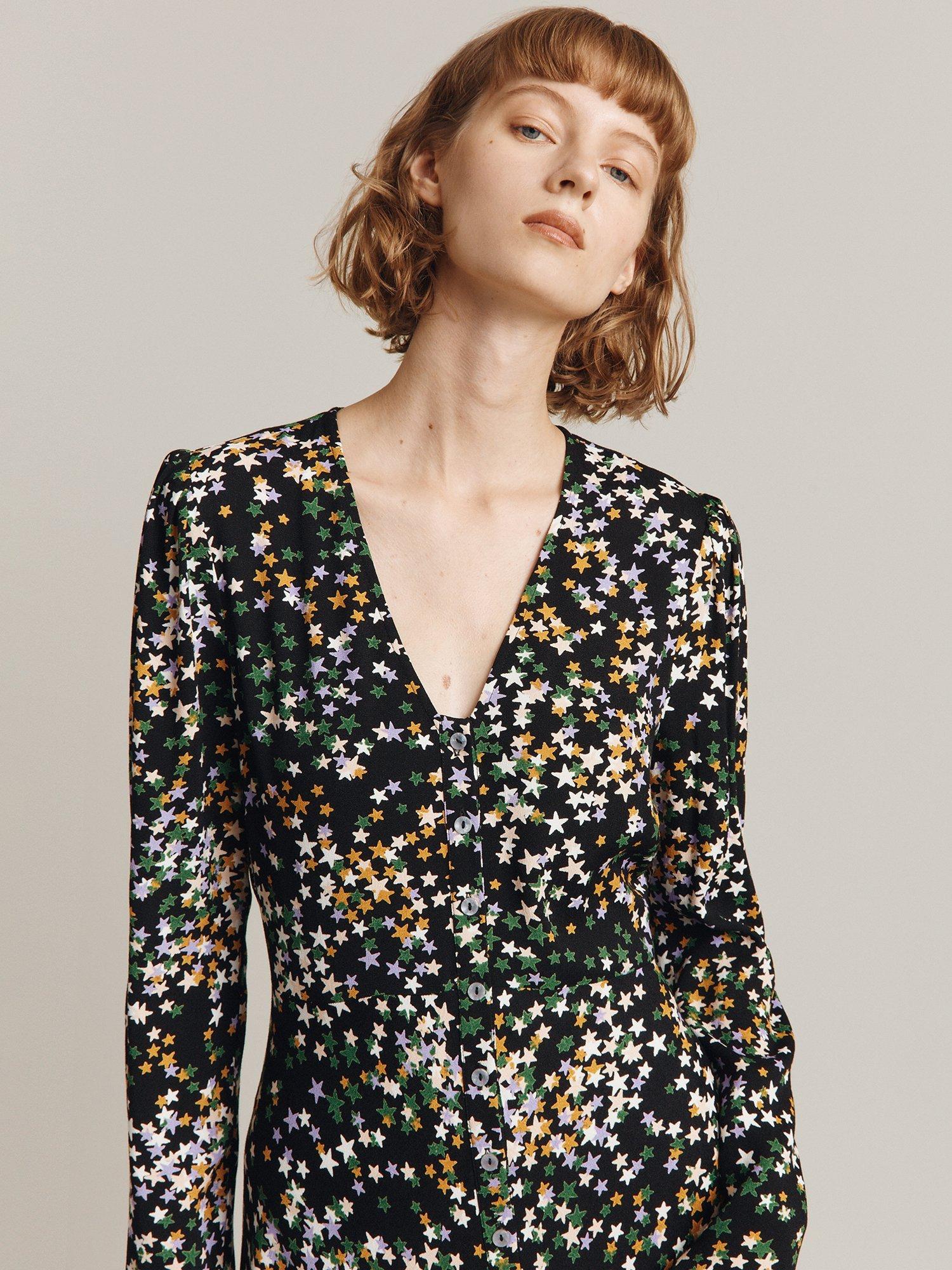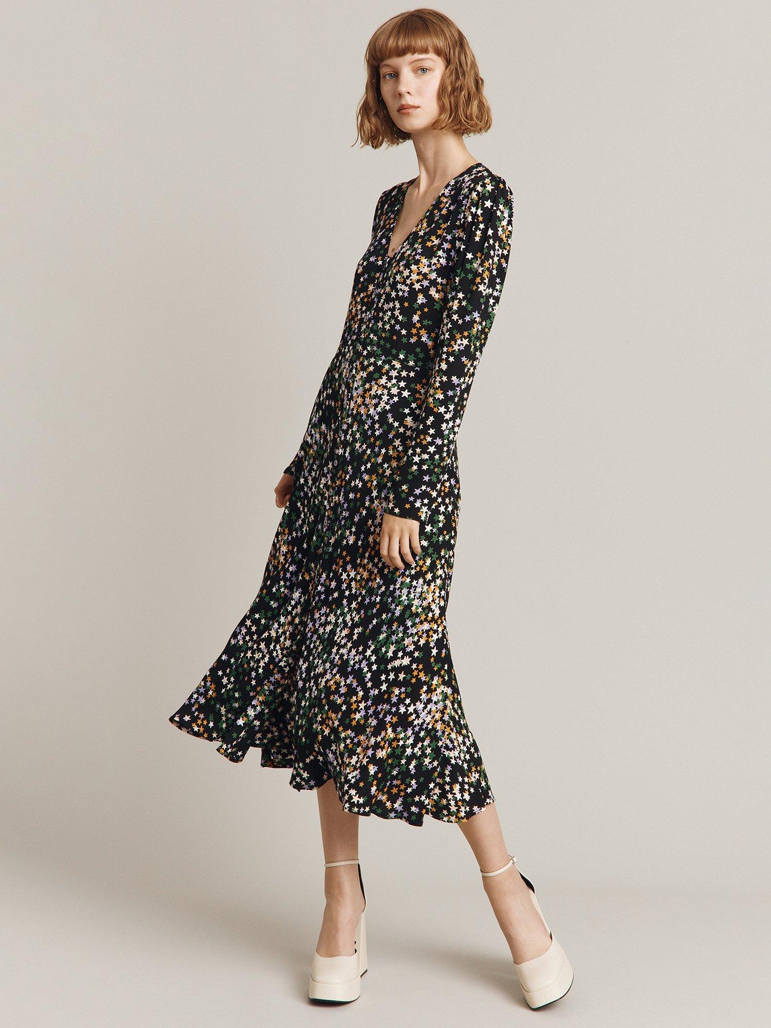 In a flattering fit-and-flare silhouette, this midi dress by Ghost is covered with a sweet starry print.