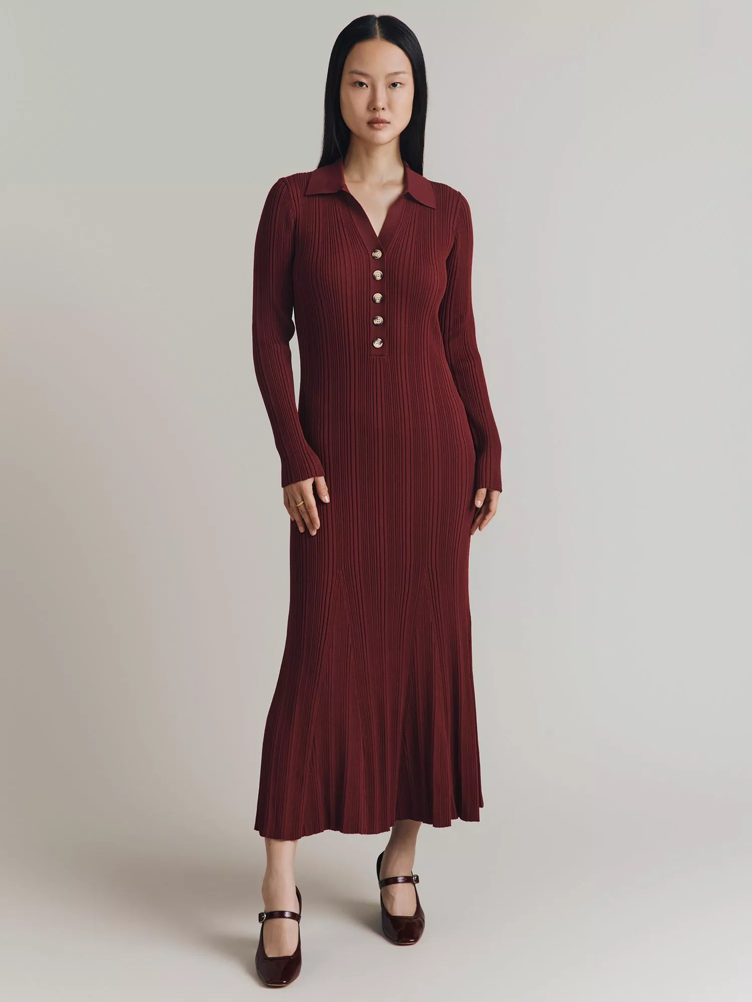 Exaggerating your silhouette in a fit and flare shape, this knitted midi dress from Ghost is cut with a collar, full-length sleeves, and comes without pattern or print so you can set your imagination and creativity free when it comes to accessorising.