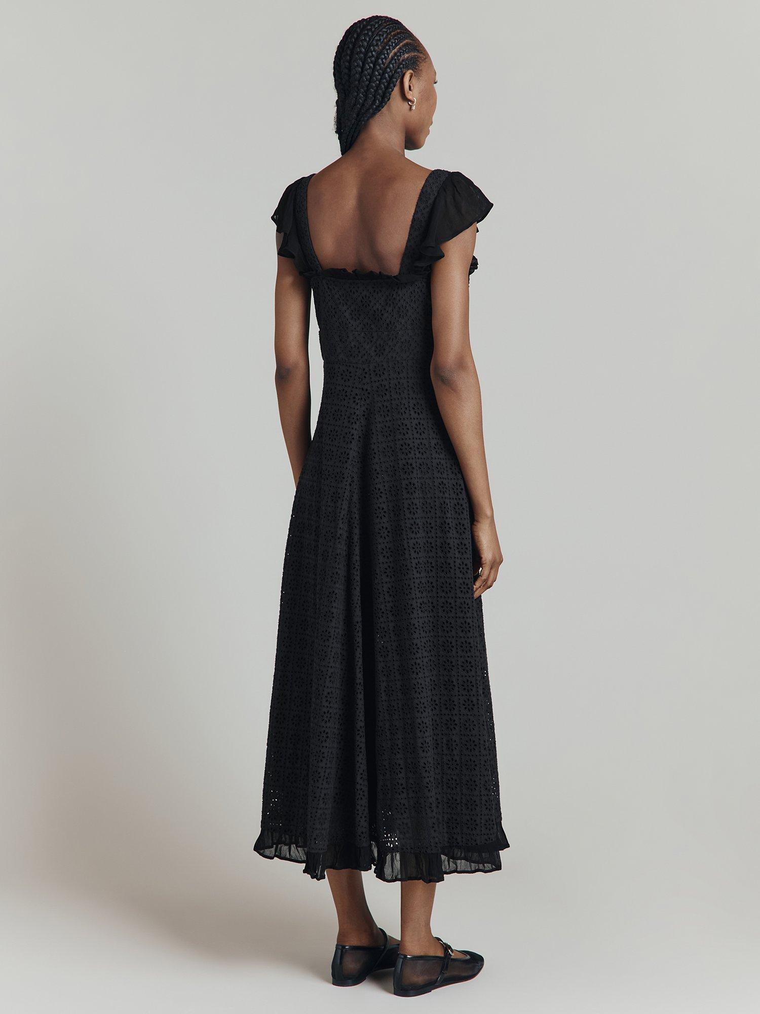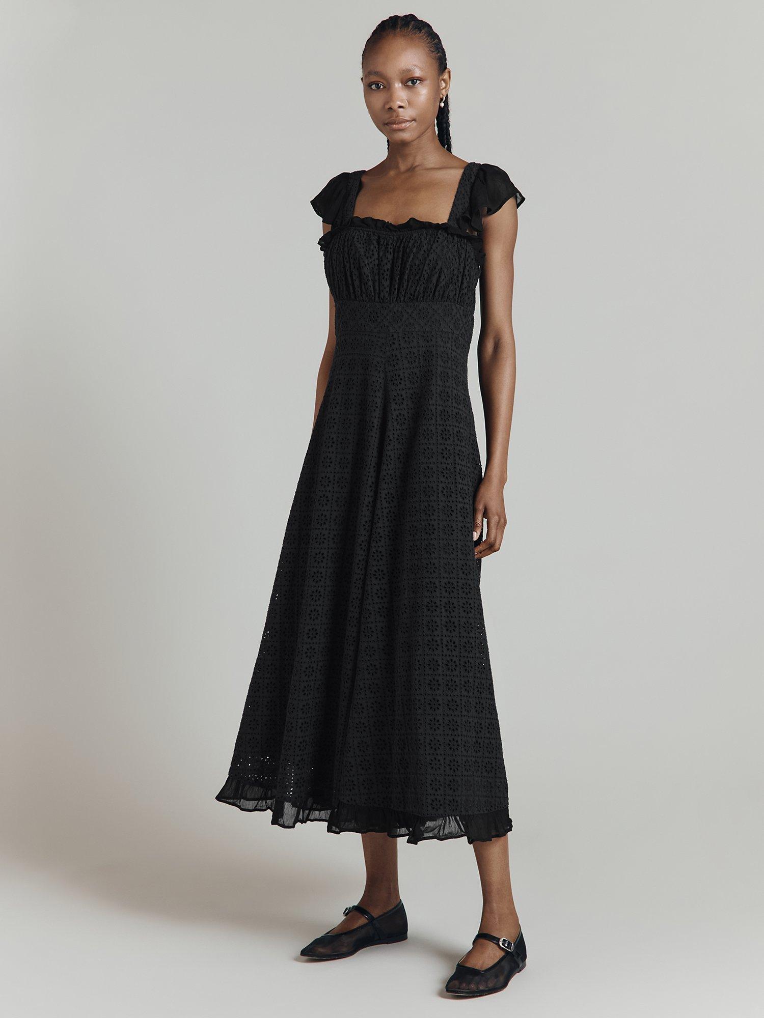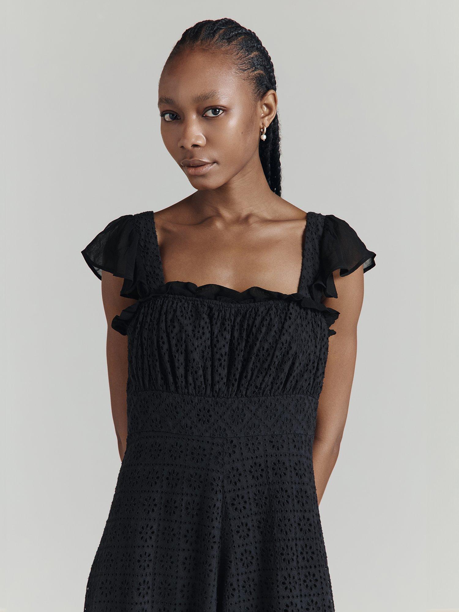 As chic as her Gallic names suggests, Fleurine is a beautiful cotton maxi dress featuring intricate floral-inspired cutwork. With a gathered bodice trimmed in soft ruffled georgette, matching cap sleeves, a stunning empire line silhouette with wide waistband and a voluminous skirt, this is a statement dress that's perfect for a variety of settings. Fully lined with a concealed side-zip fastening.