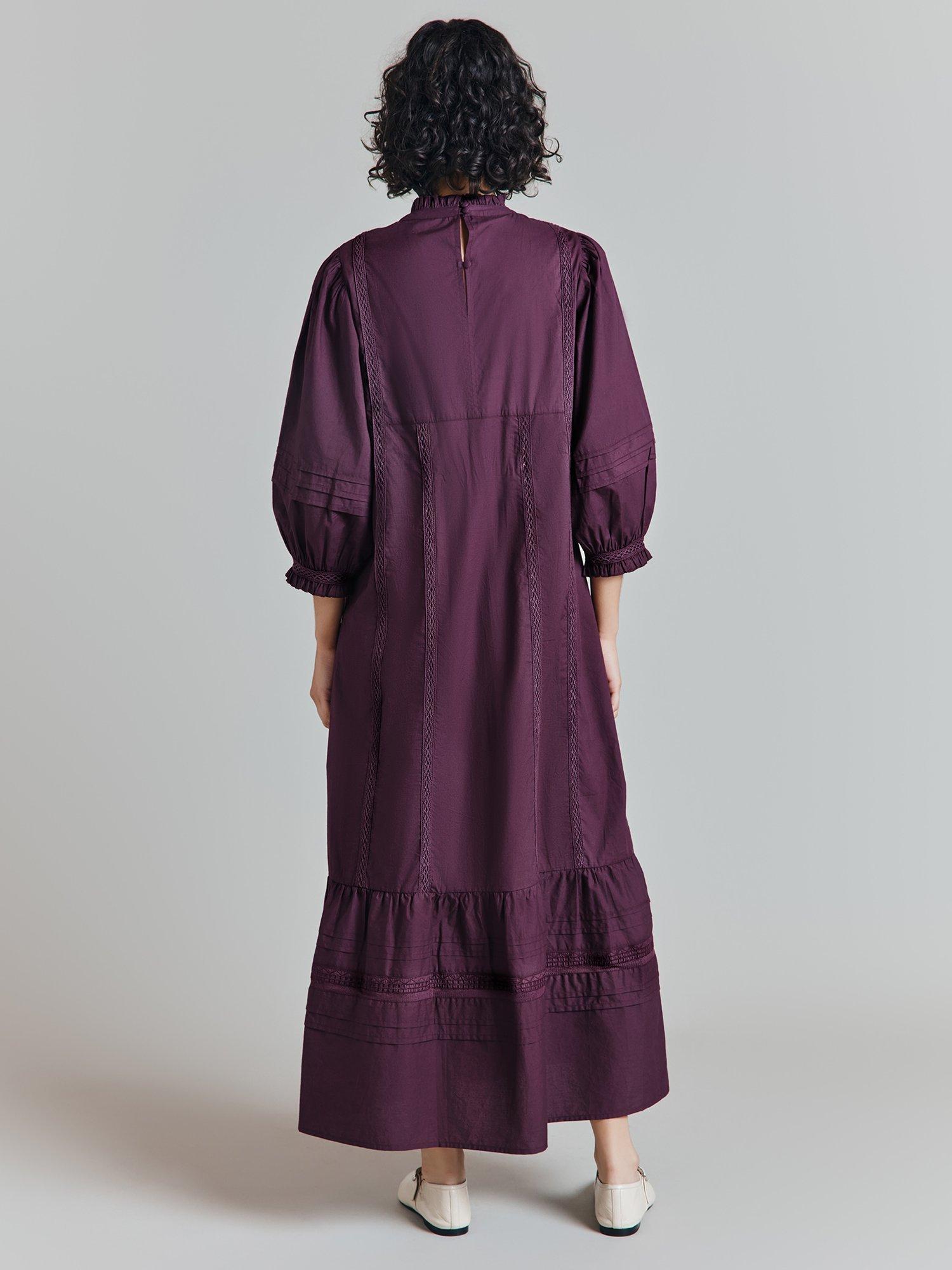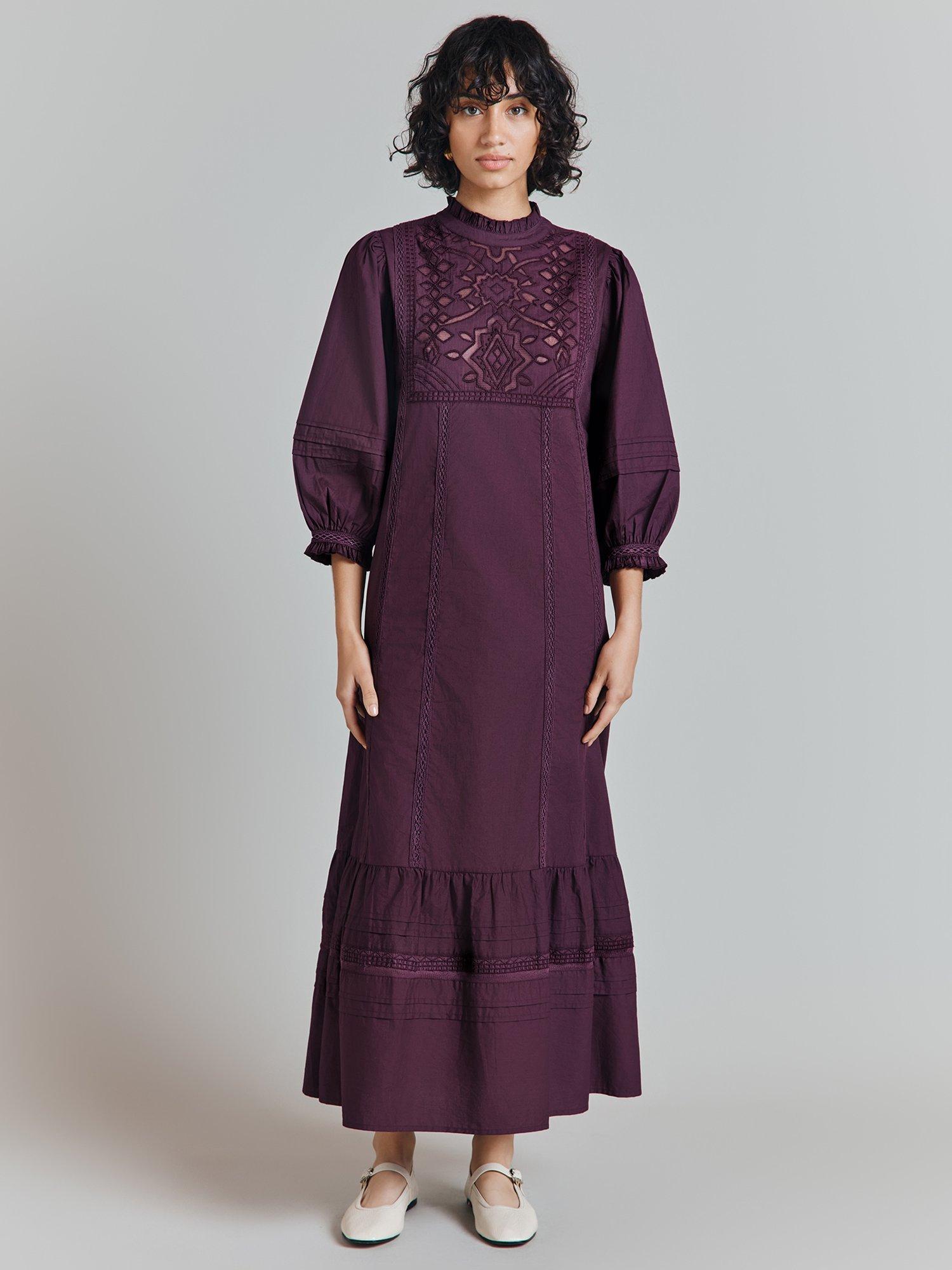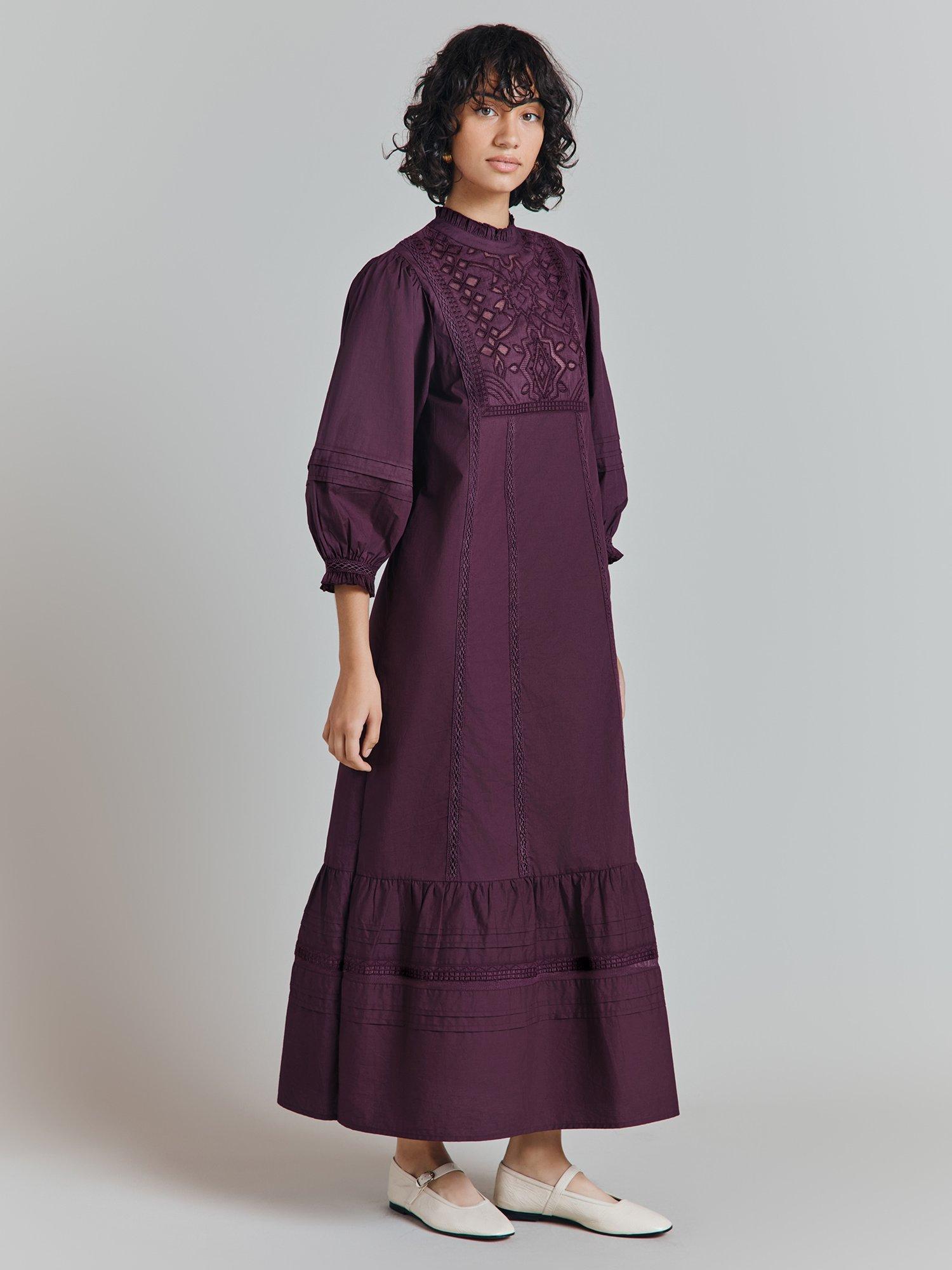 We've taken the enduring nightwear-as-daywear trend as inspiration for Frances, a long midi dress crafted in breathable cotton poplin. Full of romantic details, this loose-fit style features a cutwork applique bib front, delicate ruffles at the neck and cuff, lace inserts and gently voluminous ¾ length sleeves. Keyhole opening at the back.