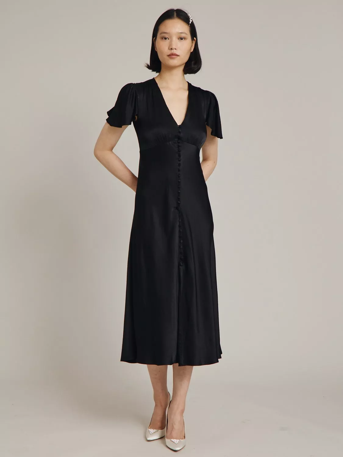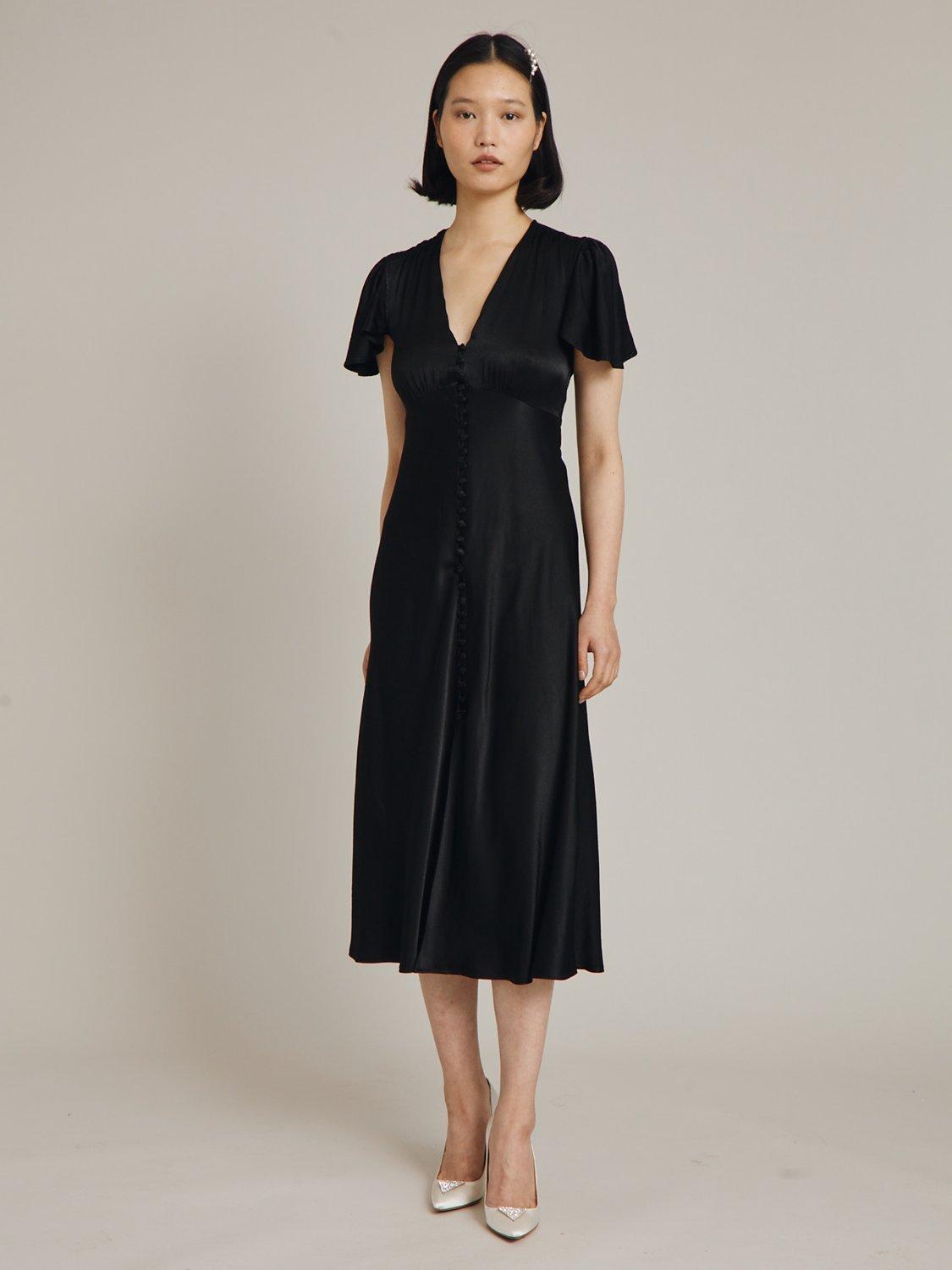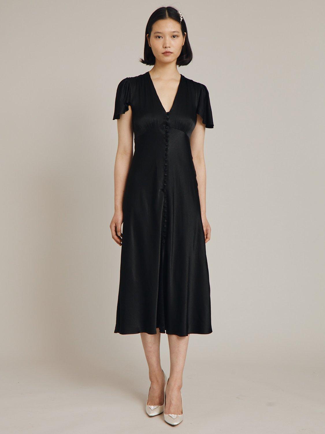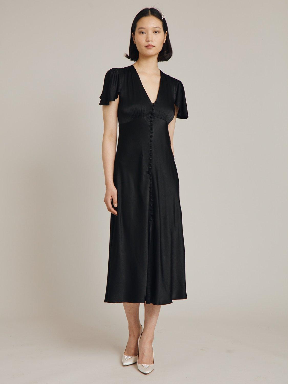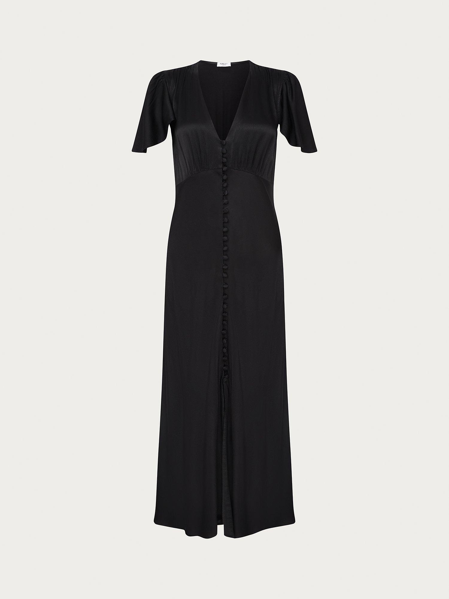 In a playful swing shape with gathered detailing, this satin midi dress by Ghost complements bold accessories with its plain canvas.