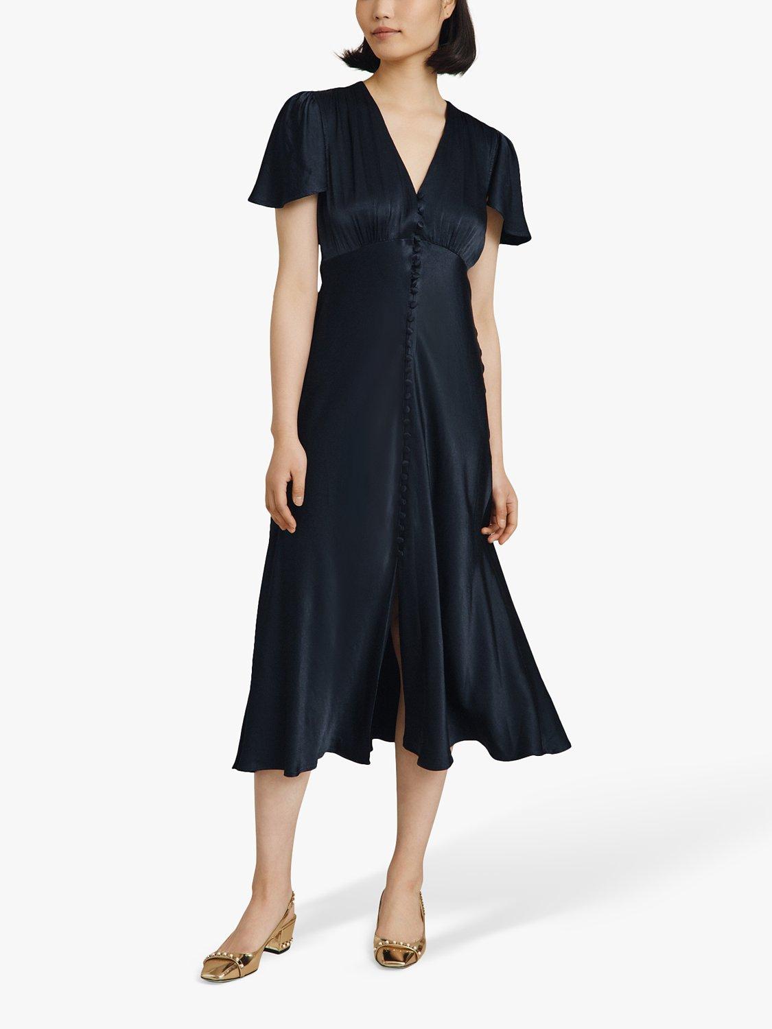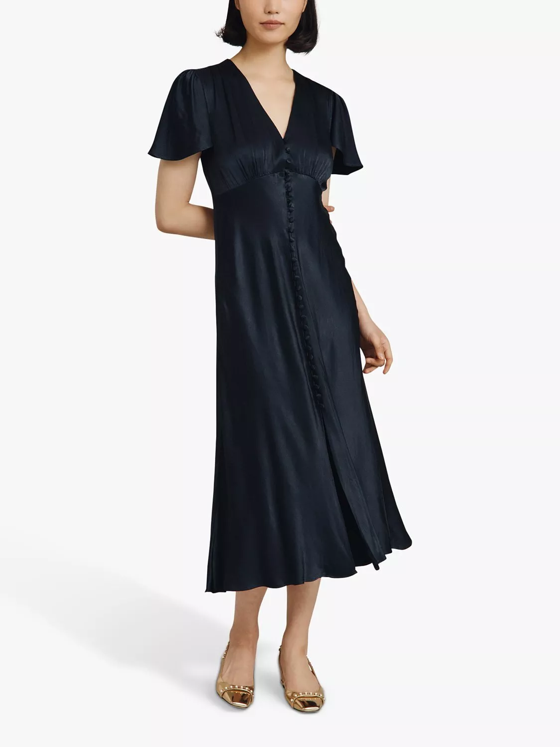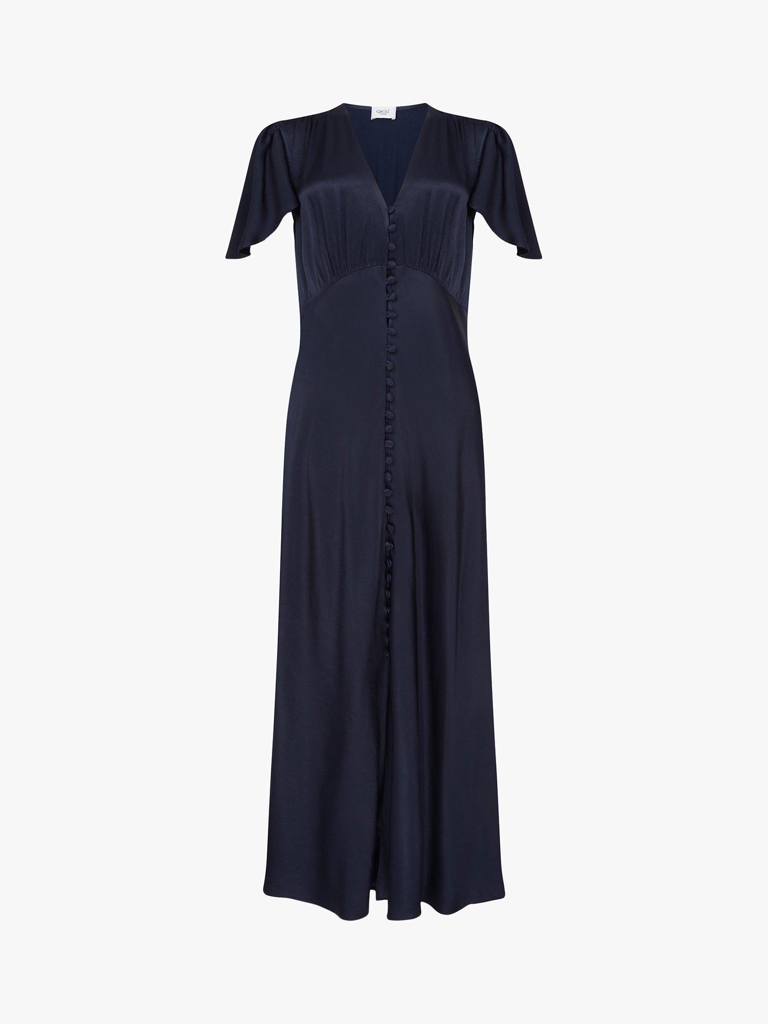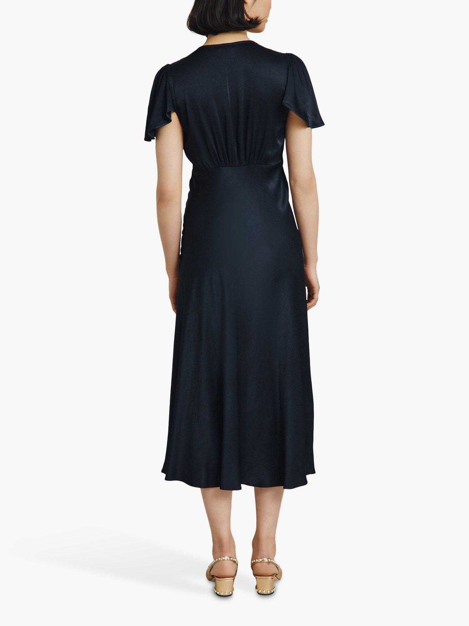 In a playful swing shape with gathered detailing, this satin midi dress by Ghost complements bold accessories with its plain canvas.