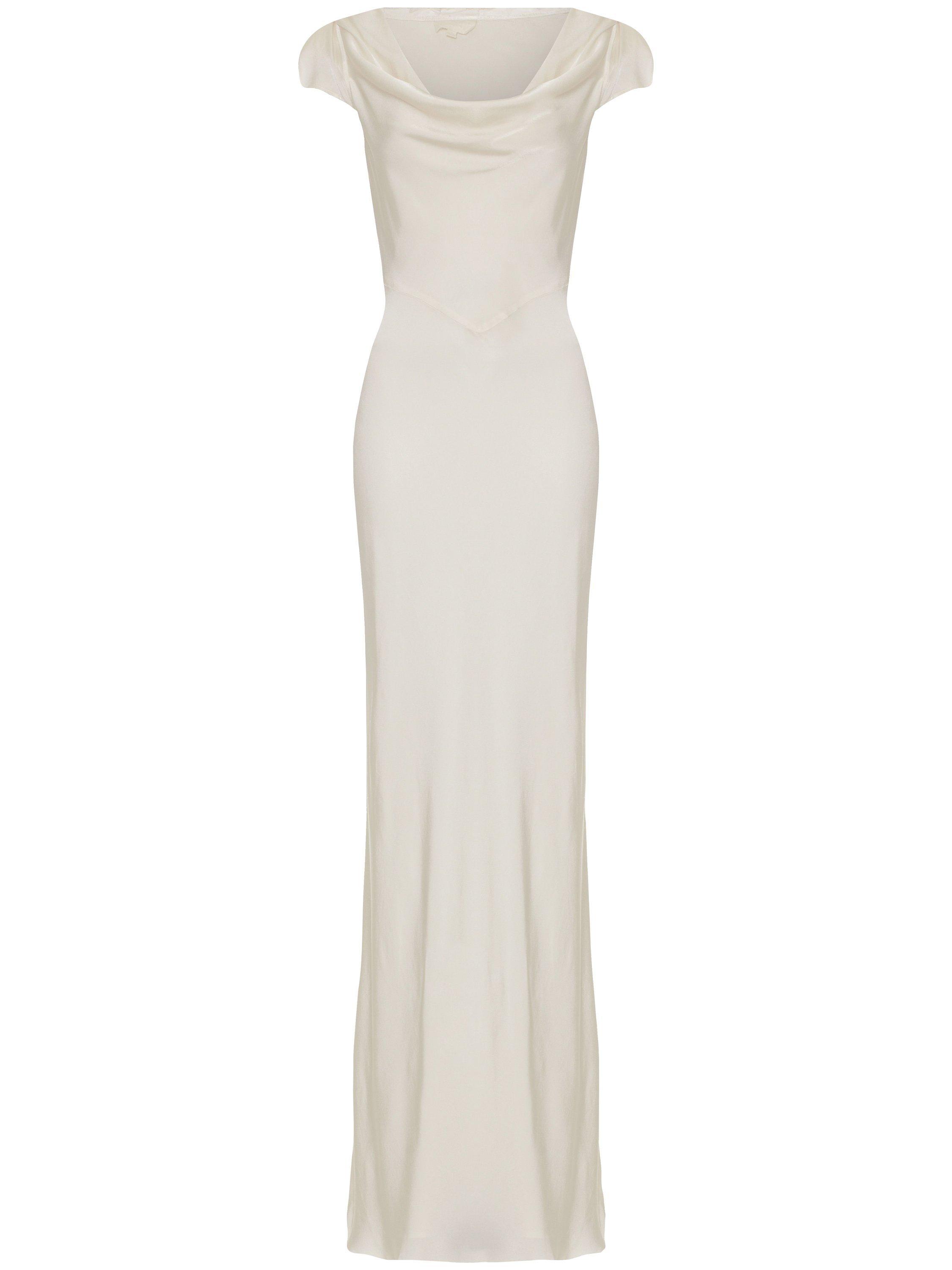 The Sylvia dress from Ghost is a beautifully crafted gown, featuring an elegantly draped neckline, capped sleeves and tuck detail to the back for a flattering fit.