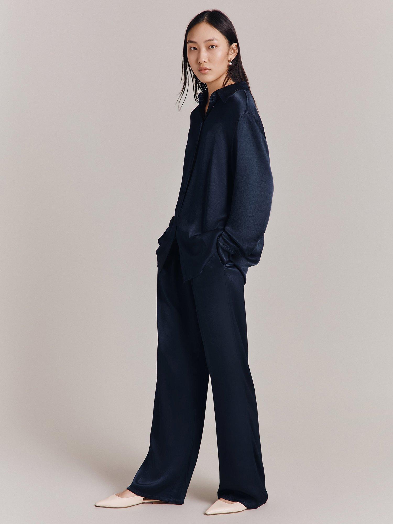 With a decidedly sartorial silhouette, this pair of tailored trousers from Ghost sit naturally on the hips and have a wide-legged fit.