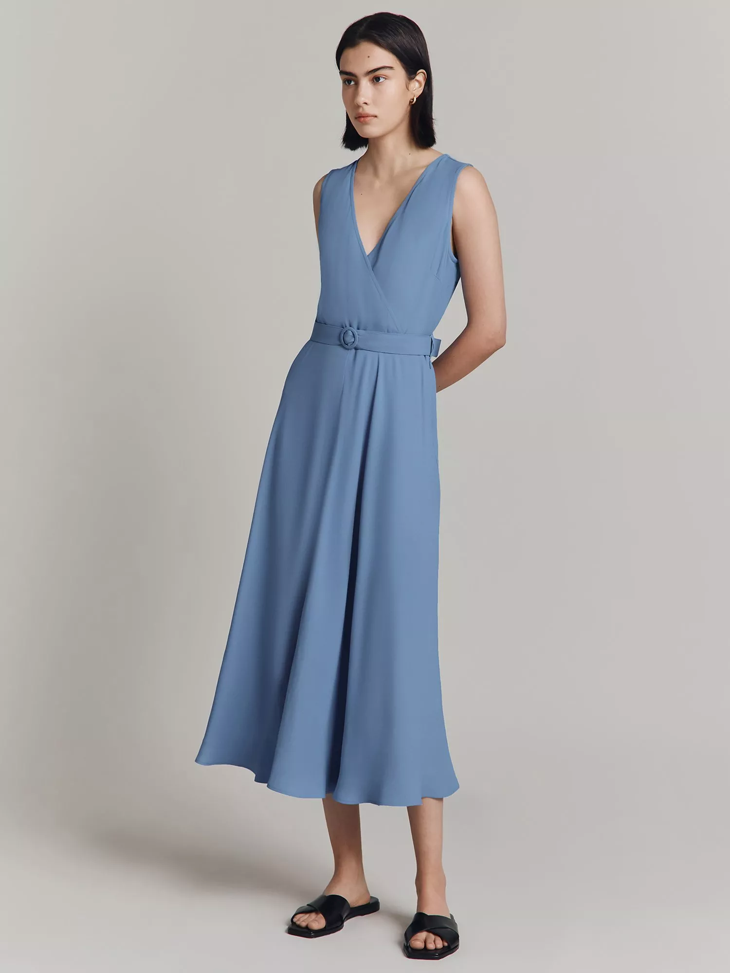 Versatility is a quality Ghost strive for in all their designs, and we think they've perfected it in Ivy. A sleeveless long midi dress in satin back crepe, we love the subtle wrap detailing on the bodice and elegant self-covered buckle belt at the waist. The skirt is bias cut for a universally flattering shape and graceful volume. Pair with flat sandals and a relaxed denim jacket for the day and dress up with midi-heels for the evening or events. Side zip fastening.