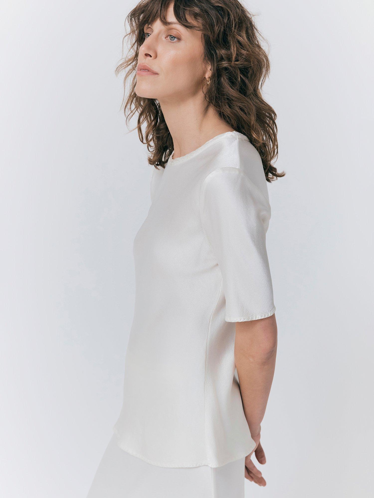 The Ivy top is crafted from our signature Satin fabric. Luxuriously soft and comfortable, Ivy features short sleeves and a round neckline. Style with jeans, trousers, skirts or shorts this versatile top is a wardrobe essential.