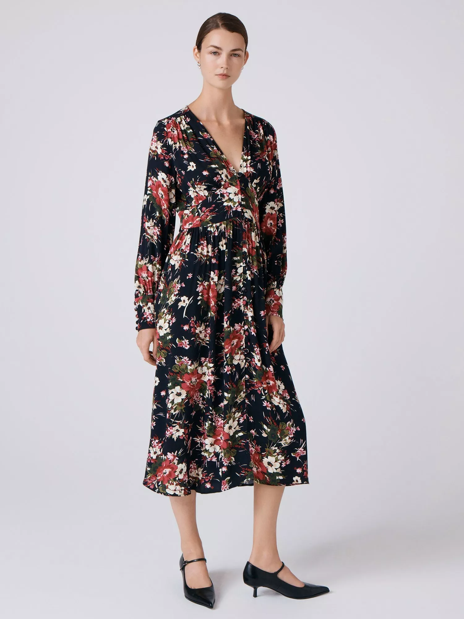 Taking inspiration from classic vintage tea dress styles, Jade is a chic way to take florals into the new season. Cut from versatile crepe fabric with a waist-accentuating underbust panel, plunging V-neckline and covered buttons at the front and cuffs. We love it worn with Mary-Janes for a retro-meets-contemporary feel.