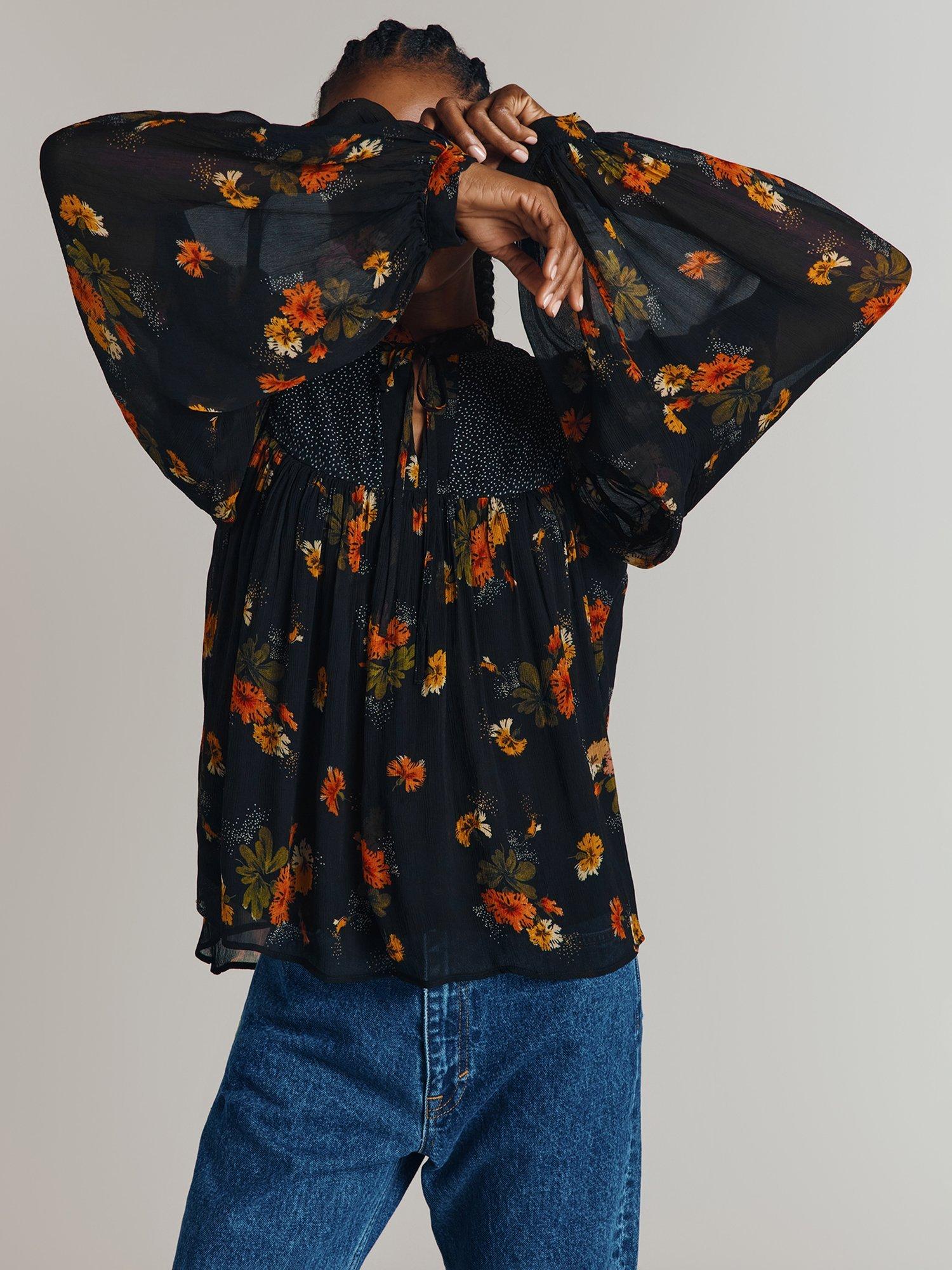 Bringing a neat addition to your wardrobe, this blouse from Ghost keeps it feminine with a spotted floral print. Designed with a tie neckline and long sleeves, it is made from a light yet durable fabric and is an everyday wardrobe essential.