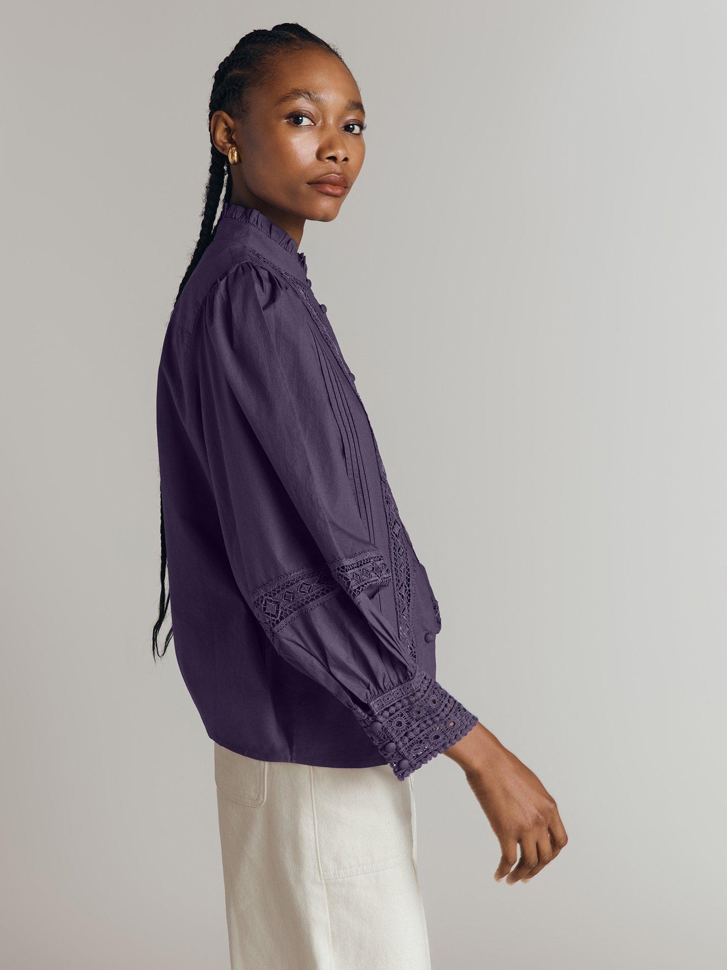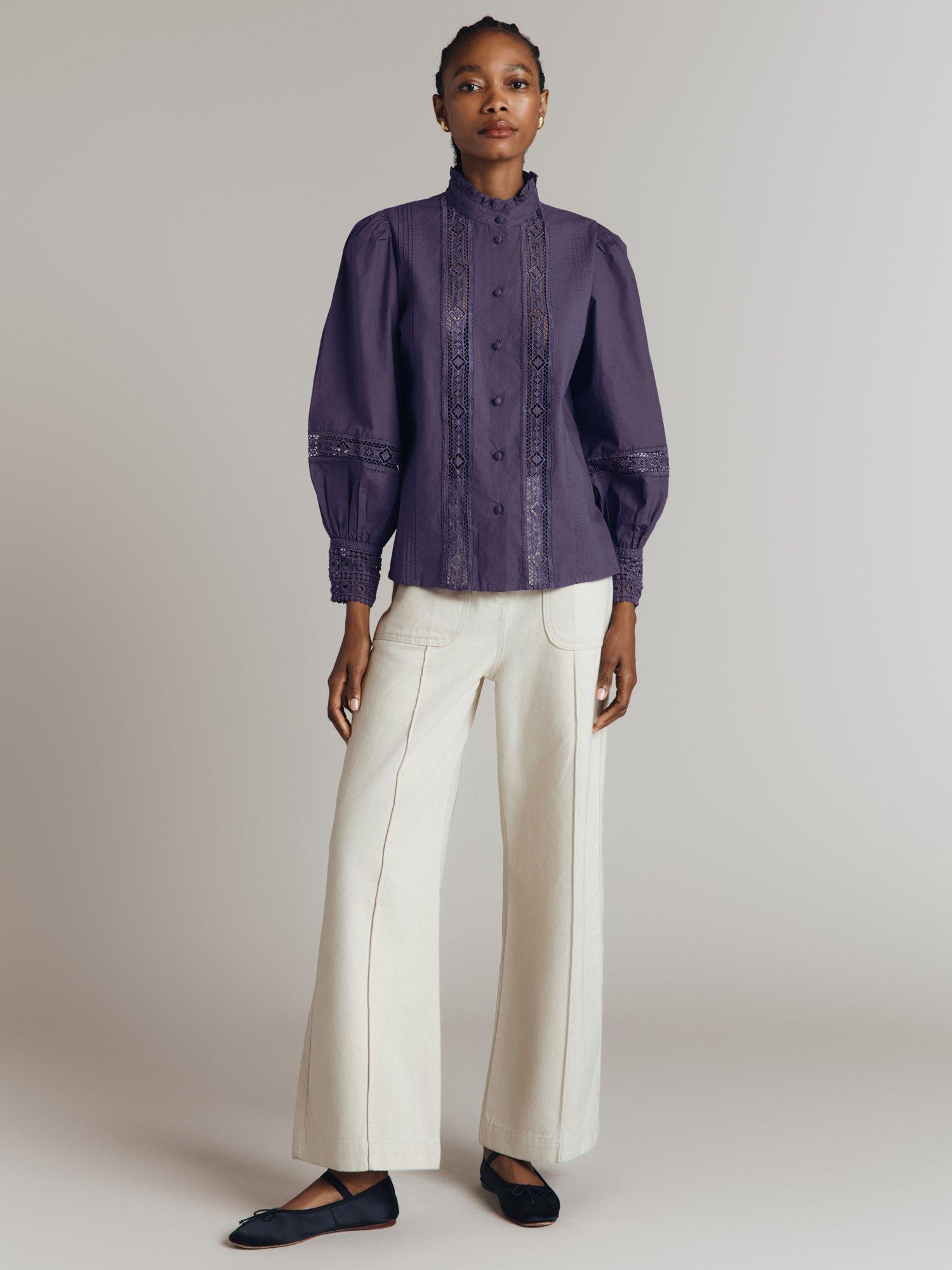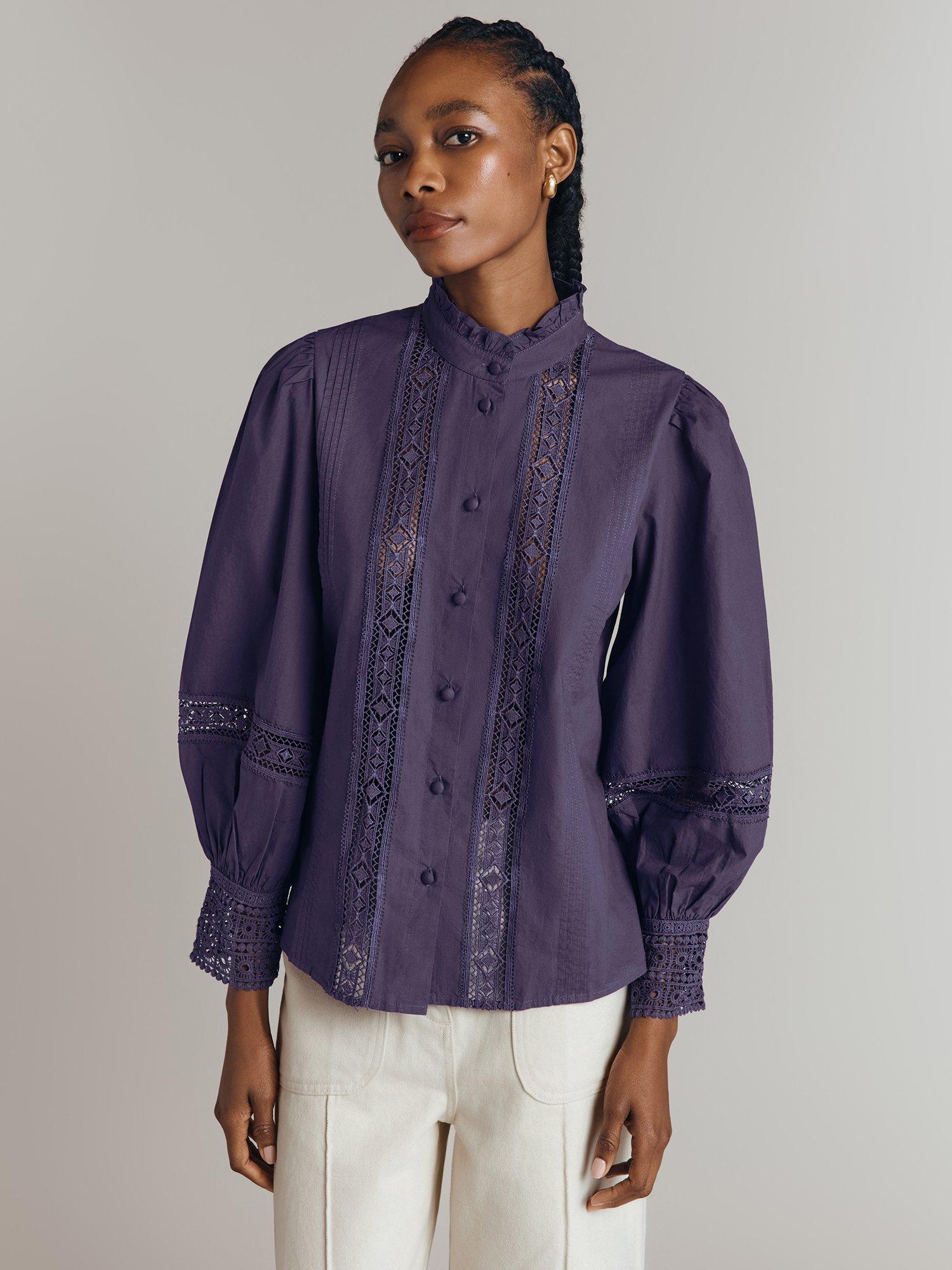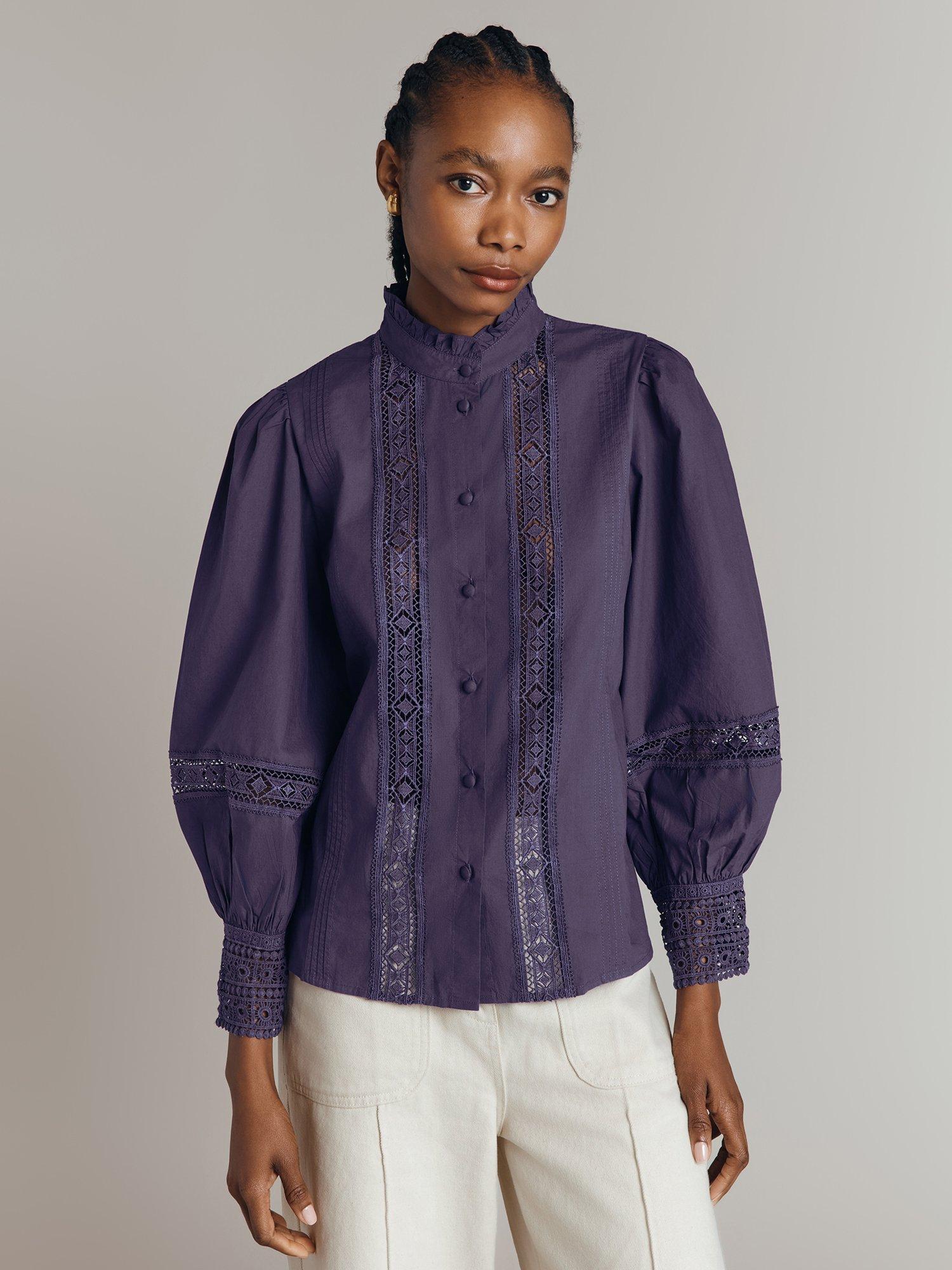 Bringing a neat addition to your wardrobe, this lace openwork blouse from Ghost is framed with a collar and long puffy sleeves. Made from cotton for comfortable wear, it'll elevate your looks effortlessly.