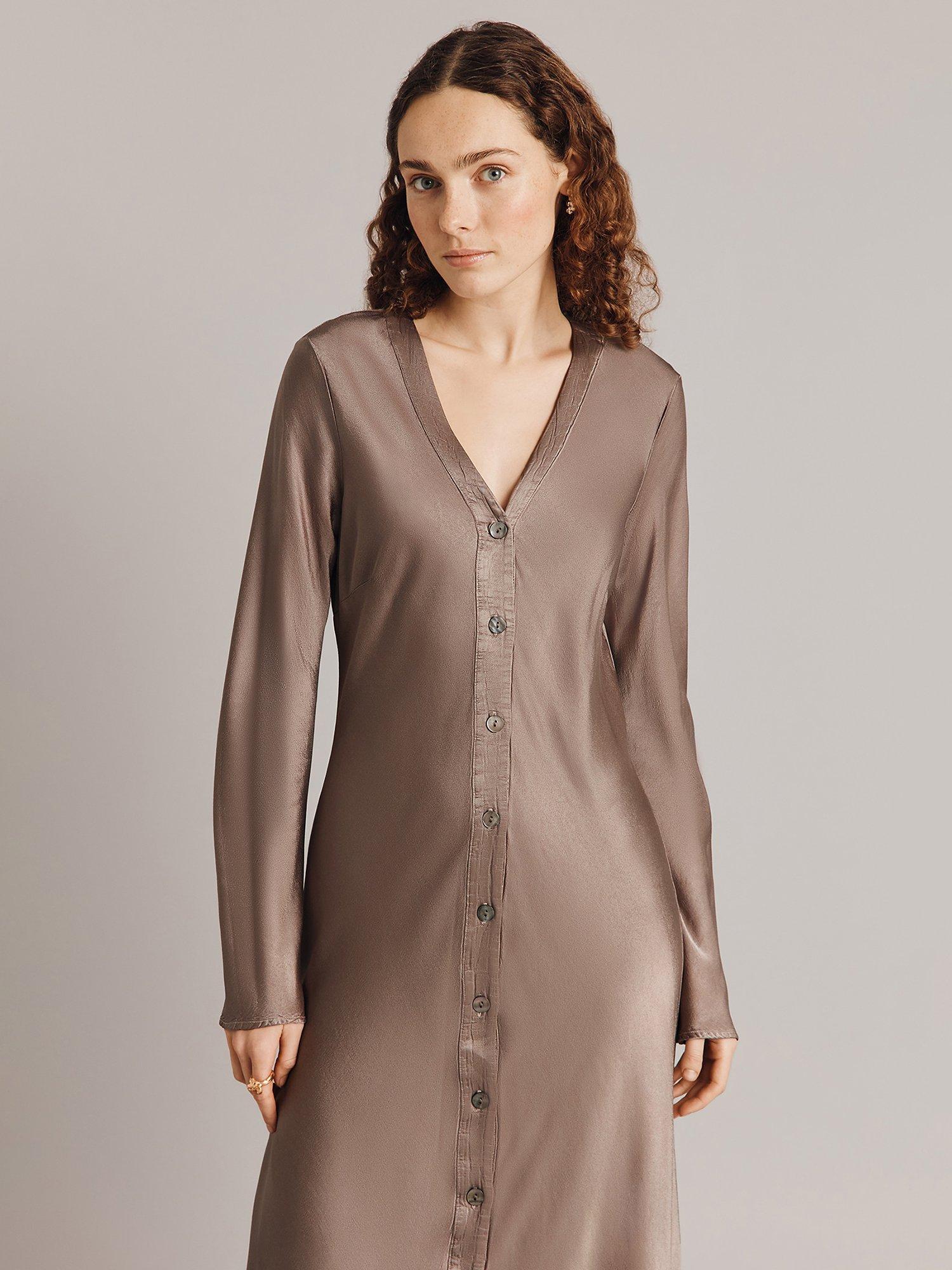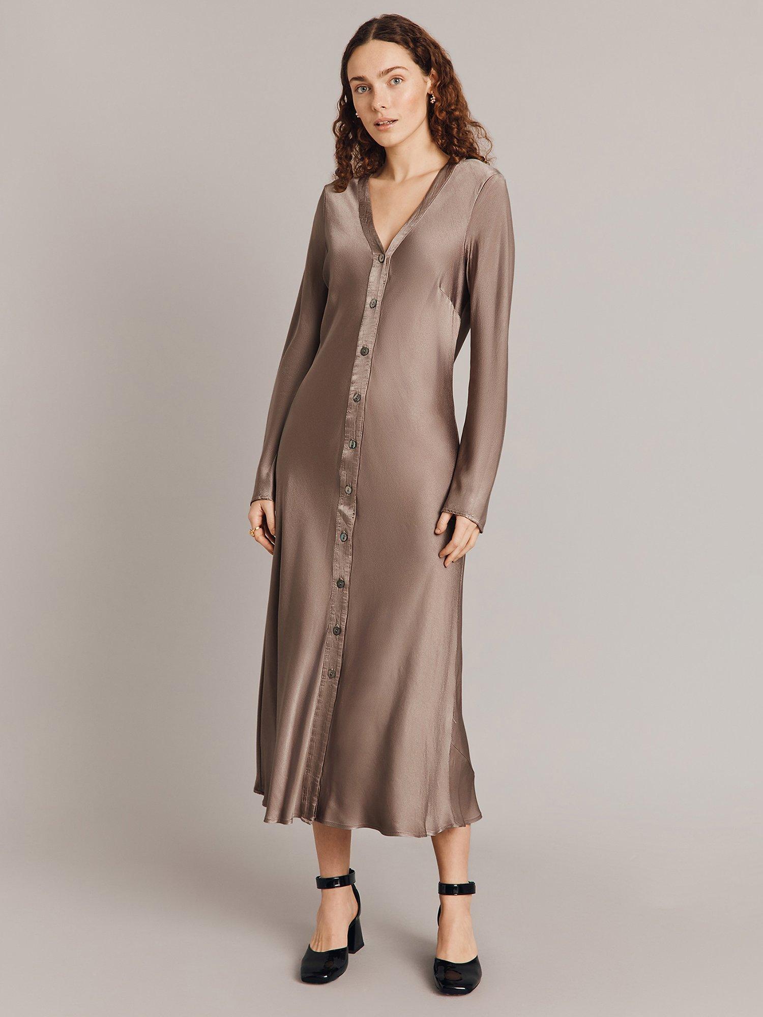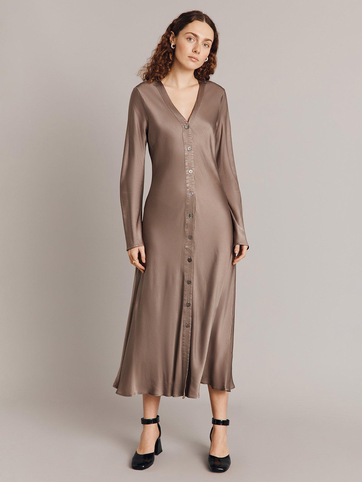 Designed in a fuss-free A-line style, this midi dress from Ghost is made from liquid-like viscose. With a fuss-free but smart v-neckline and extra long sleeves, it redefines your collection with the minimum of fuss.