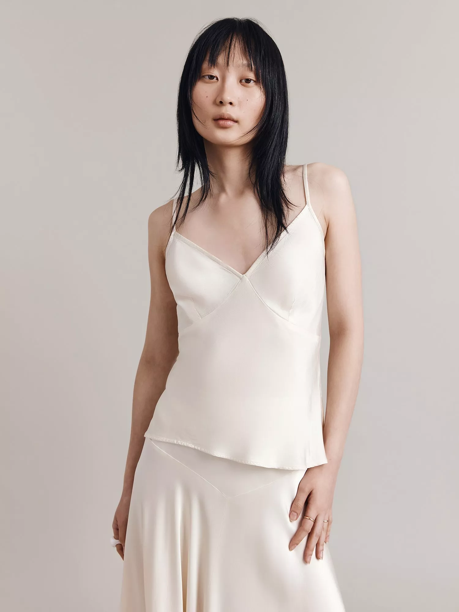 Made from silky smooth satin, this v-neck cami from Ghost is free-from-fuss for timeless appeal. Suspended from spaghetti straps, it's not just for daytime - try glamming it up for when cocktail hour comes around.