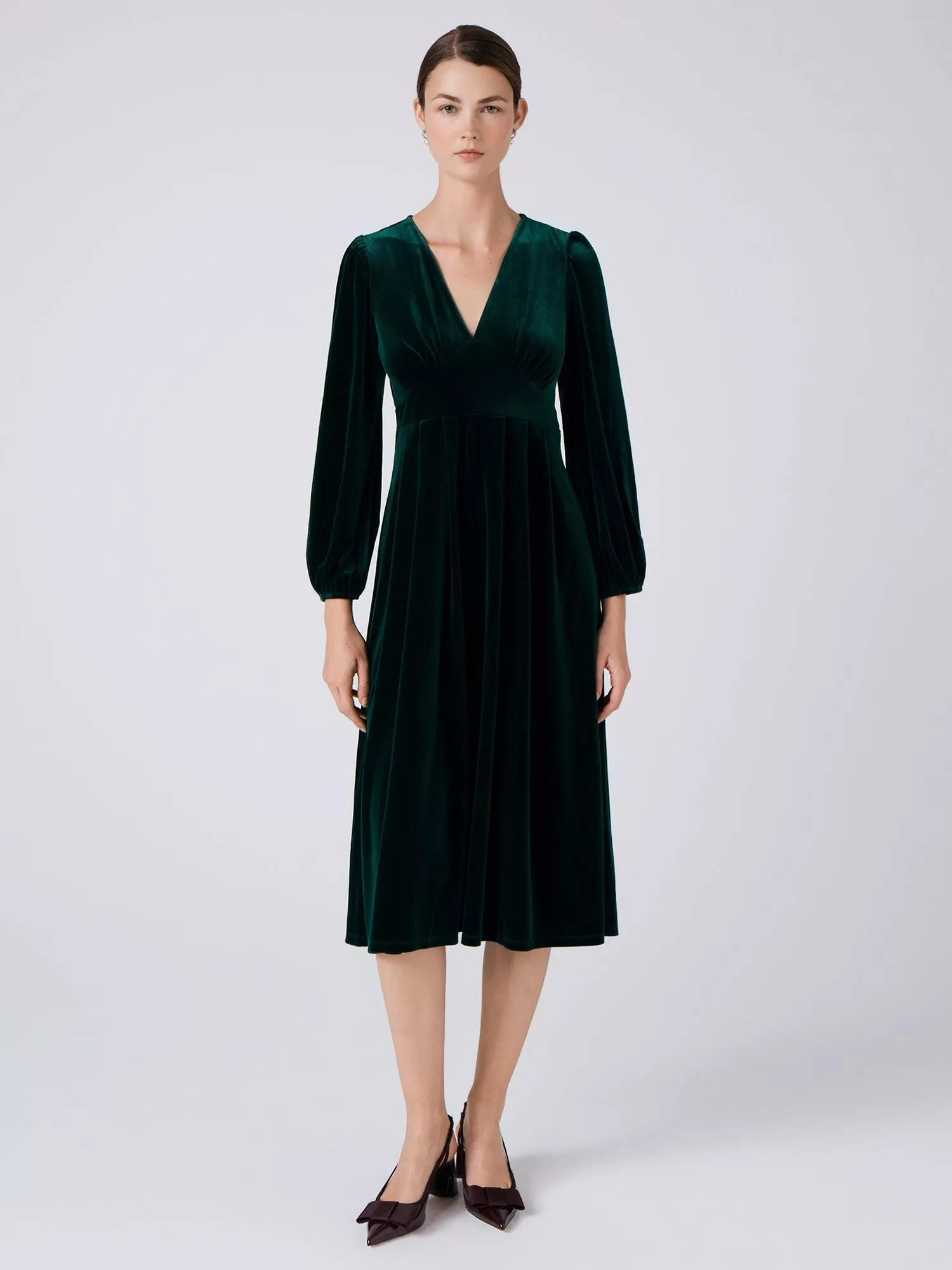 Kimberly is a beautiful midi dress, crafted in soft velvet jersey for maximum comfort and a touch of luxury. With a panelled waist for subtle definition, a deep V-neckline and gently voluminous sleeves, it’s a versatile piece you’ll find yourself turning to time and time again.