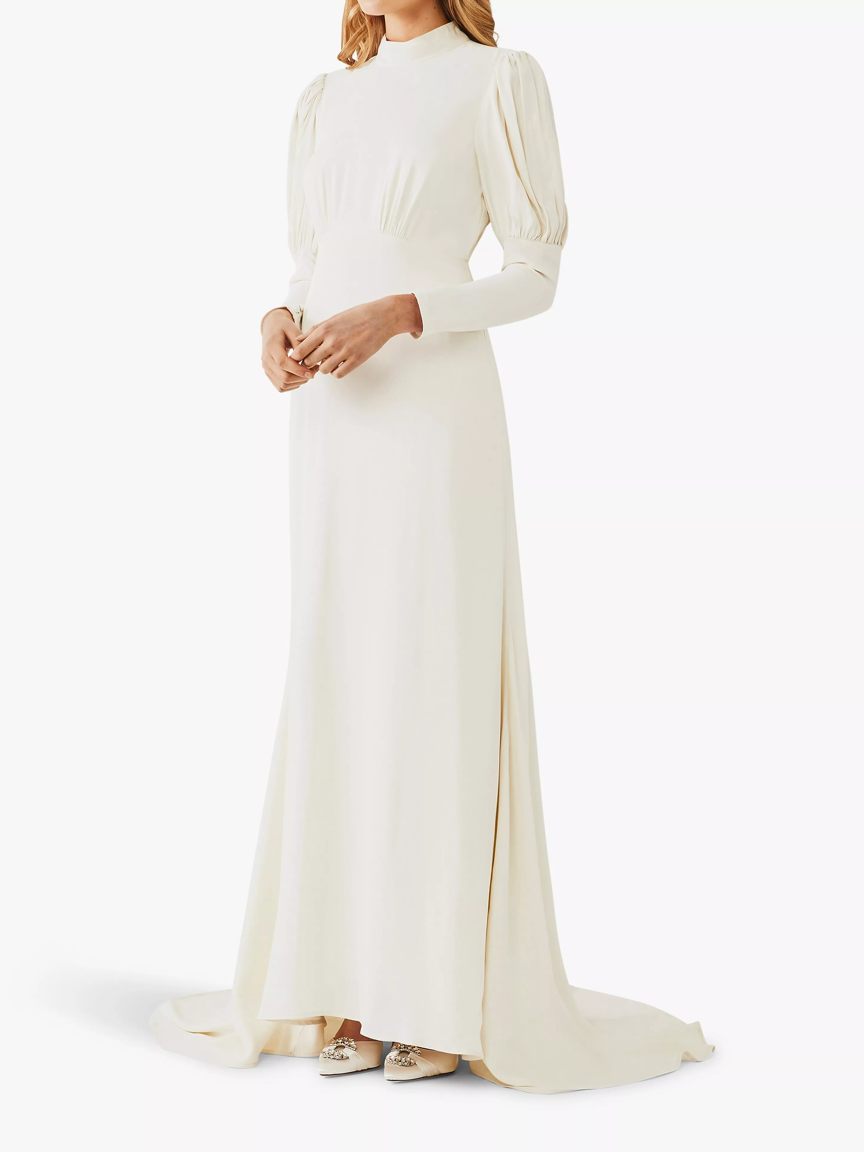 Cut on the bias into a slim-fitting, empire line shape, it gently hugs the hips. Boasting a train at the back, it includes a hook fastening to allow for easy movement for when you want to dance the night away.