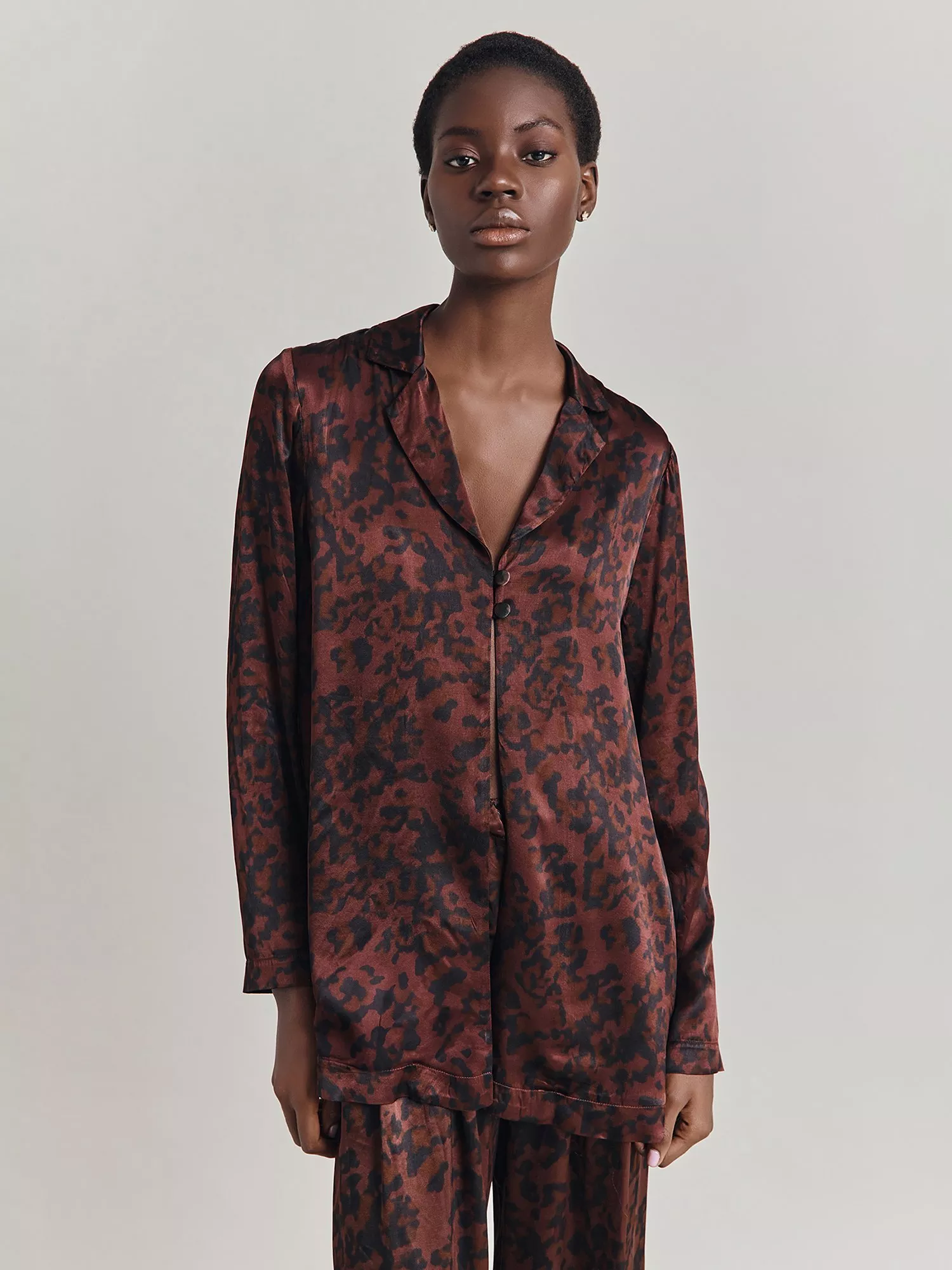 Detailed with a collar and embracing latest trends with its animal print, it provides lightweight wear with its smooth fabric.