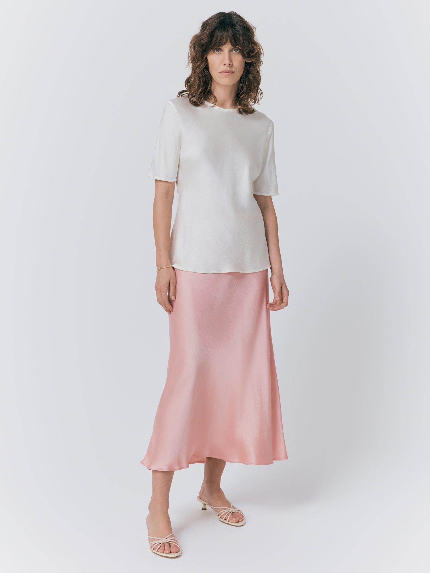 If you only have one skirt in your wardrobe, make it Luna. A true classic, this simple skirt is cut on the bias in a midi length and crafted in signature satin, so it falls fluidly over the body to create a flattering, form-fitting silhouette. A subtly elasticated waistband ensures comfort. Dress up with a satin camisole and knitwear for this season.