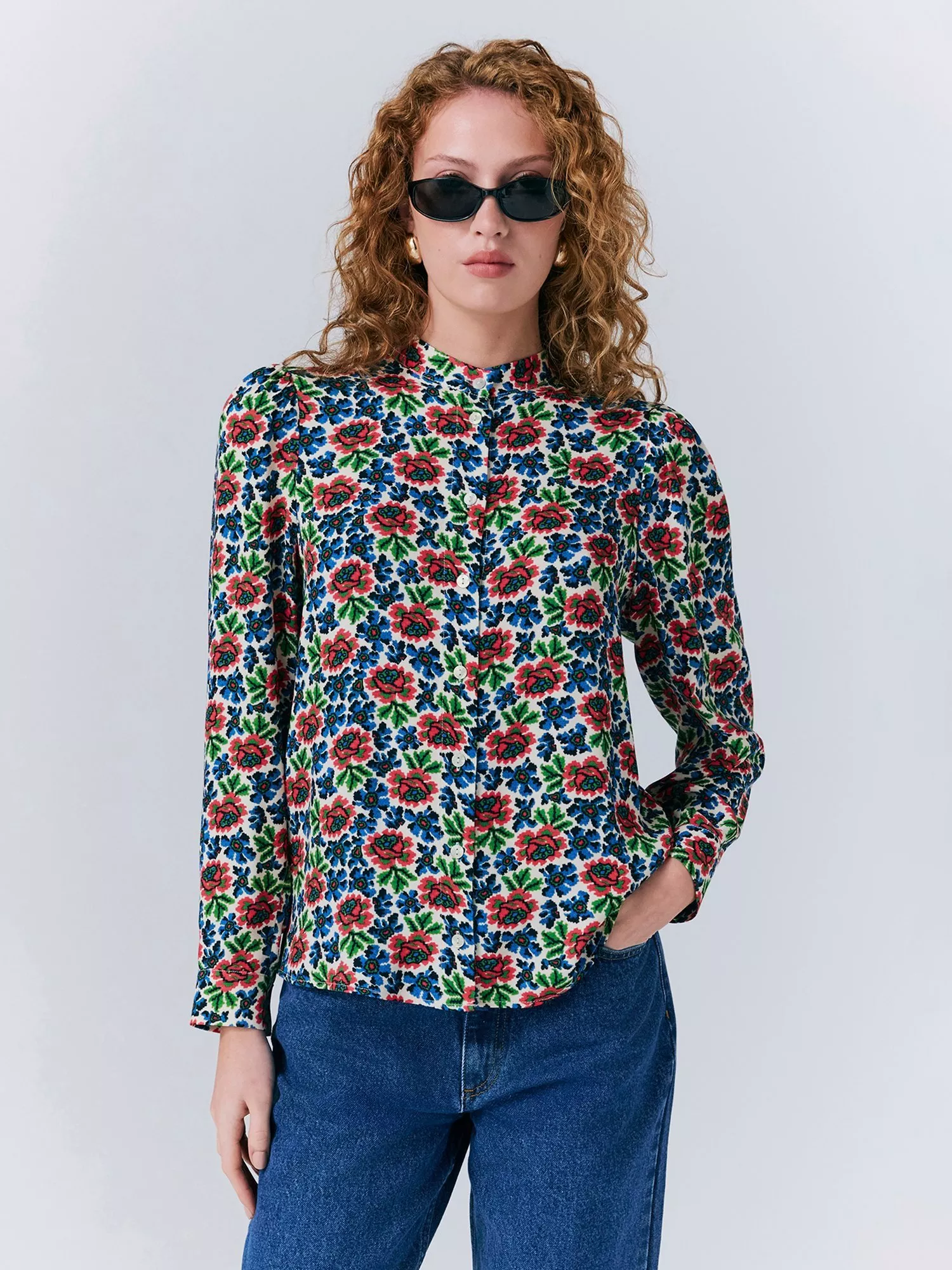 The vibrant Lydie blouse from Ghost features a high collar, button-front fastening and long, cuffed sleeves. Crafted from a flowing, floral fabric that adds a pop of colour to your everyday wardrobe.