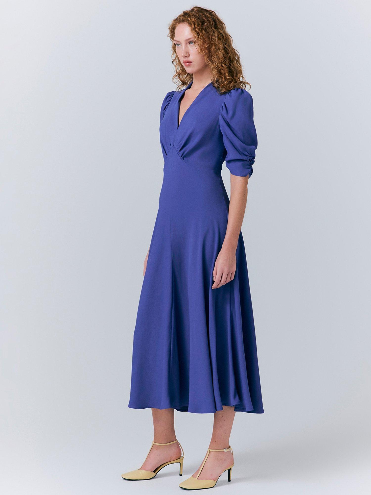 Elegantly cut to an empire line, this midi dress from Ghost is made from viscose that's beloved for its weightless feel. With a universally flattering v-neckline and puffy elbow length sleeves, this style allows you to showcase its versatility.
