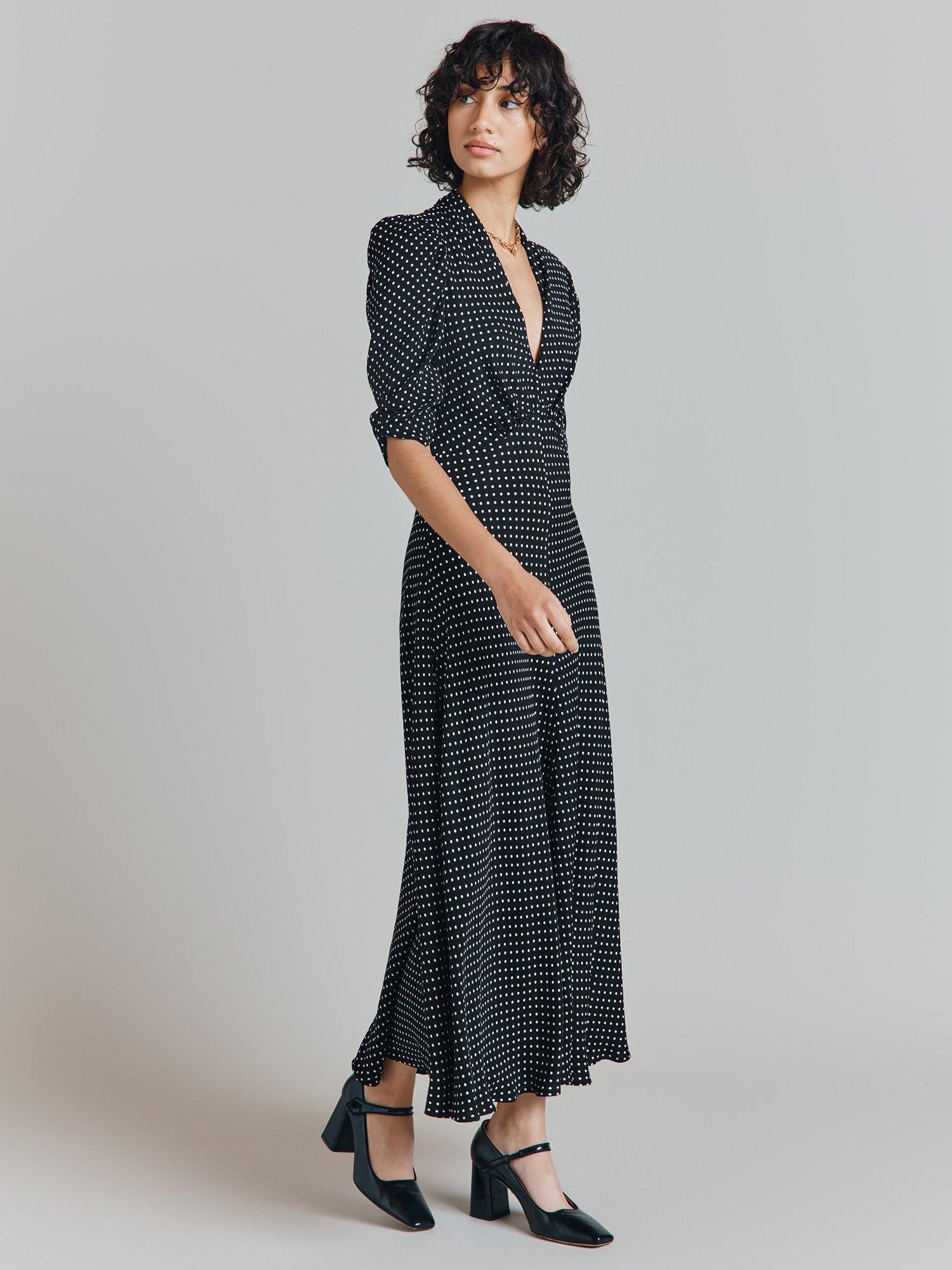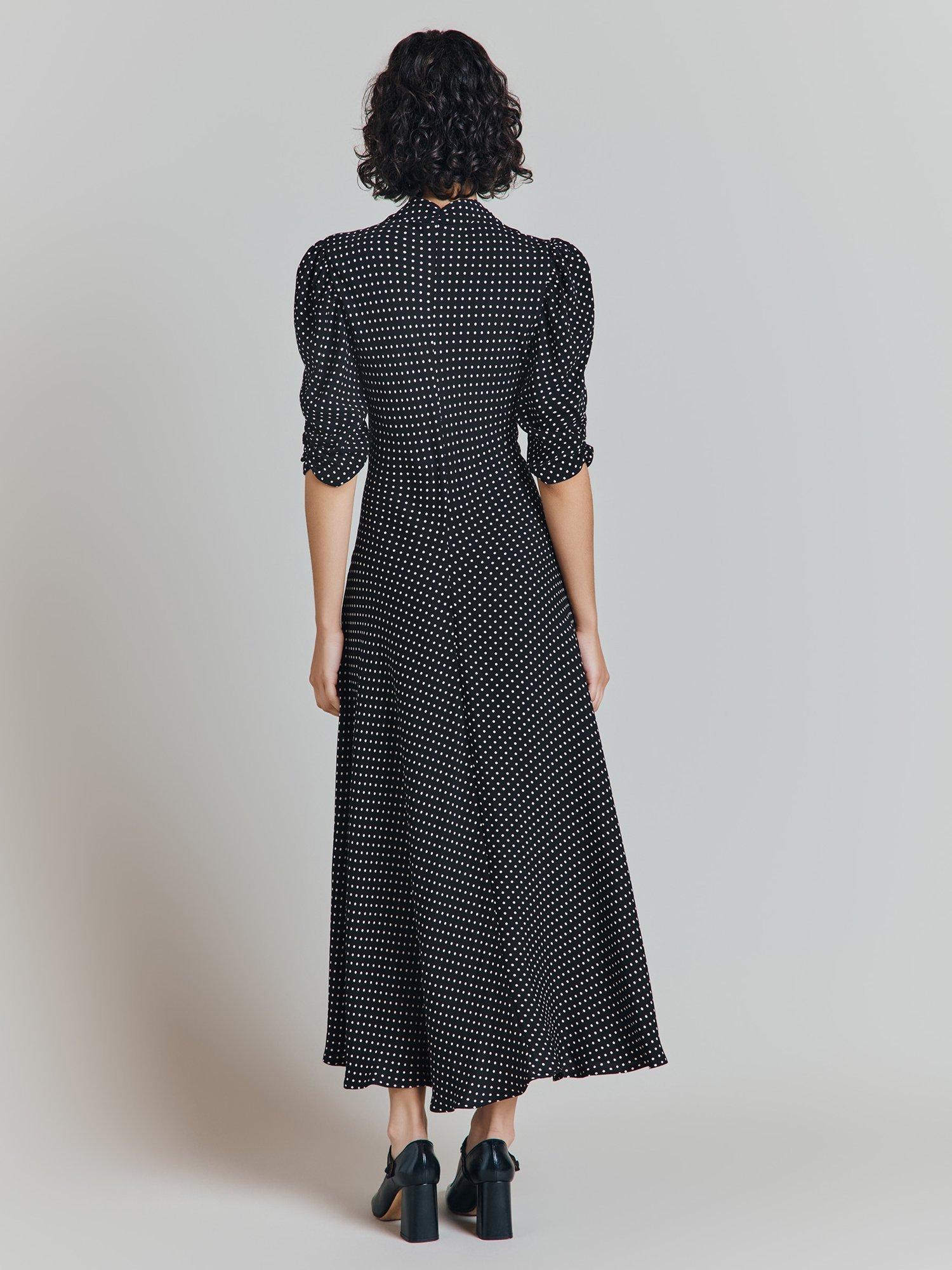 If you need a simple yet striking showstopper outfit, look no further than our Madison dress. Cut from a lightweight filament satin, this vintage-inspired style features puffed shoulders, fabric covered buttons and three-quarter length sleeves. With a classic silhouette and front split detail, this ultra-feminine dress will endure season after season - plus, it would also make the perfect bridesmaid's dress.