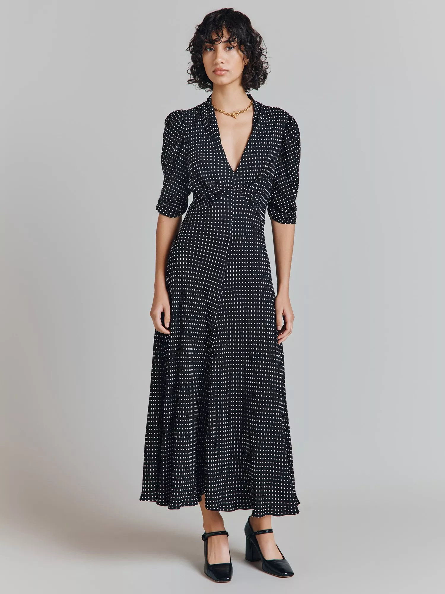 If you need a simple yet striking showstopper outfit, look no further than our Madison dress. Cut from a lightweight filament satin, this vintage-inspired style features puffed shoulders, fabric covered buttons and three-quarter length sleeves. With a classic silhouette and front split detail, this ultra-feminine dress will endure season after season - plus, it would also make the perfect bridesmaid's dress.