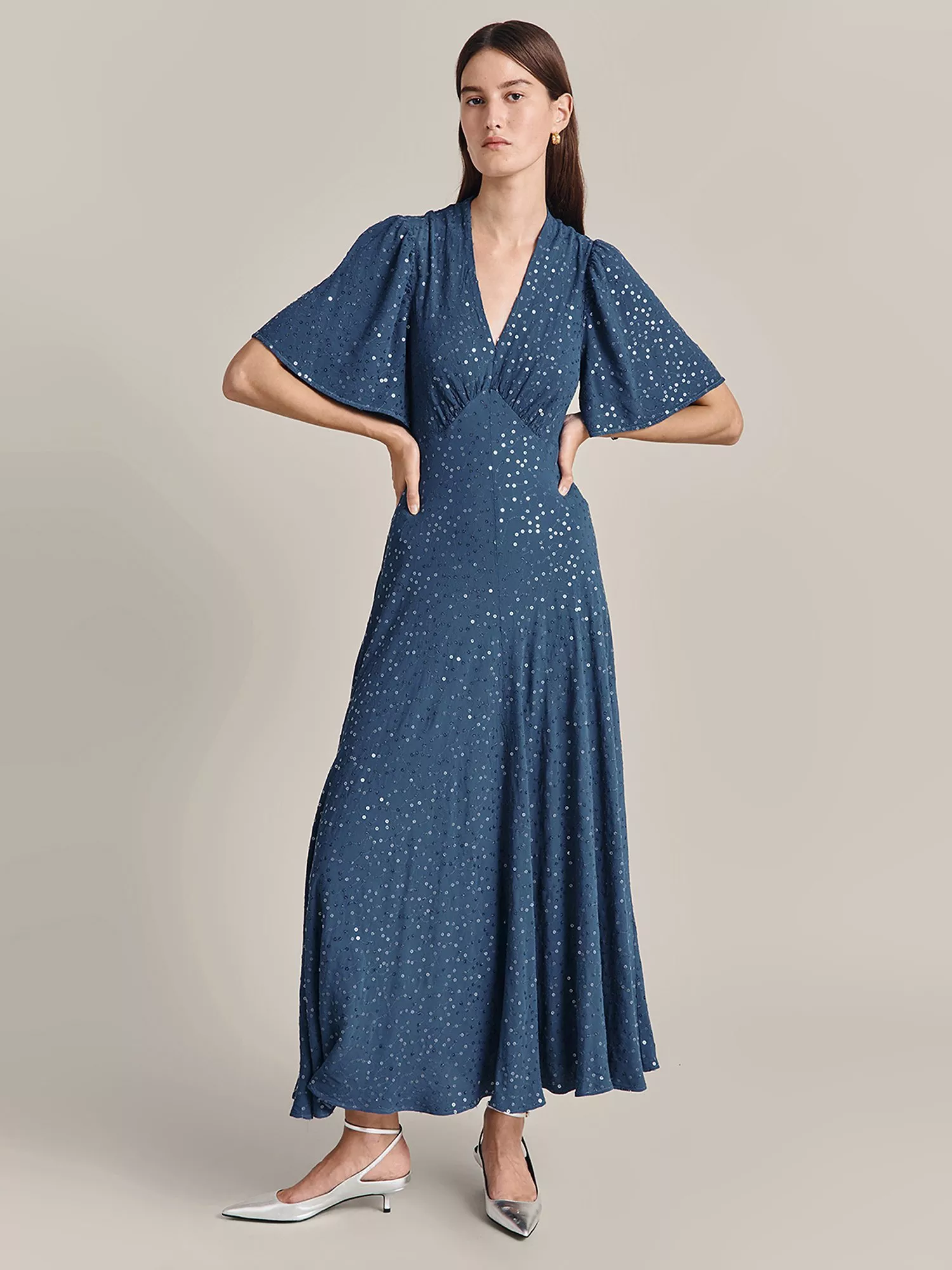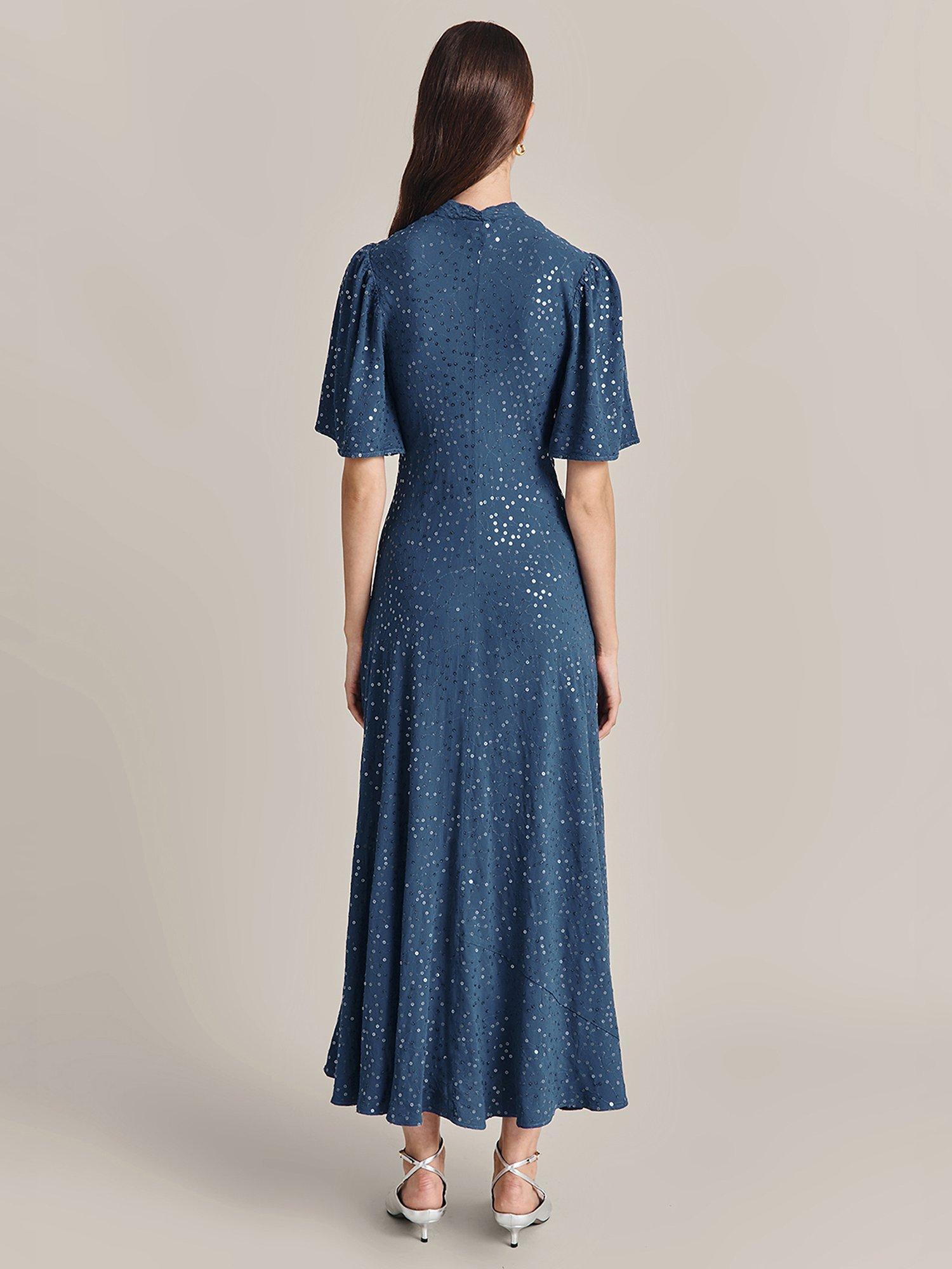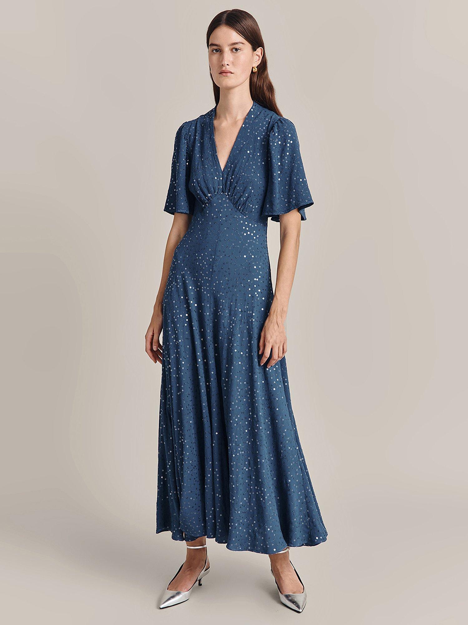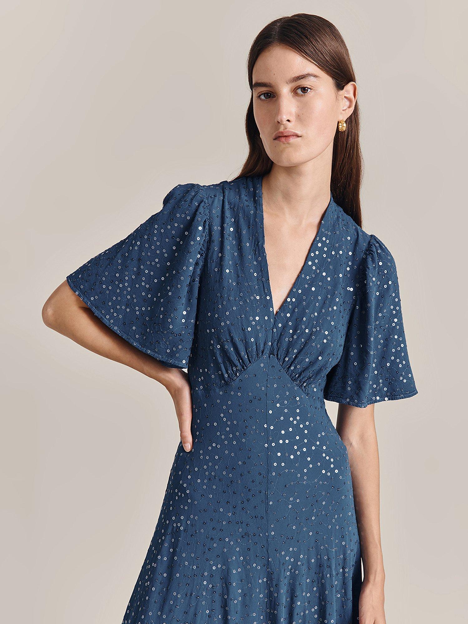 Designed in a fuss-free A-line style, this midi dress from Ghost is dreamt up from whisper-weight viscose. With a fuss-free but smart v-neckline and elbow length sleeves, it is drenched with season-less spots.