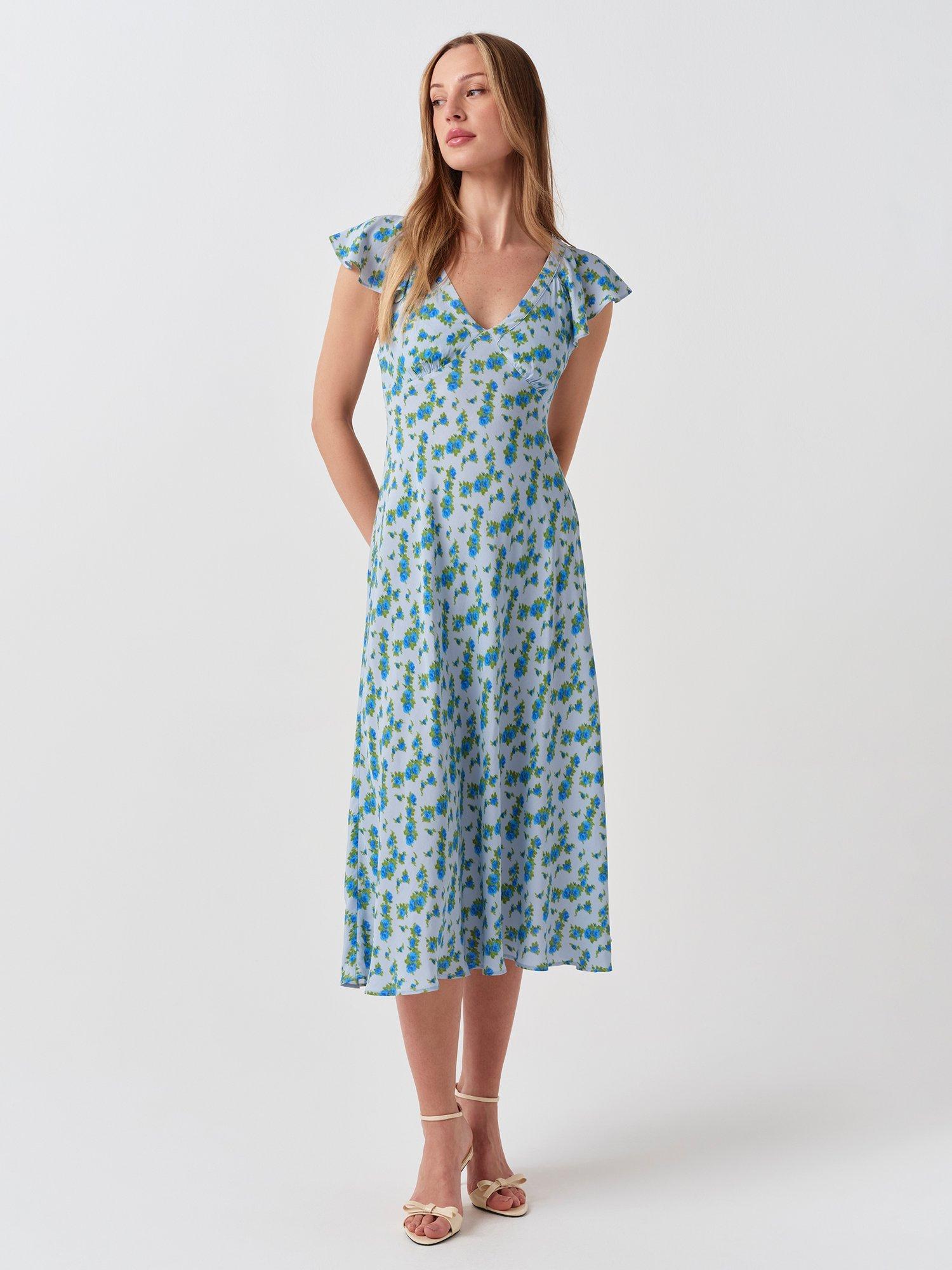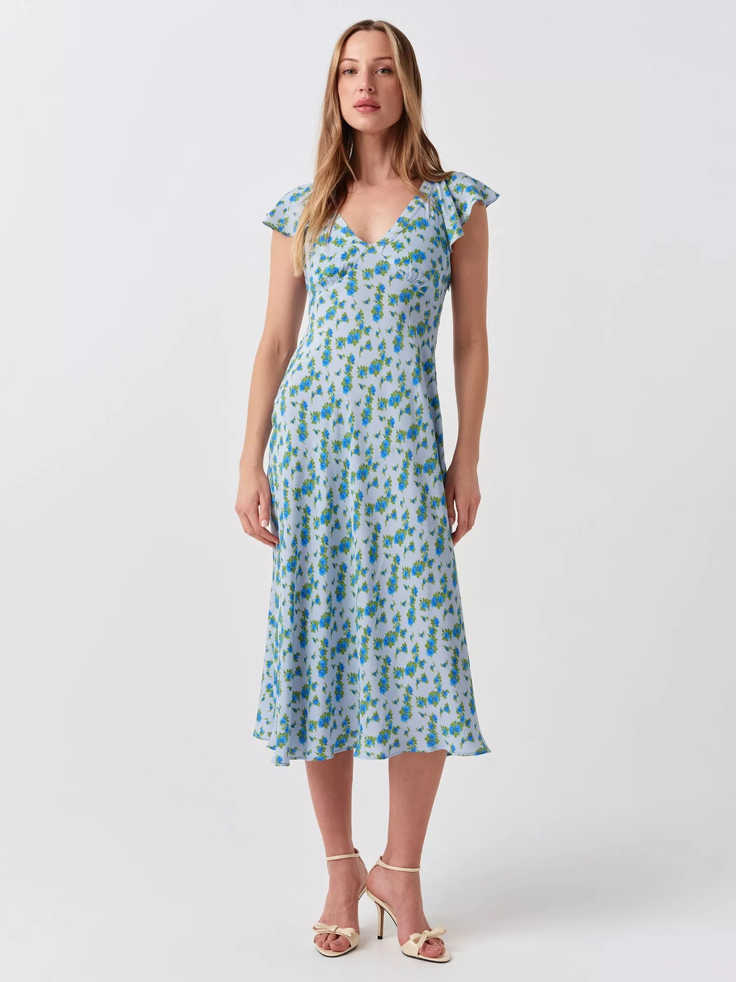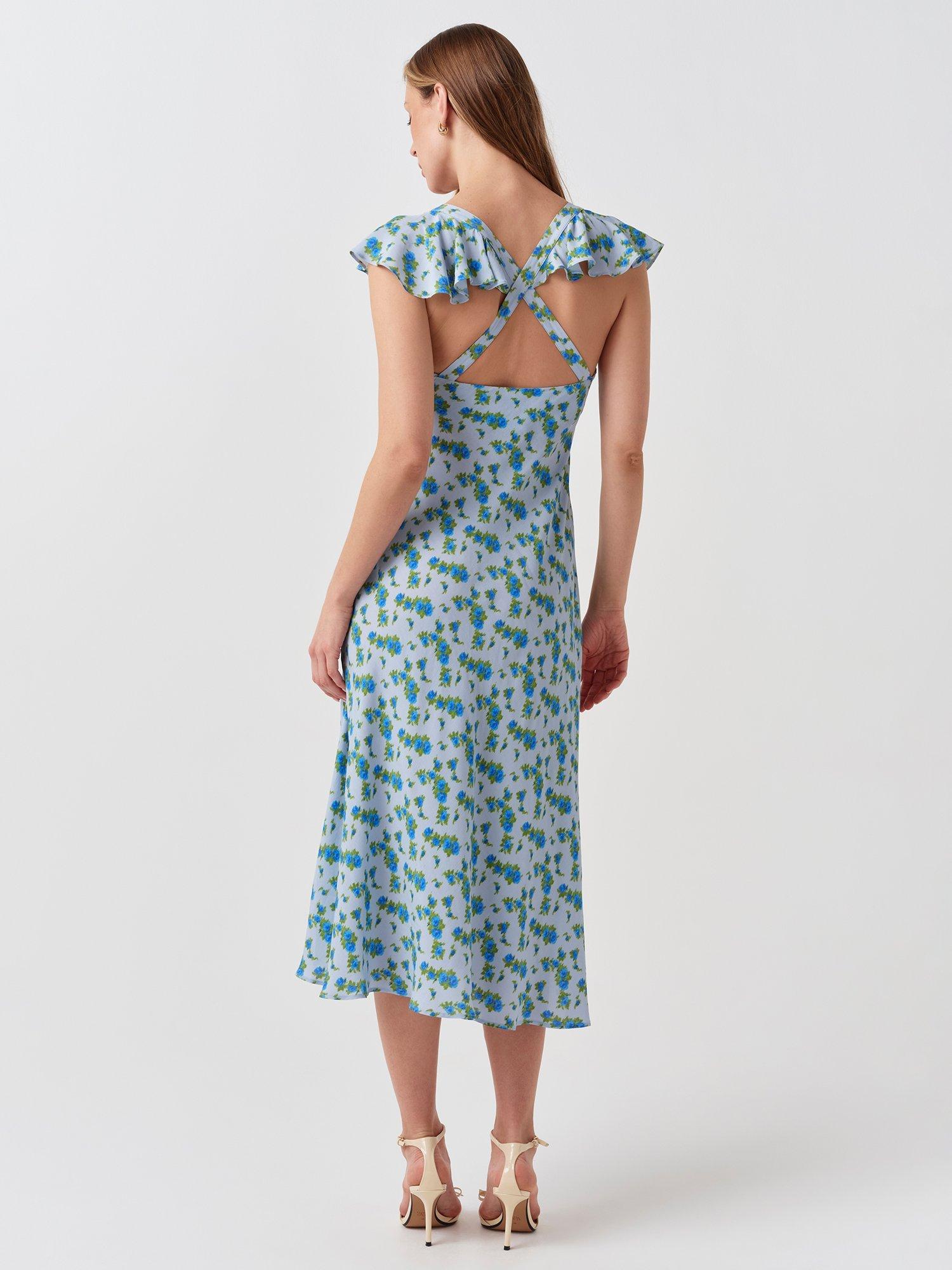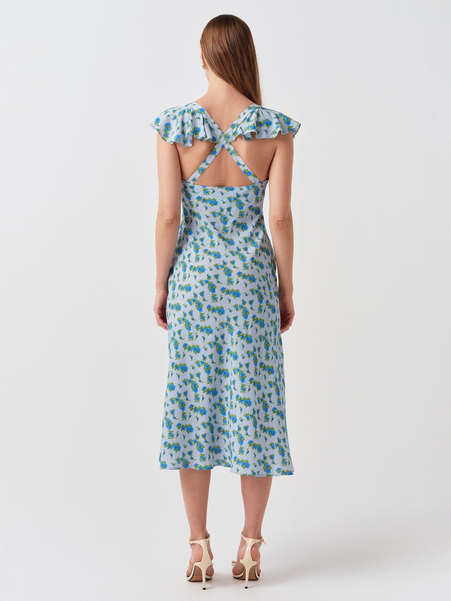 Effortlessly romantic, the Maya dress is a testament to timeless femininity. Crafted from signature crepe, this v neck dress features a graceful bias cut that skims the silhouette to an elegant midi length. Delicate frill straps lead to a striking cross back dress design, offering a beautiful viewpoint from every angle. Whether styled as a v neck summer dress or for an evening event, this v neck midi dress ensures a sophisticated, fluid fit for any occasion.