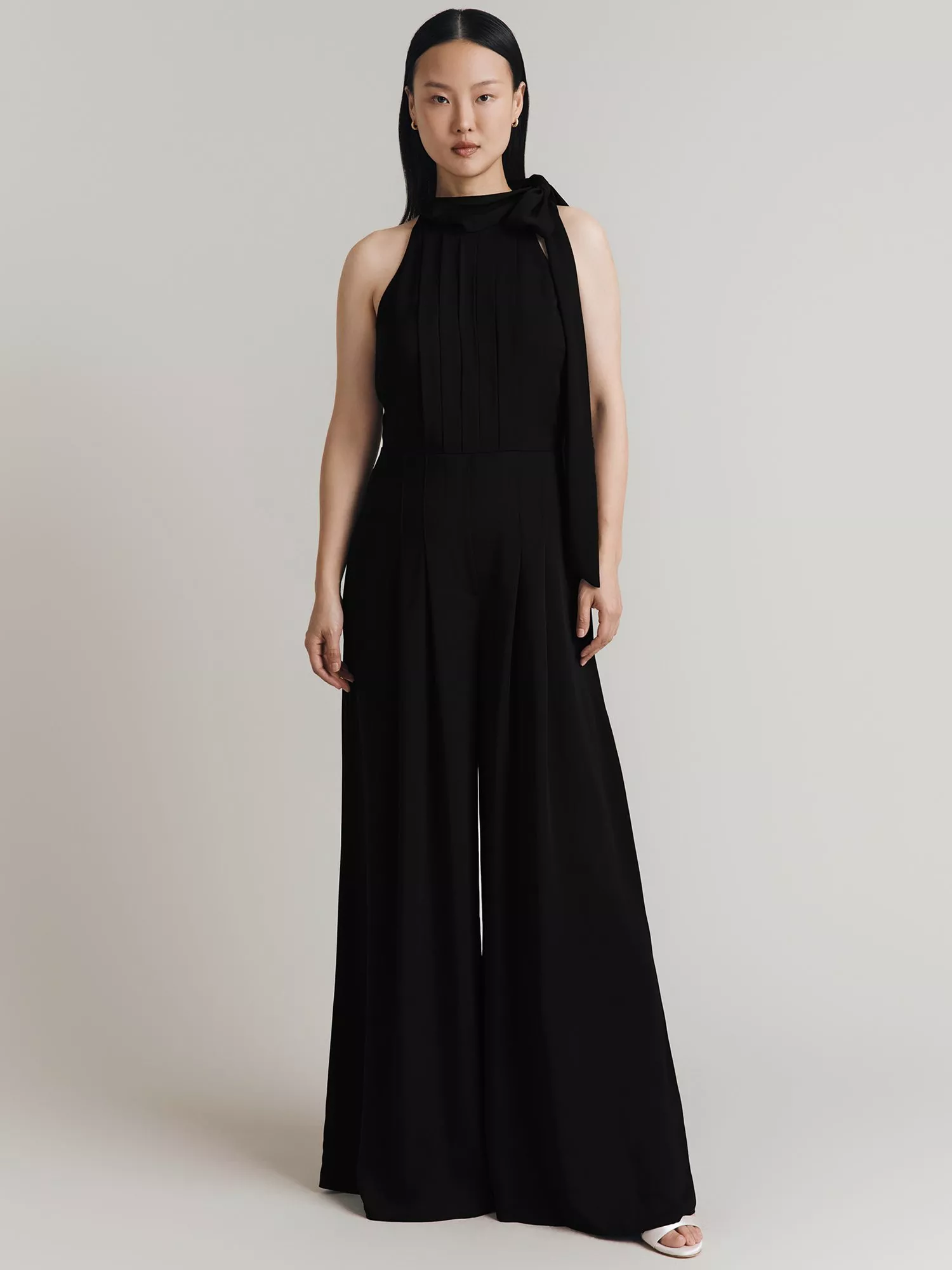 With a halter bodice with a tie side, this sleeveless jumpsuit by Ghost is cut to a wide-leg silhouette for free-flowing appeal.
