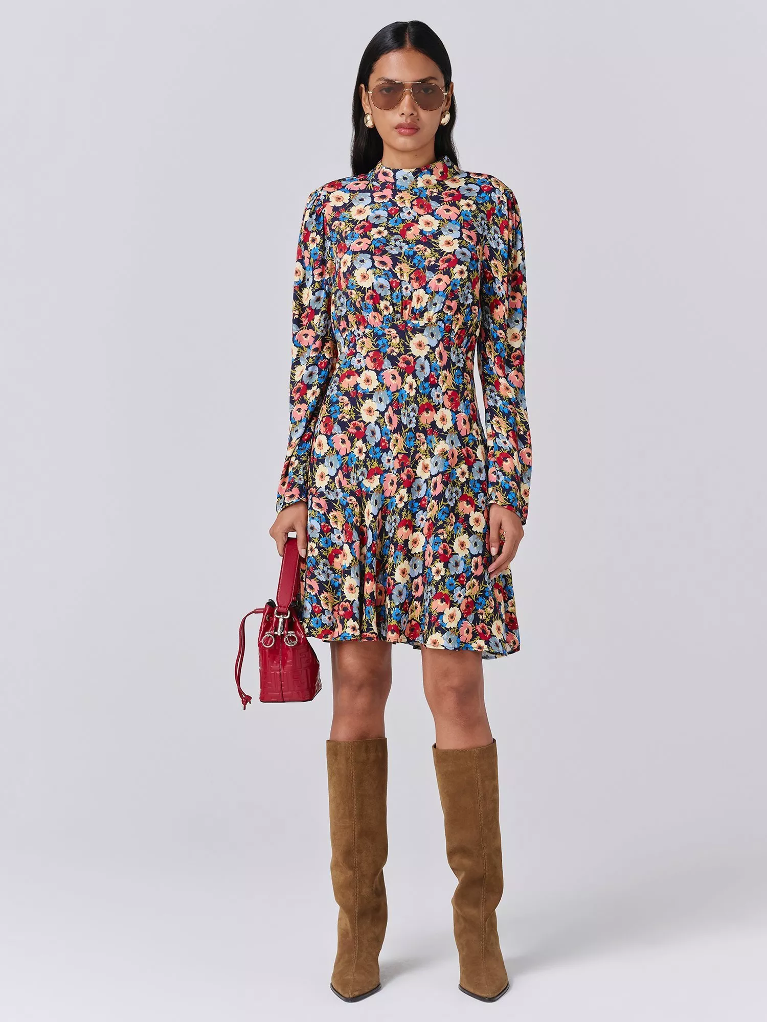 Raise your style game this season with Natalia, a mini dress with maximum impact. Ghost have designed this style with a flattering high waistline, chic high neck and long sleeves with buttoned cuffs, making it perfect for the cooler months. Crafted from crepe for a beautiful drape and comfortable weight, we love it styled with long boots and a colour-pop accessory.