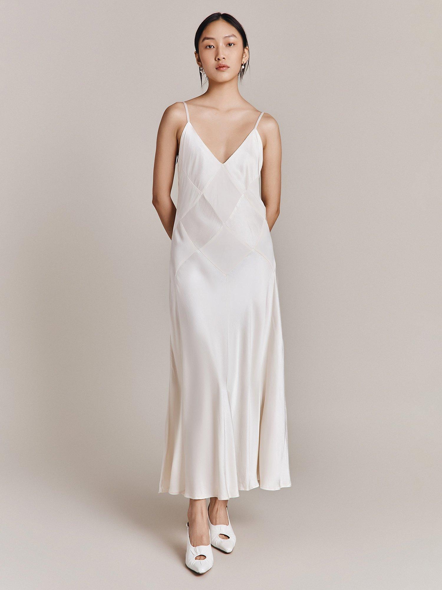 A tried-and-true favourite, this maxi dress from Ghost is crafted from an airy viscose fabric. With a fuss-free but smart v-neckline and spaghetti straps, is the epitome of sheer minimalism.