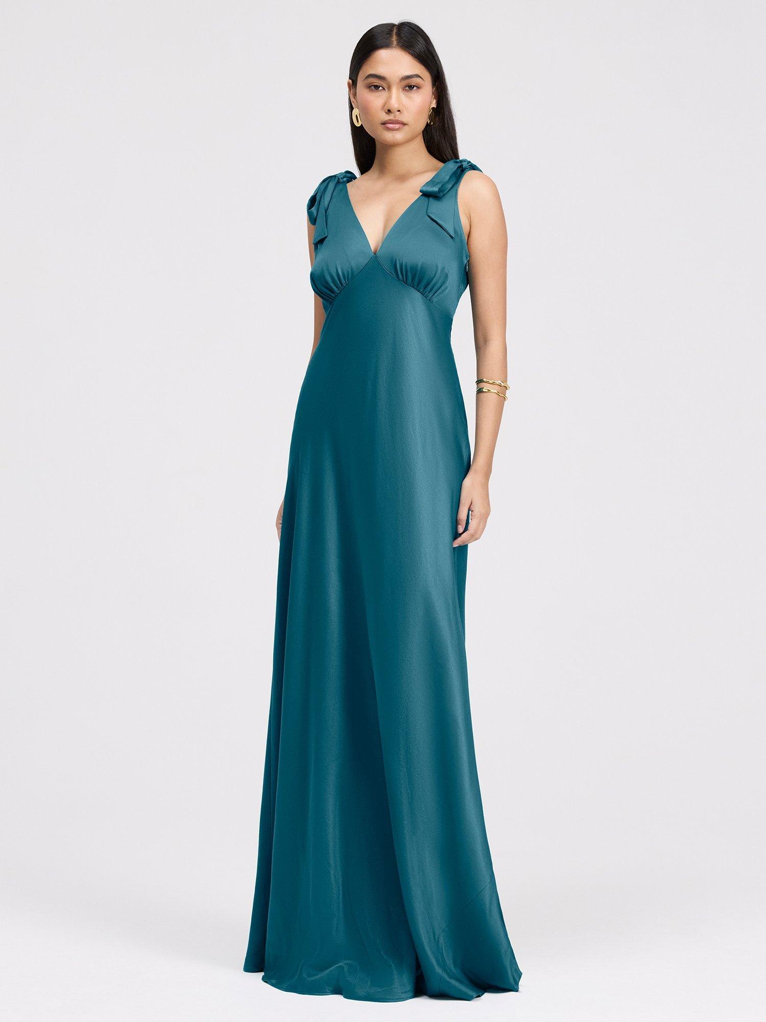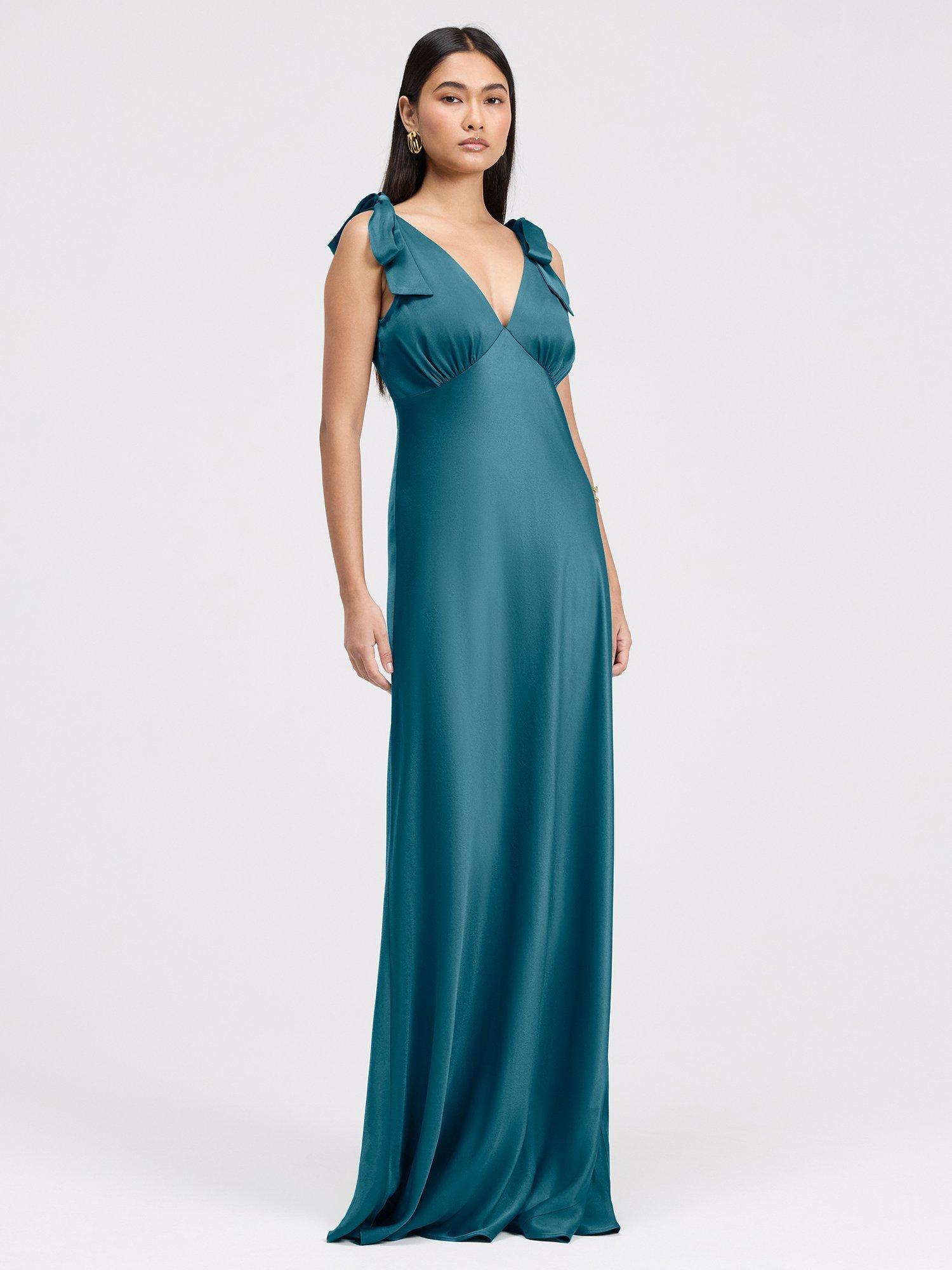 Meet Nora, a wonderfully romantic and vibrant choice for your next special occasion. This stunning maxi dress is sure to turn heads. The design features a flattering surplice V-neckline leading into a fitted bodice. The standout details are the charming ruffled shoulder, adding a playful and distinctly feminine touch to the silhouette. The skirt drapes gracefully to the floor, offering soft movement and timeless elegance with every step.