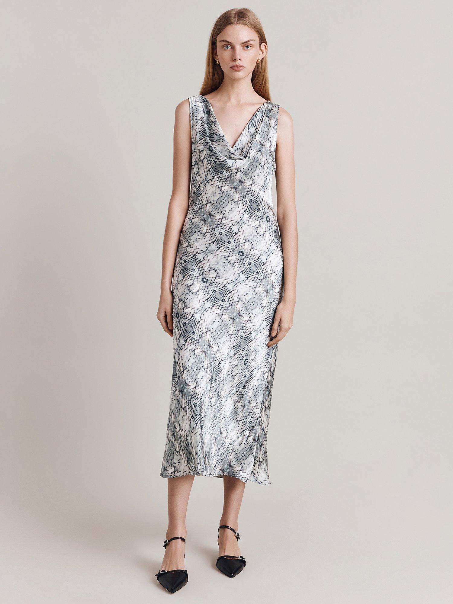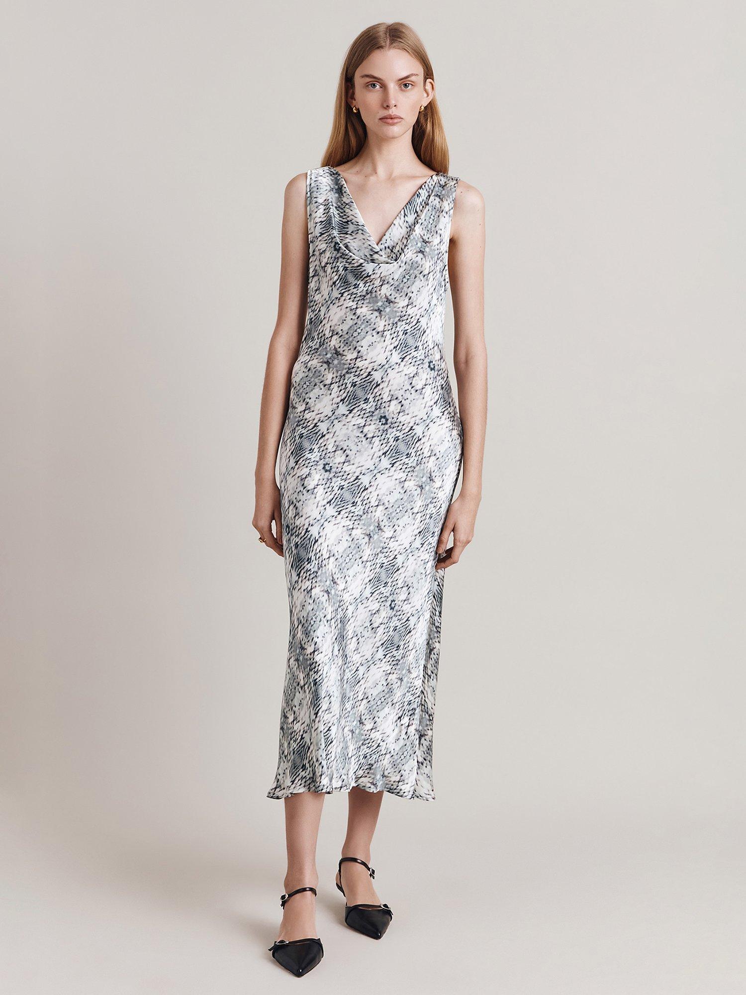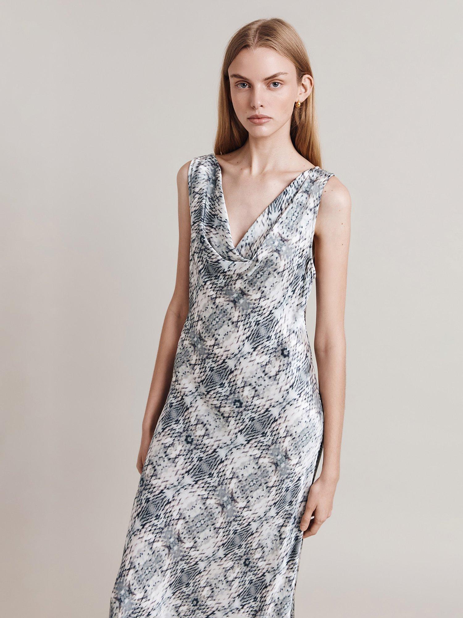 Instantly charming in a slip shape, this mid-length dress from Ghost is made from whisper-weight viscose. Assembled with a cowl neck, this sleeveless style is planted with a feline print.