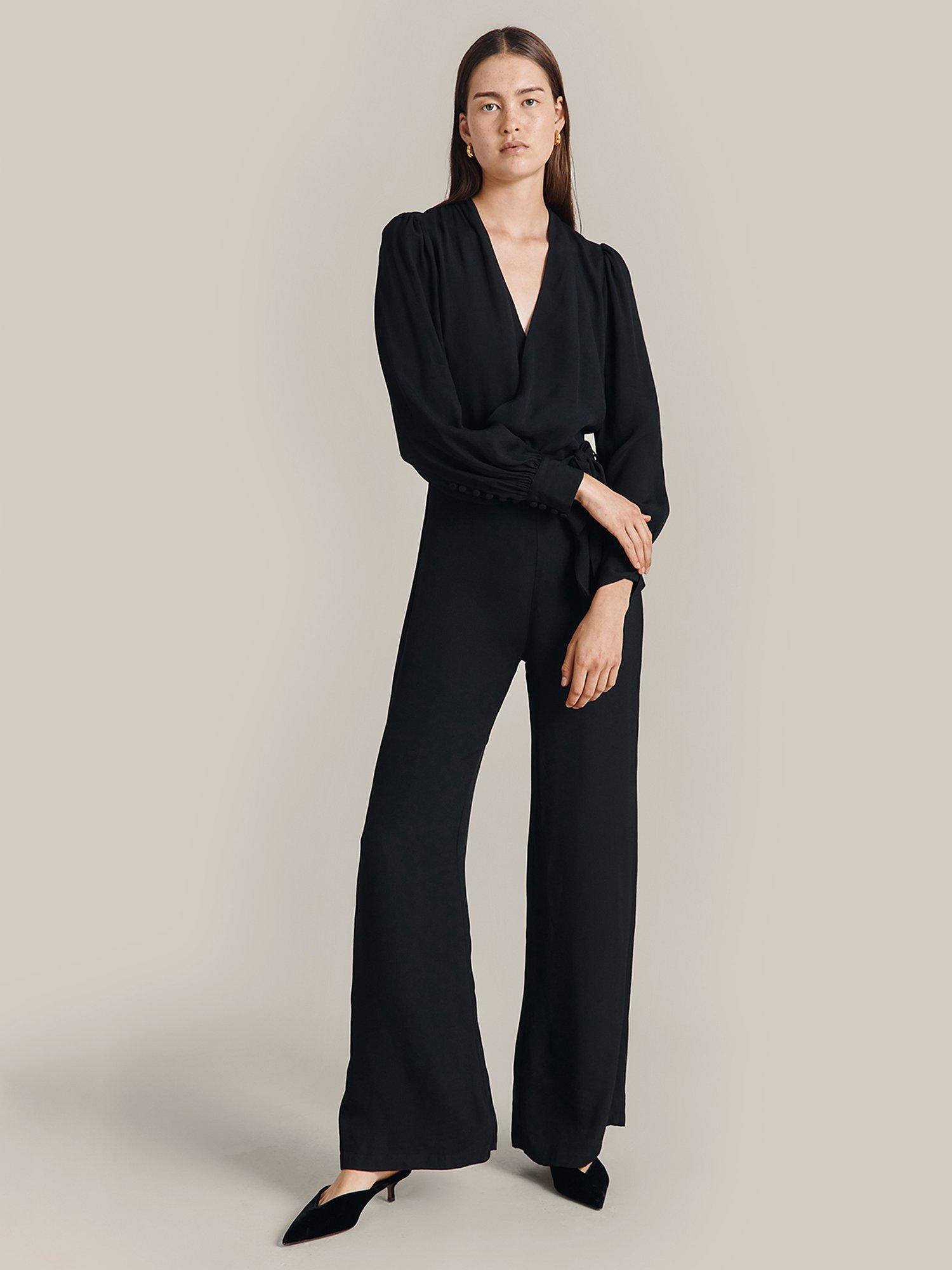 Defined by a flattering wrap-over neckline and long puff sleeves, this jumpsuit by Ghost is cut to a wide-leg silhouette and is crafted from airy viscose for breezy wear.