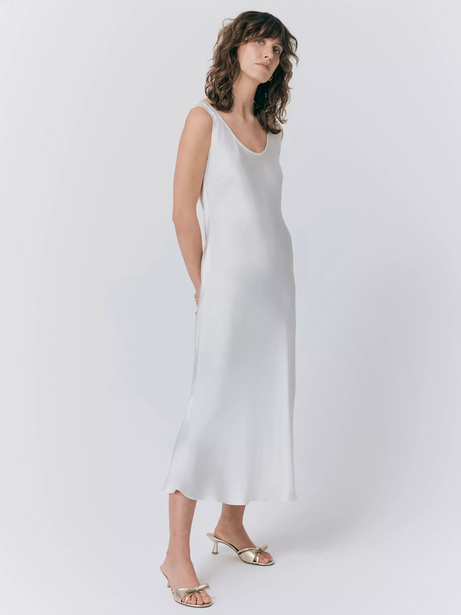 The Palm dress is a true wear-anywhere classic. A classic bias-cut slip dress in satin with thick straps that can conceal bra straps, it's both practical and sophisticated in equal measure. Wear with heels and a statement clutch for a chic and simple look at dressier events or layer over a T-shirt and pair with flats for off-duty days.