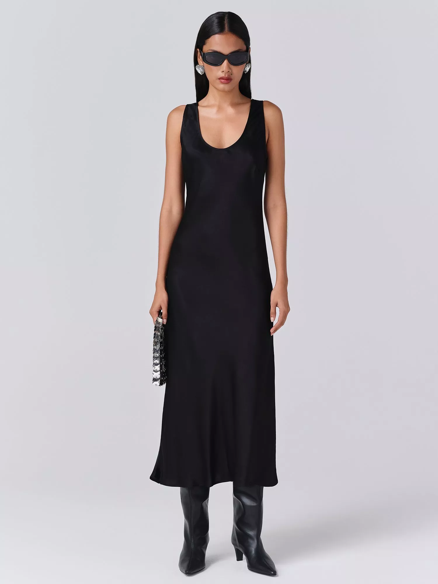 A bias-cut satin slip dress from Ghost made from smooth satin. With thick straps that can conceal bra straps, it’s both practical and sophisticated in equal measure.