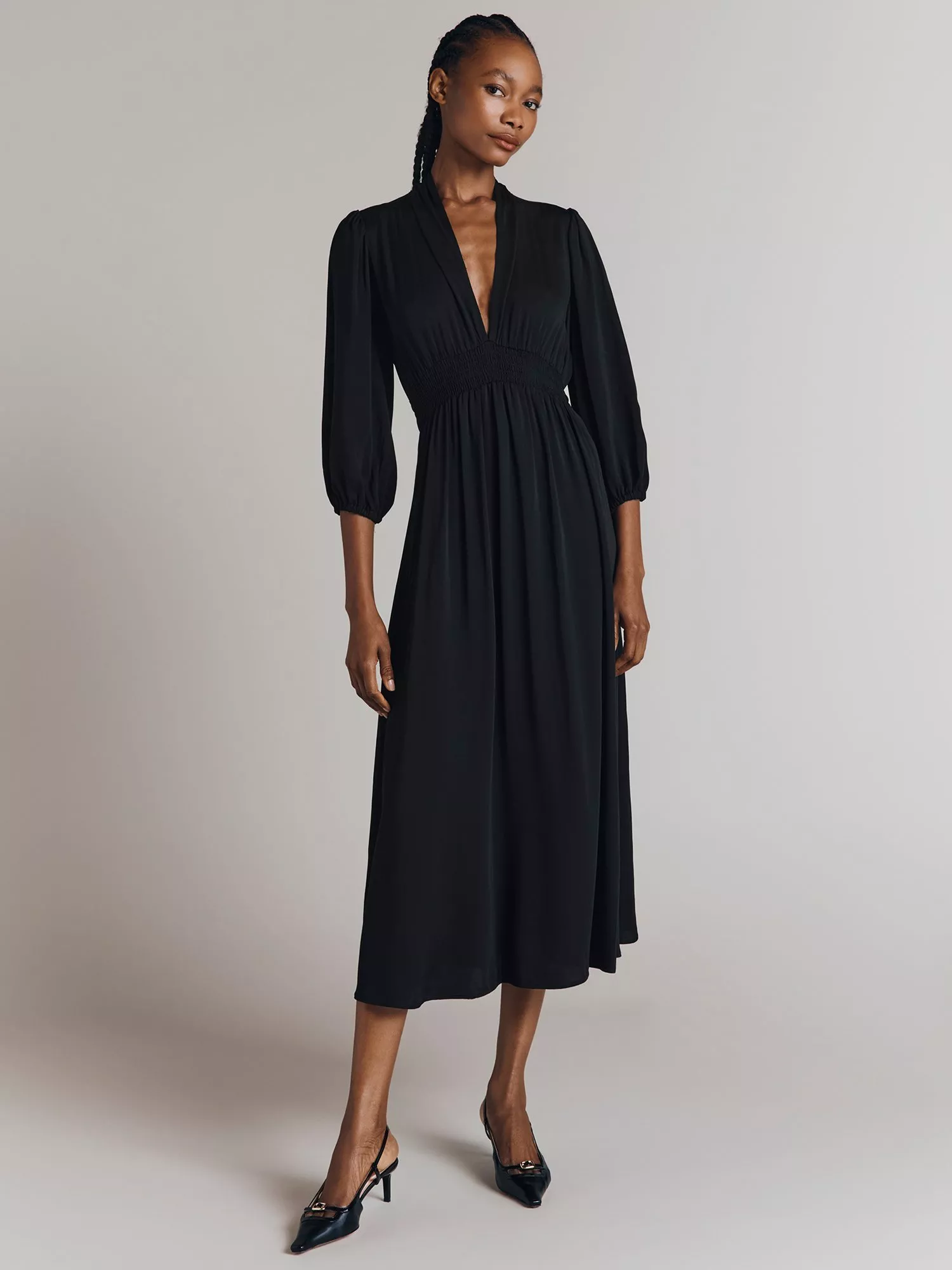 Elegantly cut to an empire line, this midi dress from Ghost is made from viscose that's beloved for its weightless feel. With a universally flattering v-neckline and three quarter length sleeves, this style allows you to showcase its versatility.