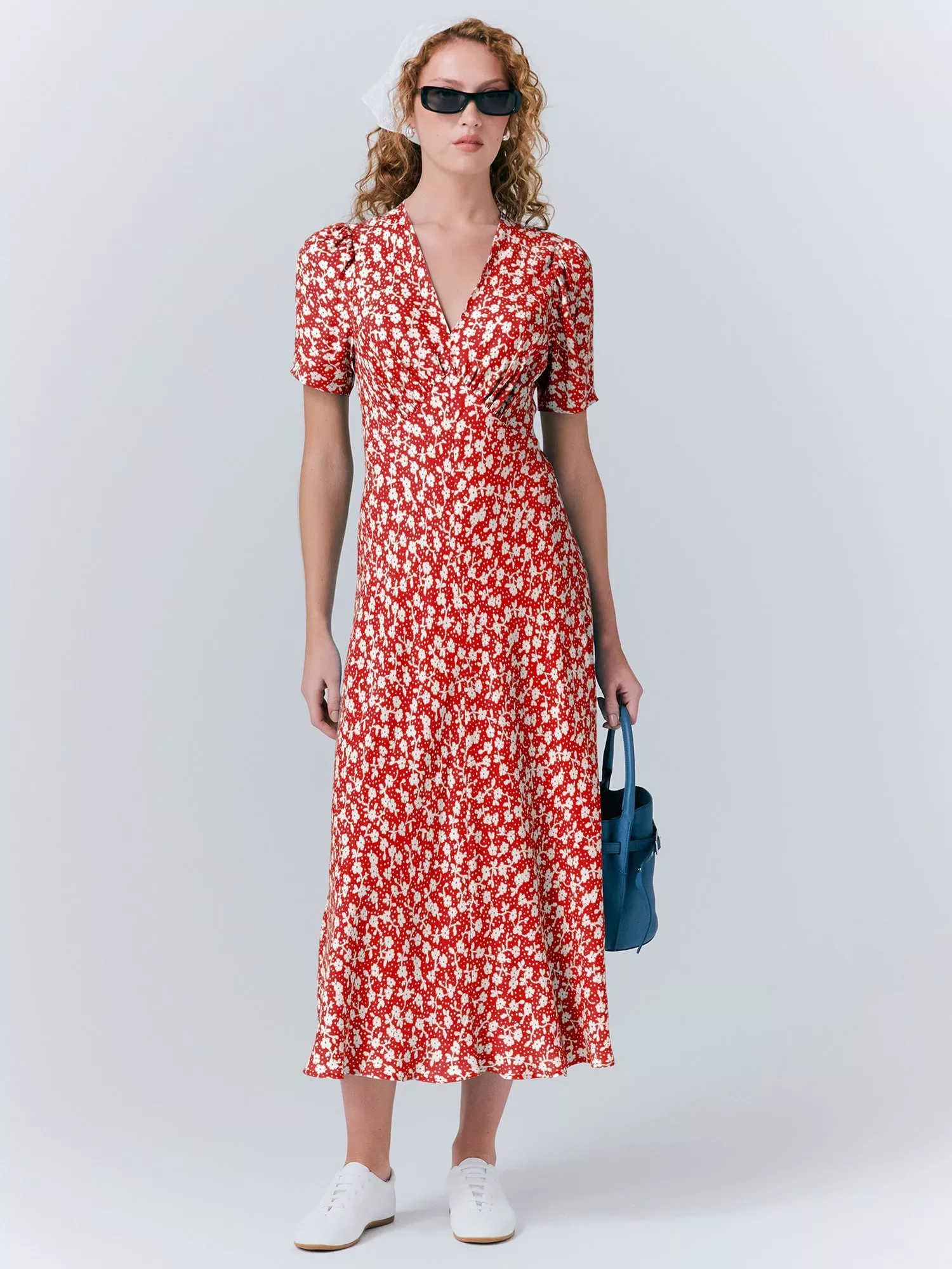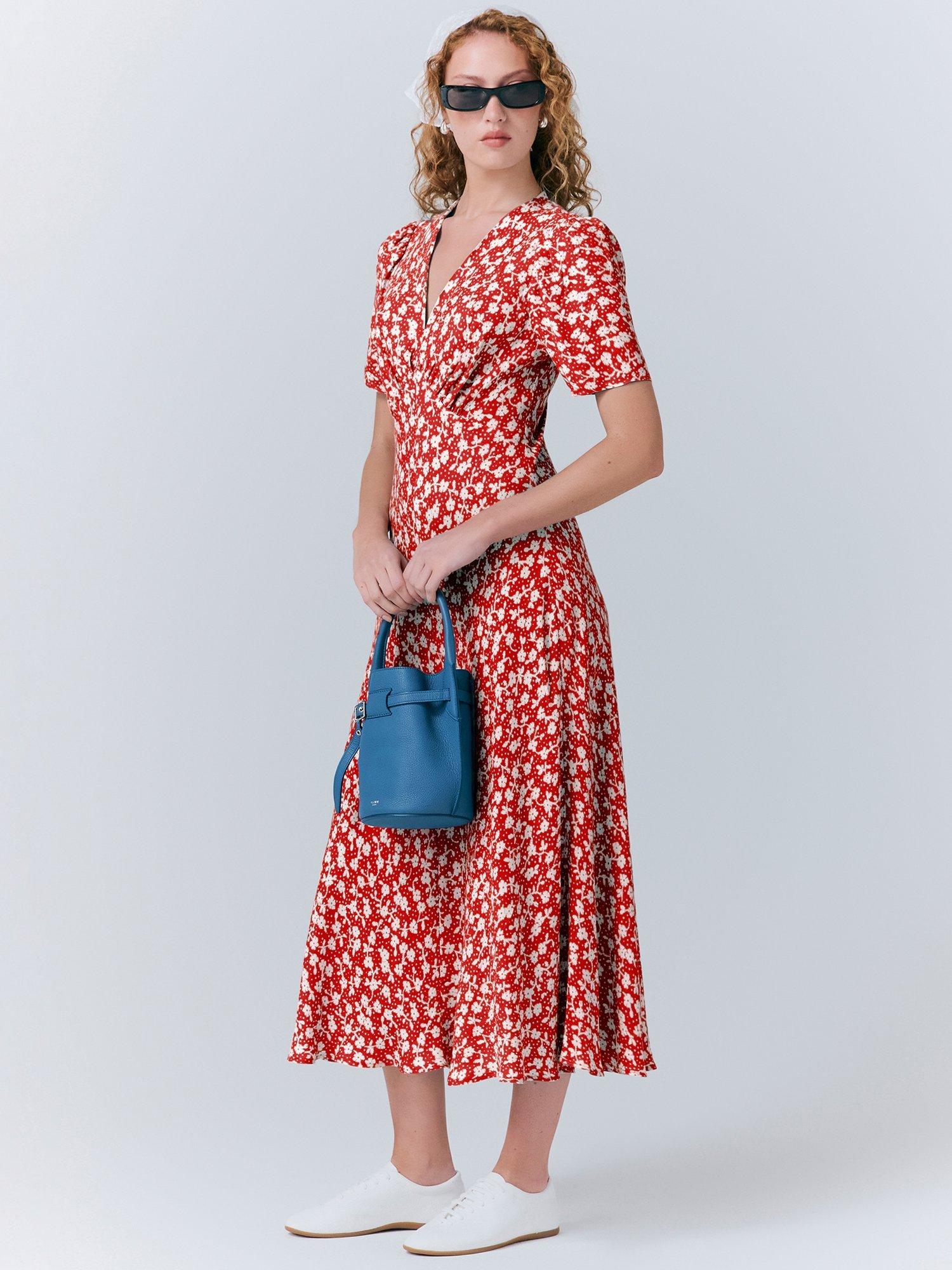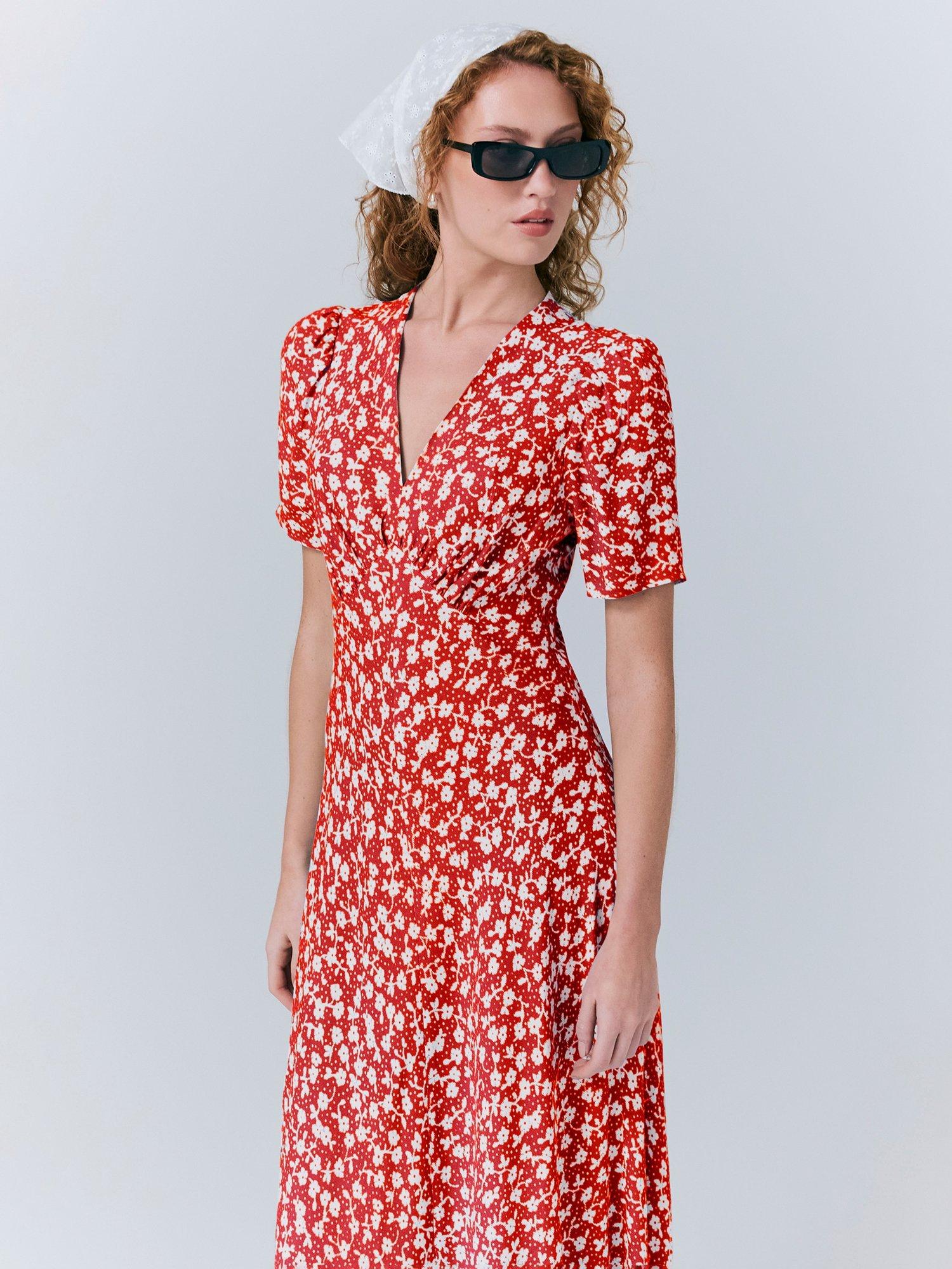 This pretty floral dress ticks all the summer occasion boxes. With short sleeves, v neck and under bust seams for a fitted look.