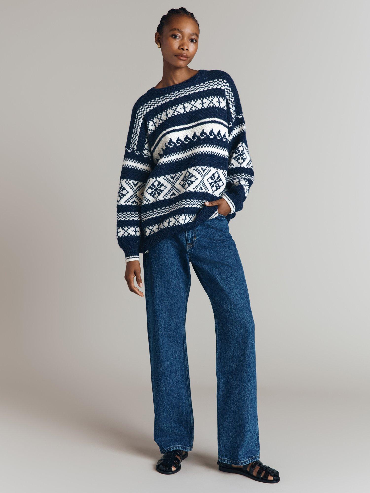 With a crew neckline for simple yet sleek style, this longline jumper from Ghost features festive Fair Isle patterning and will take the cool weather in its stride thanks to its wool imbued composition.