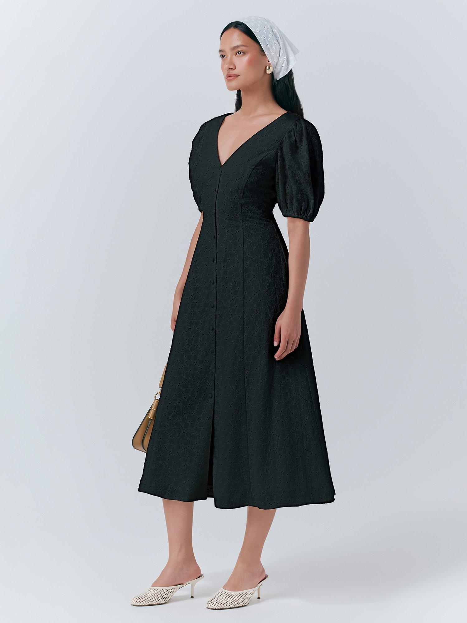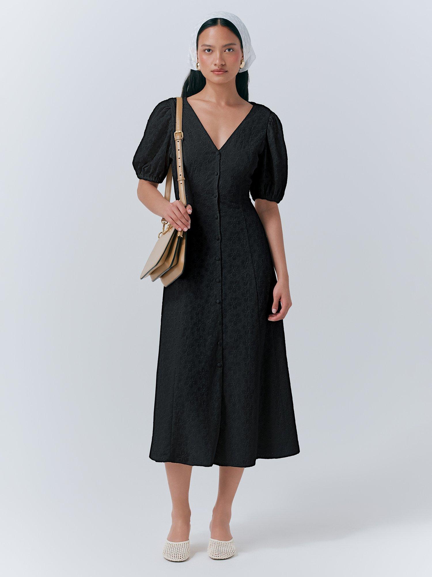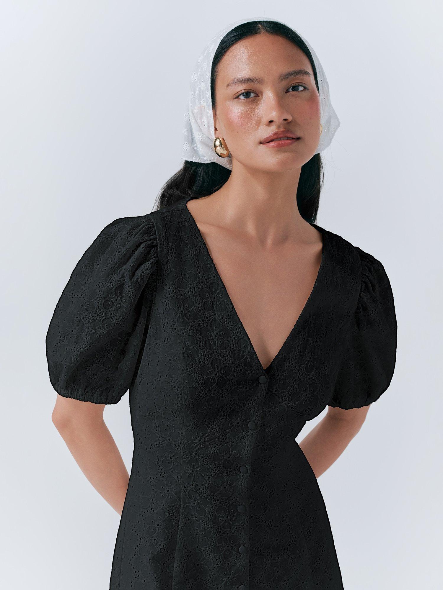 Balloon sleeves with gathered cuffs, v neck, button through in a simple and stylish fit.