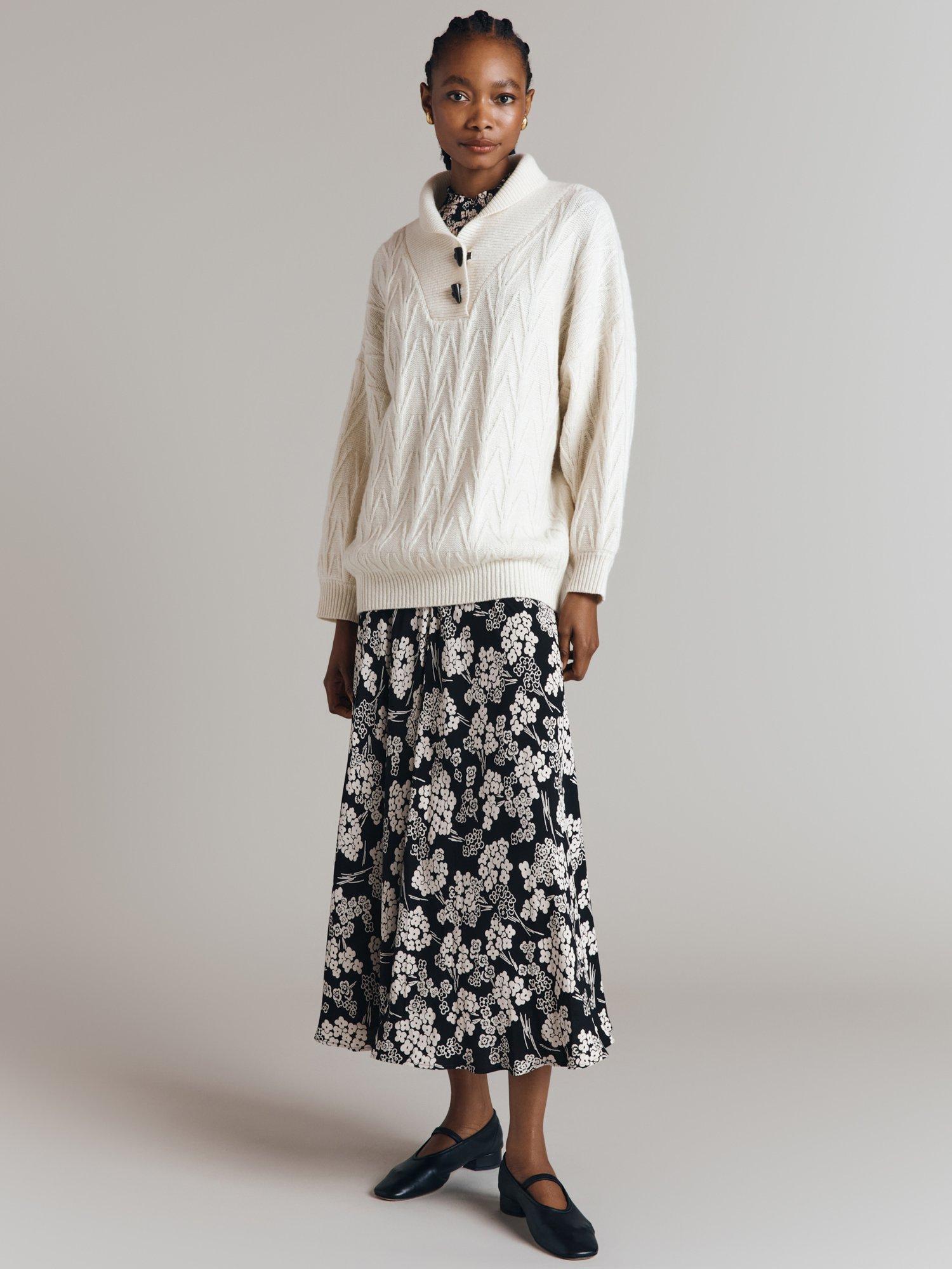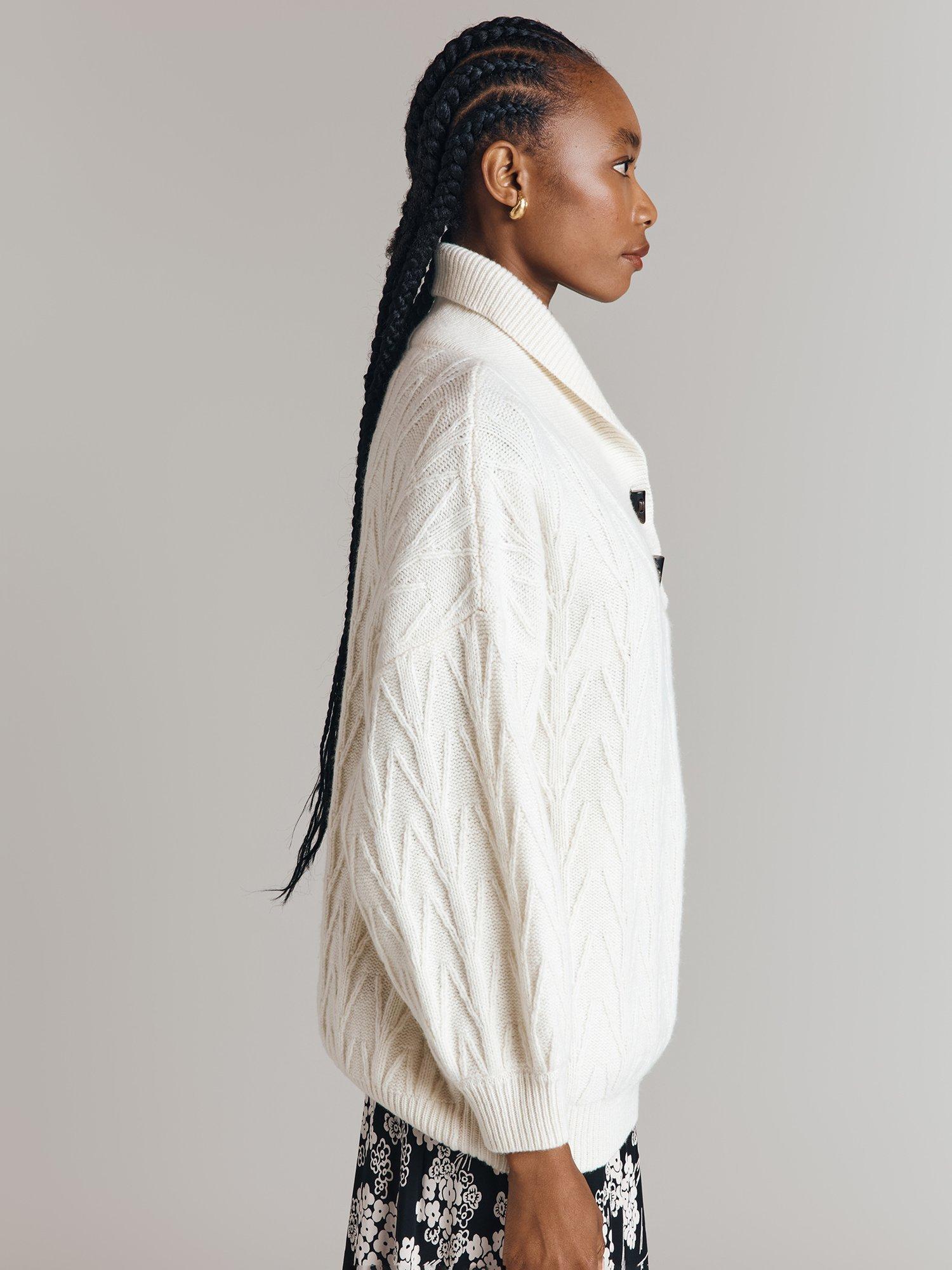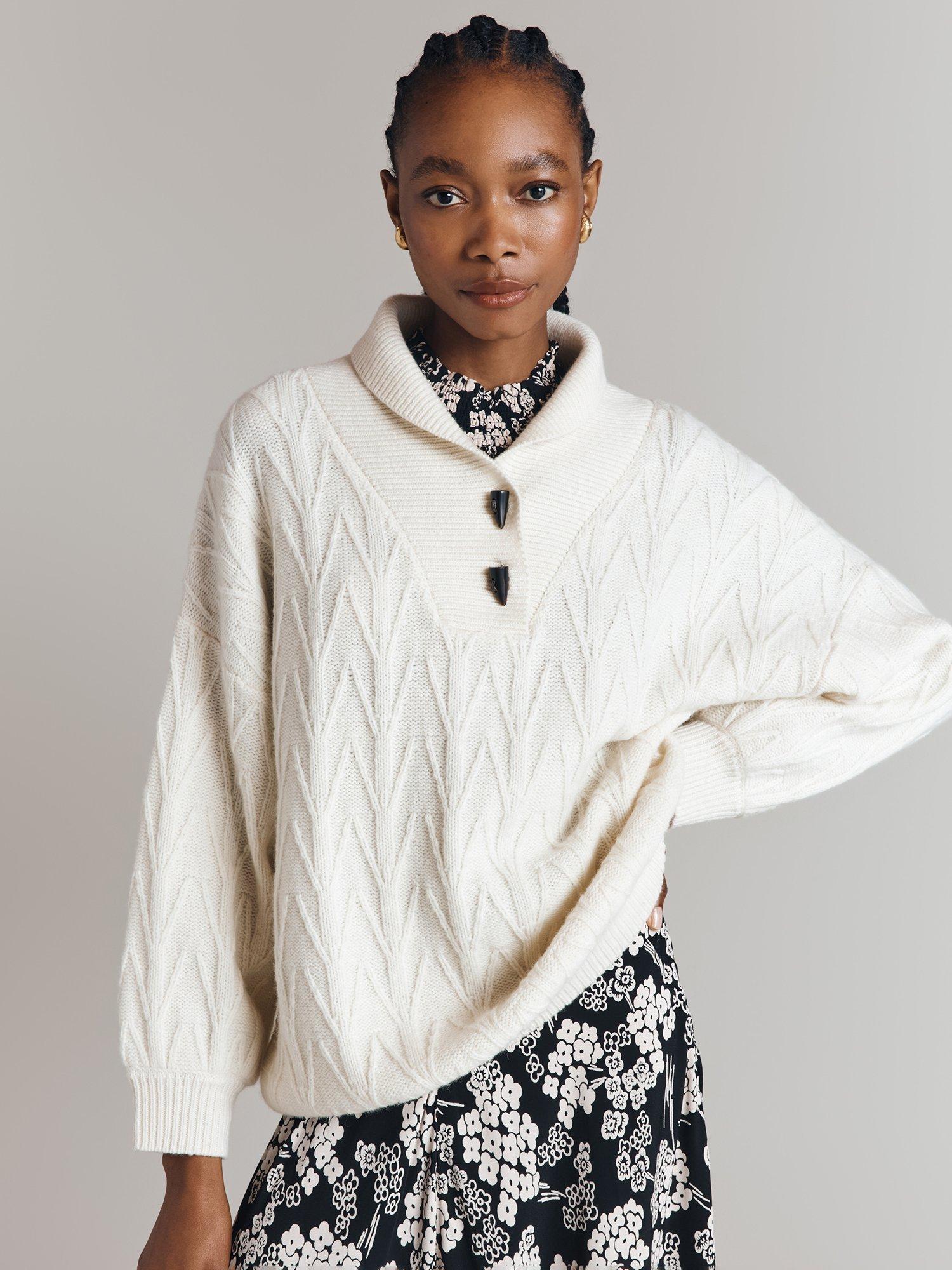 With a toggled neckline, this oversized textured jumper from Ghost is a fine match for grey skies in a warming woollen blend.