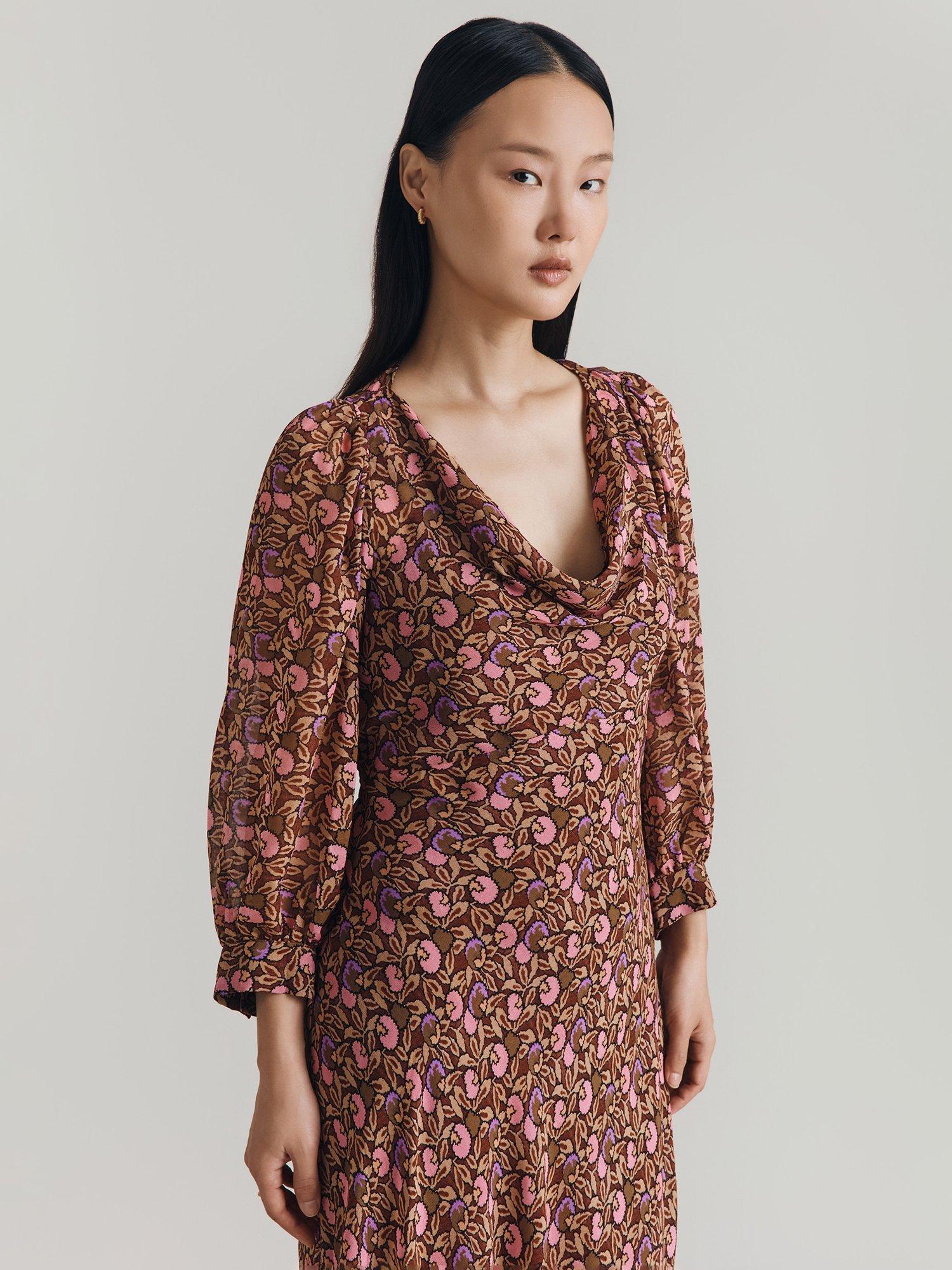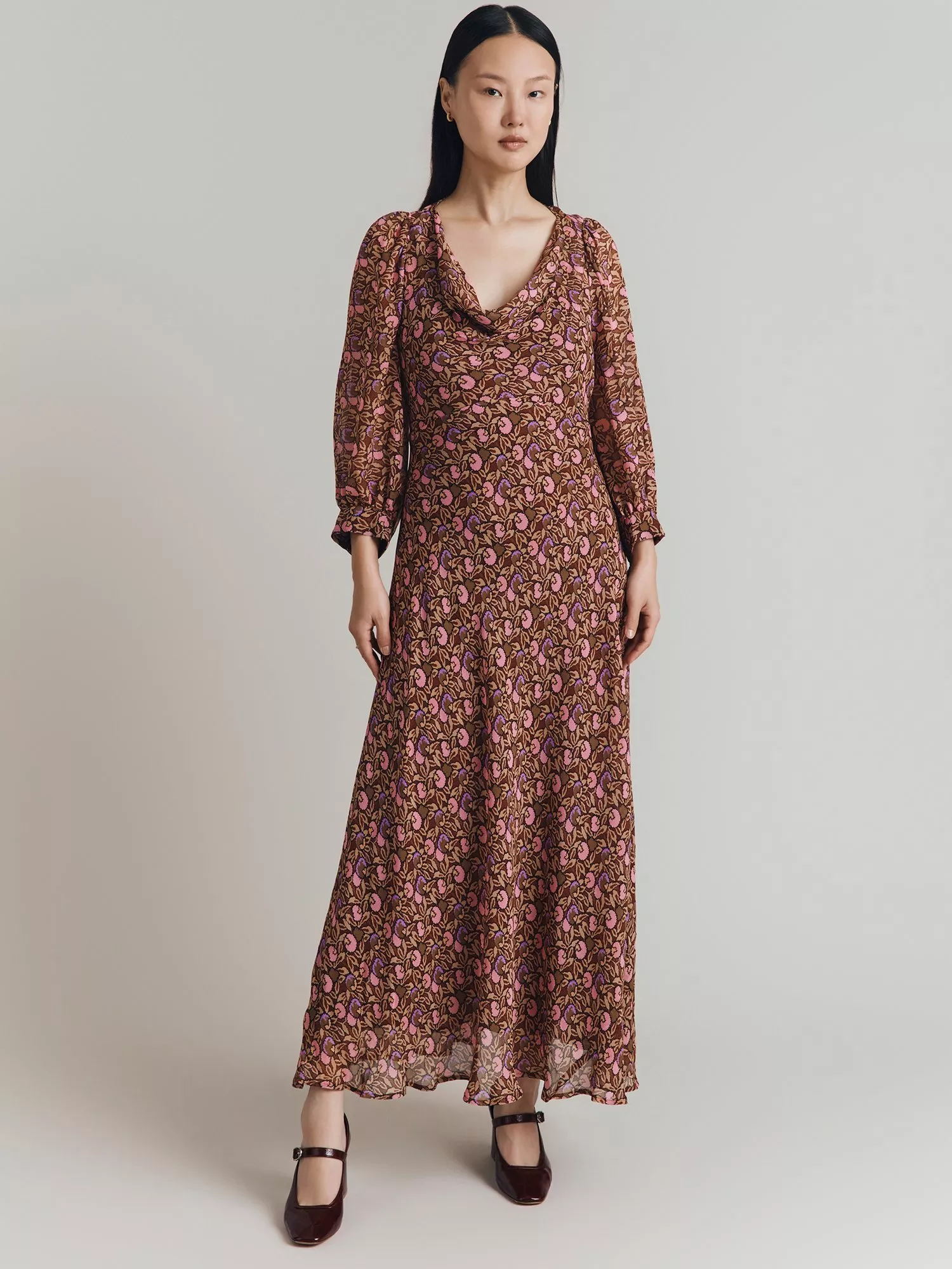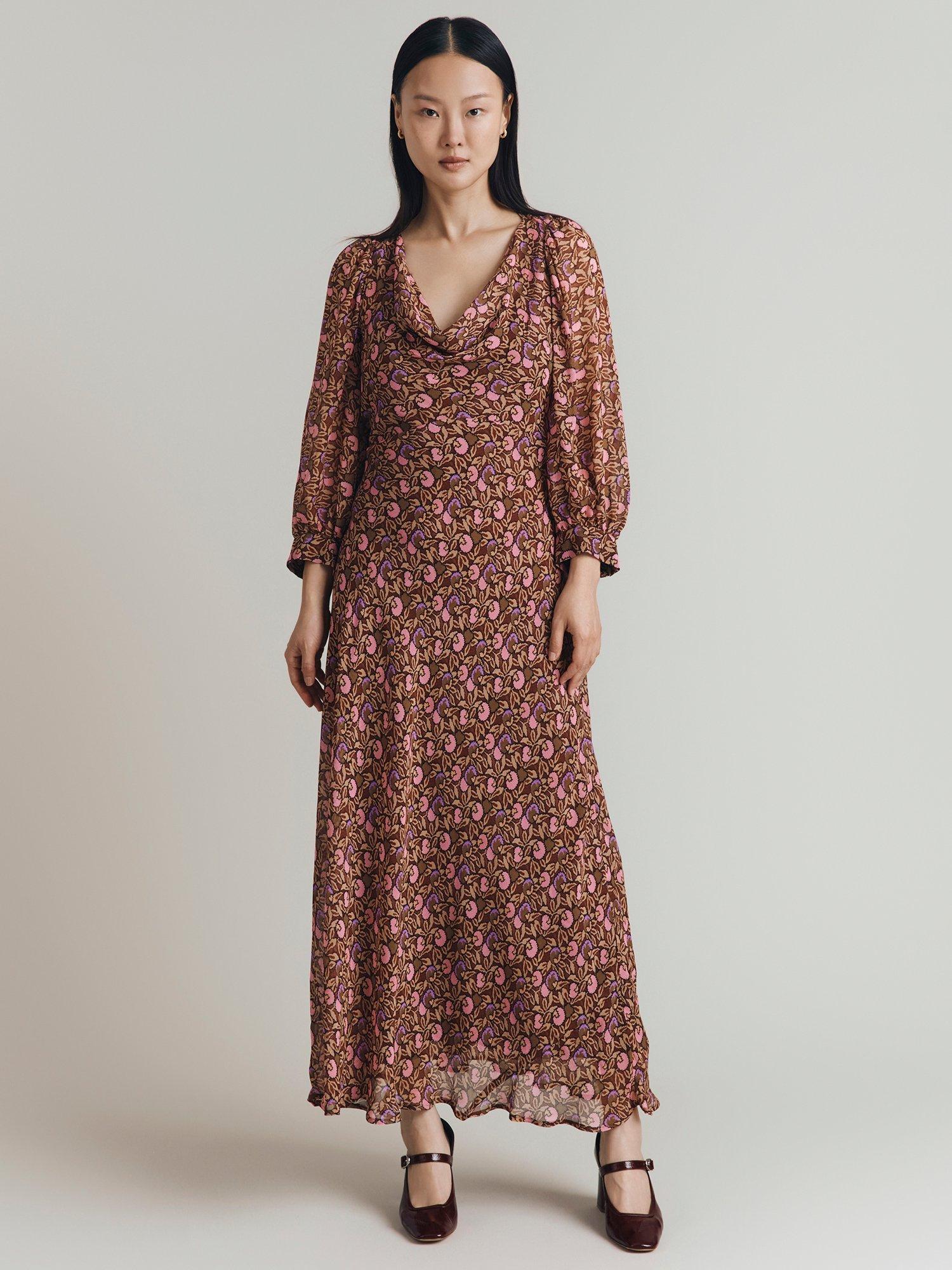 Entirely flattering with its A-line shape, this floor-length dress from Ghost is made from whisper-weight viscose. Featuring a cowl neckline and three quarter length sleeves, it proves that florals aren't just for spring.