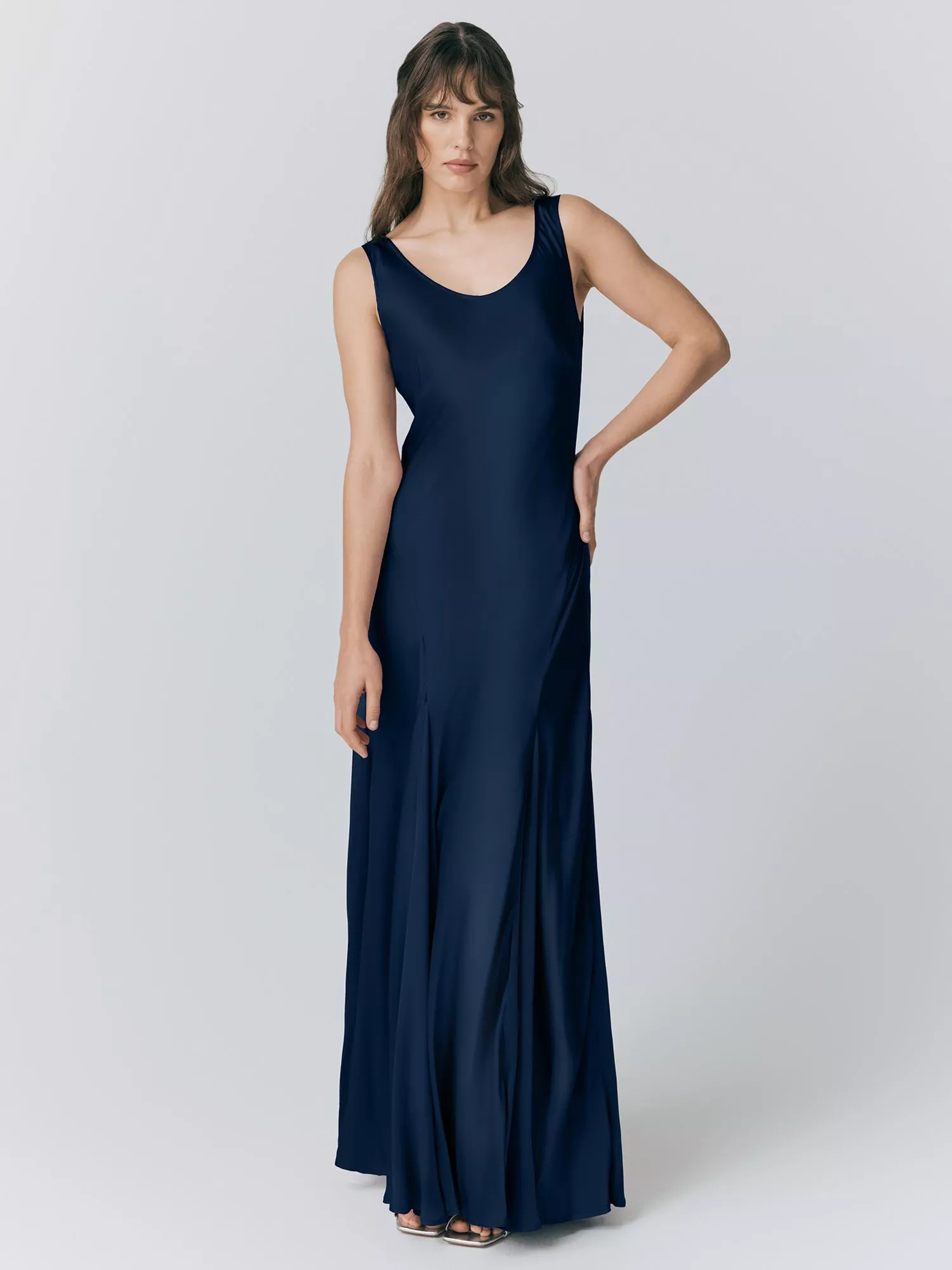 GhostWillow Scoop Neck Satin Slip Dress, Navy