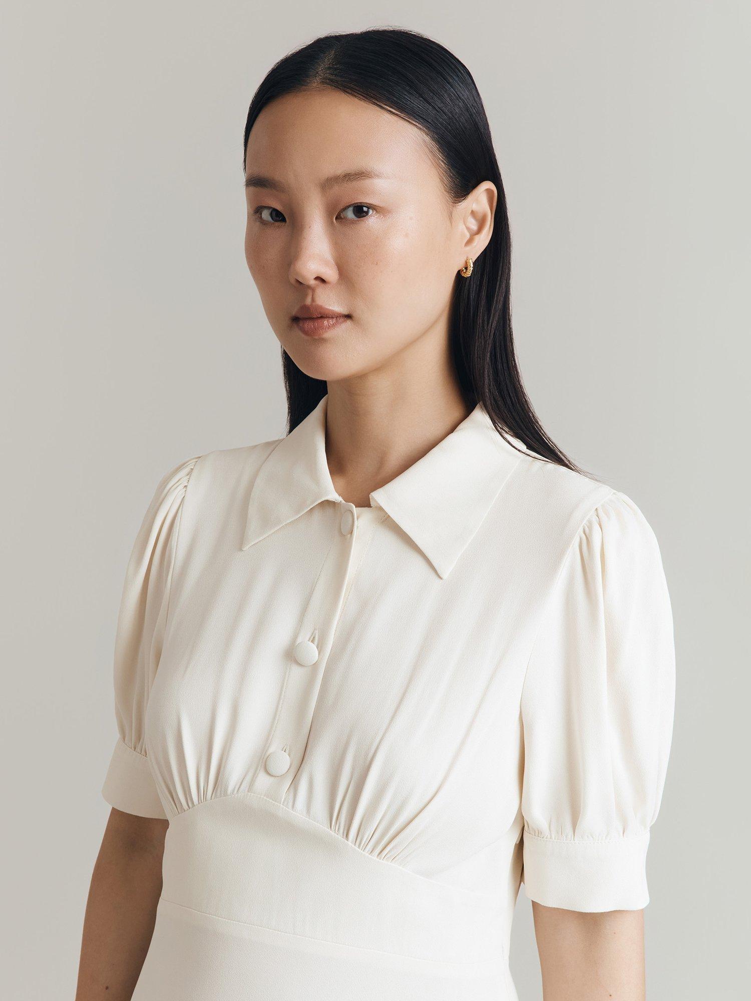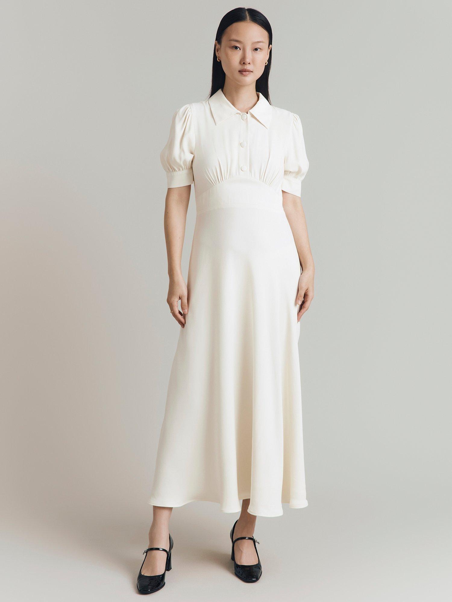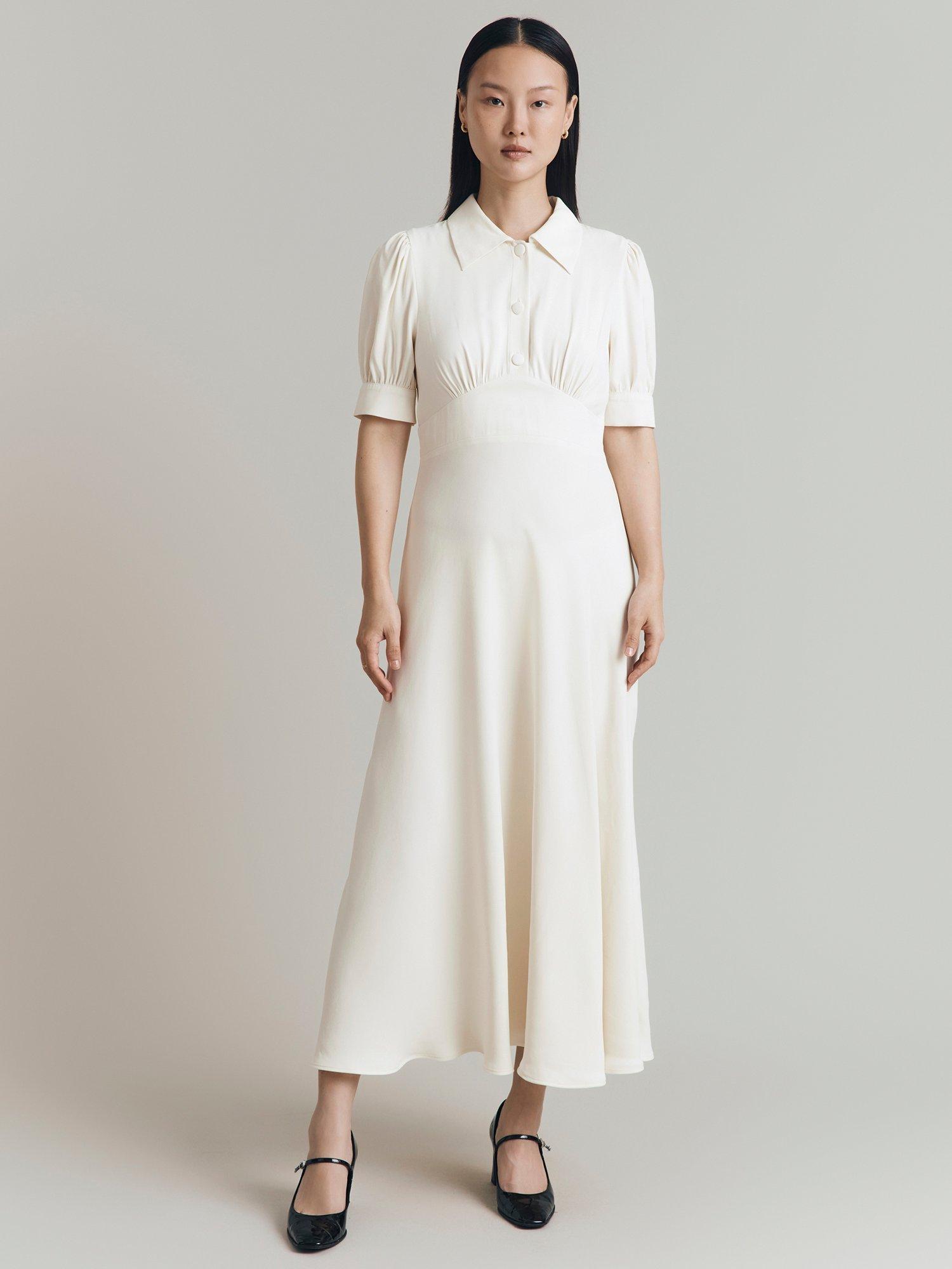 Elegantly cut into a subtly flared silhouette, this midi dress from Ghost is made from viscose that's beloved for its weightless feel. With a collar neck, short slightly puffed sleeves and a gathered bust detail for fitted shape, it allows you to showcase its versatility.