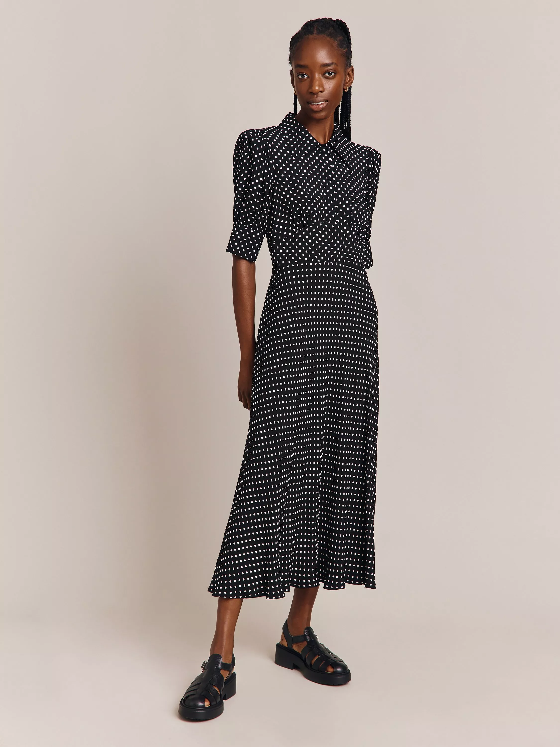 A classic style you can rely on again and again, this midi dress from Ghost is crafted from an airy viscose fabric. Smartened with a collar neckline and short sleeves, it comes in a dotty print that you can never go wrong with.