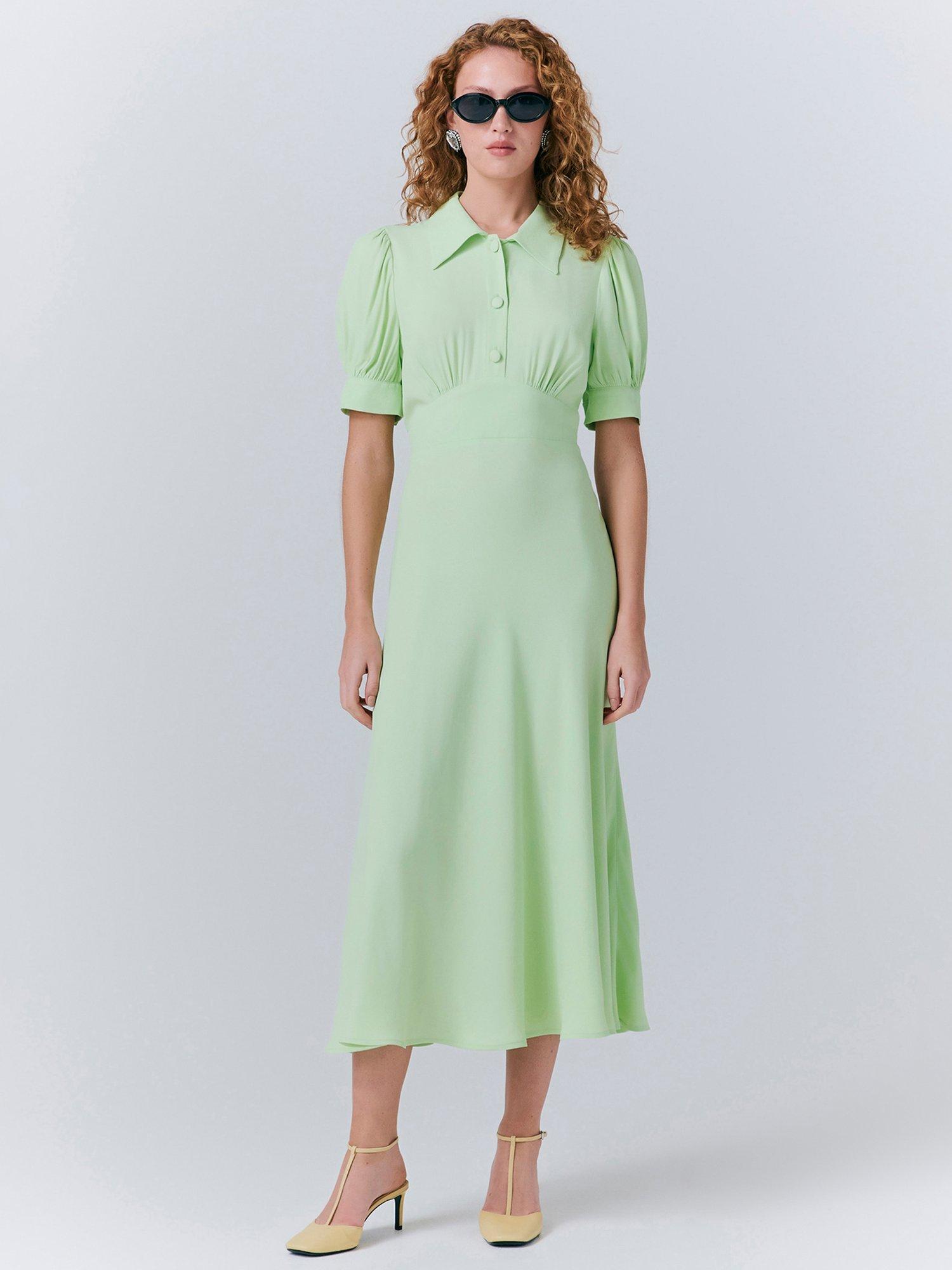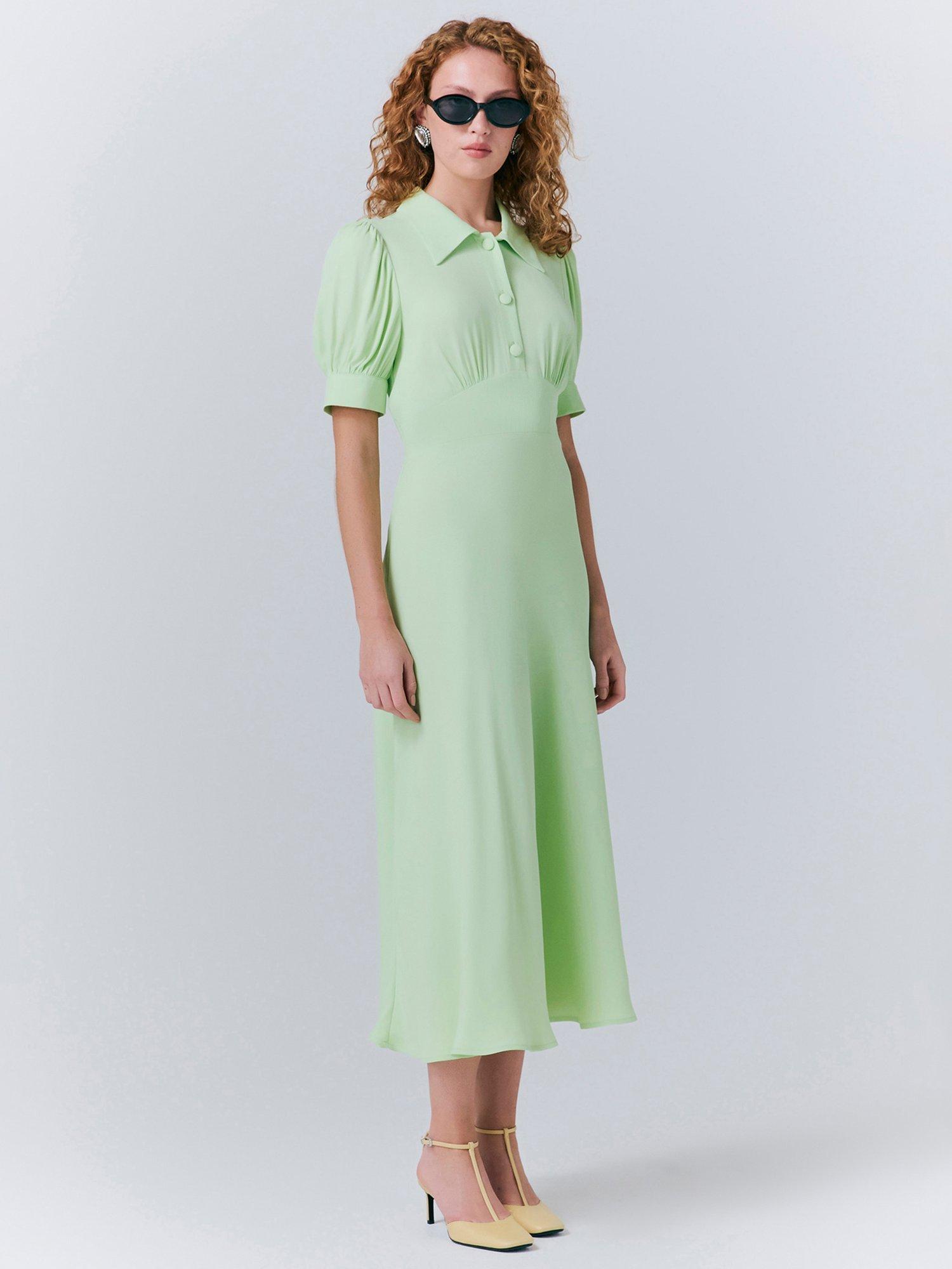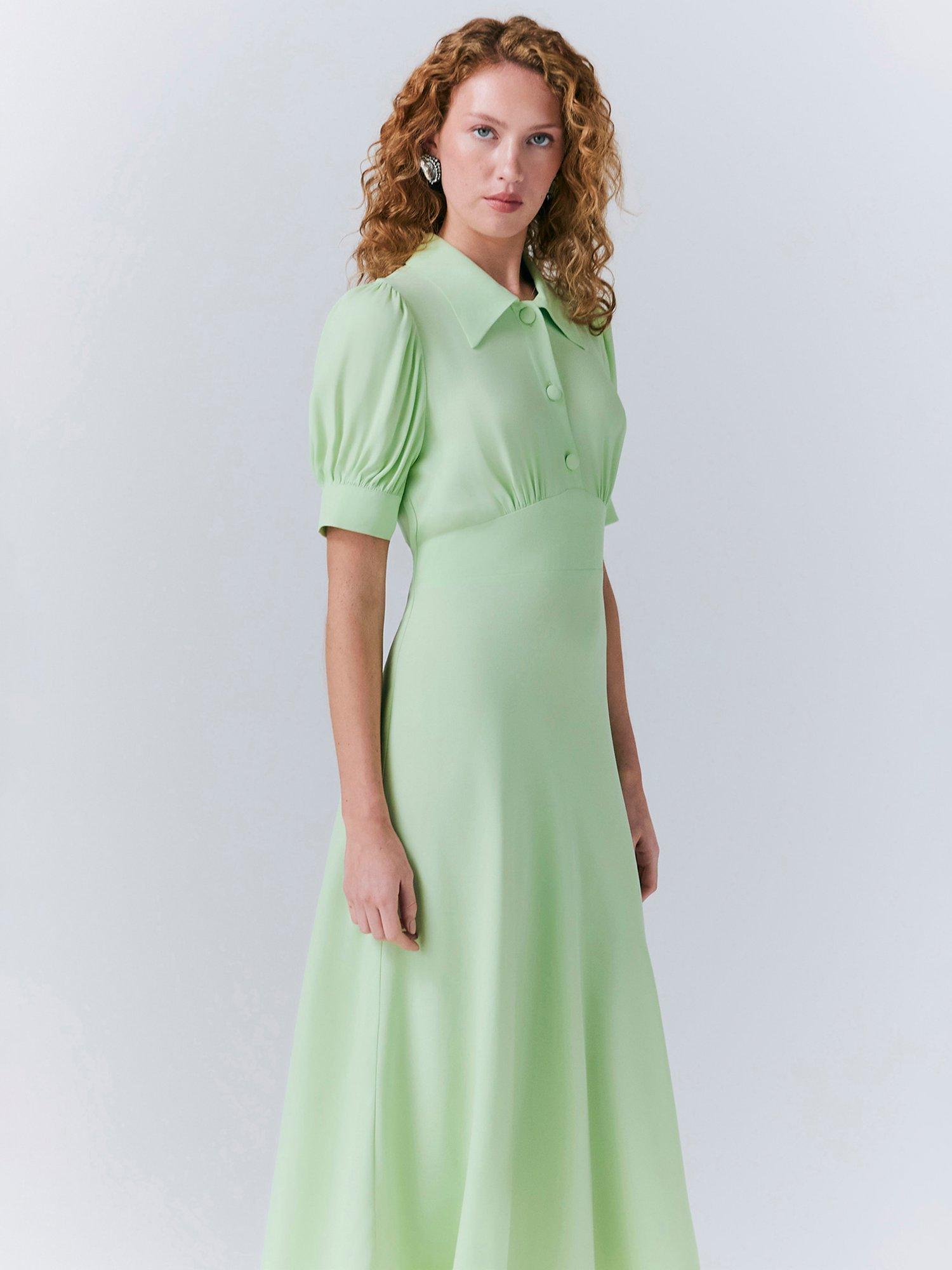 Wilma is your new go-to dress for any formal occasion you have in your diary. It has a Fifties feel that makes it perfect for occasions that require a smart, sophisticated look. A panel at the waist creates a fitted silhouette that leads into a bias cut skirt, while a hidden inner pleat at the shoulder adds volume to the puff sleeves. Satin-back crepe keeps the dress soft against the skin but matt on the exterior.