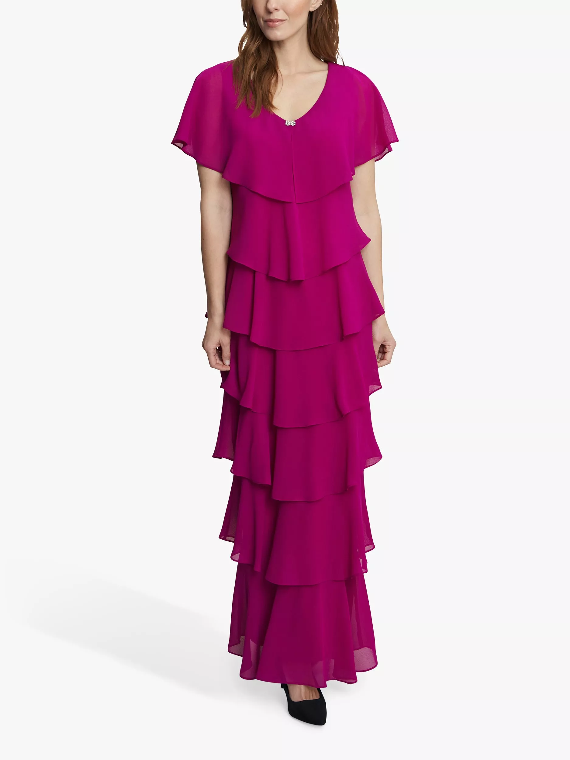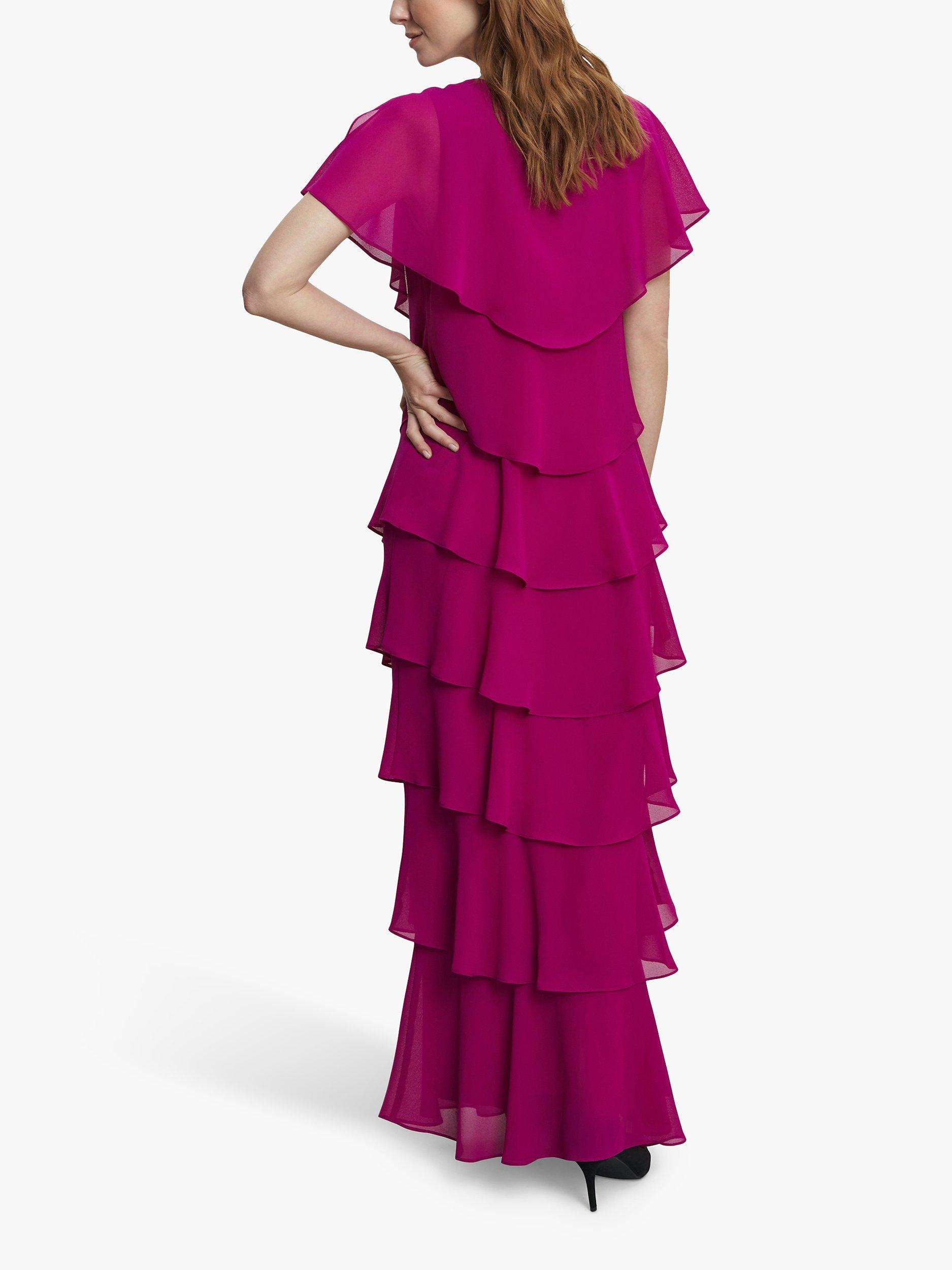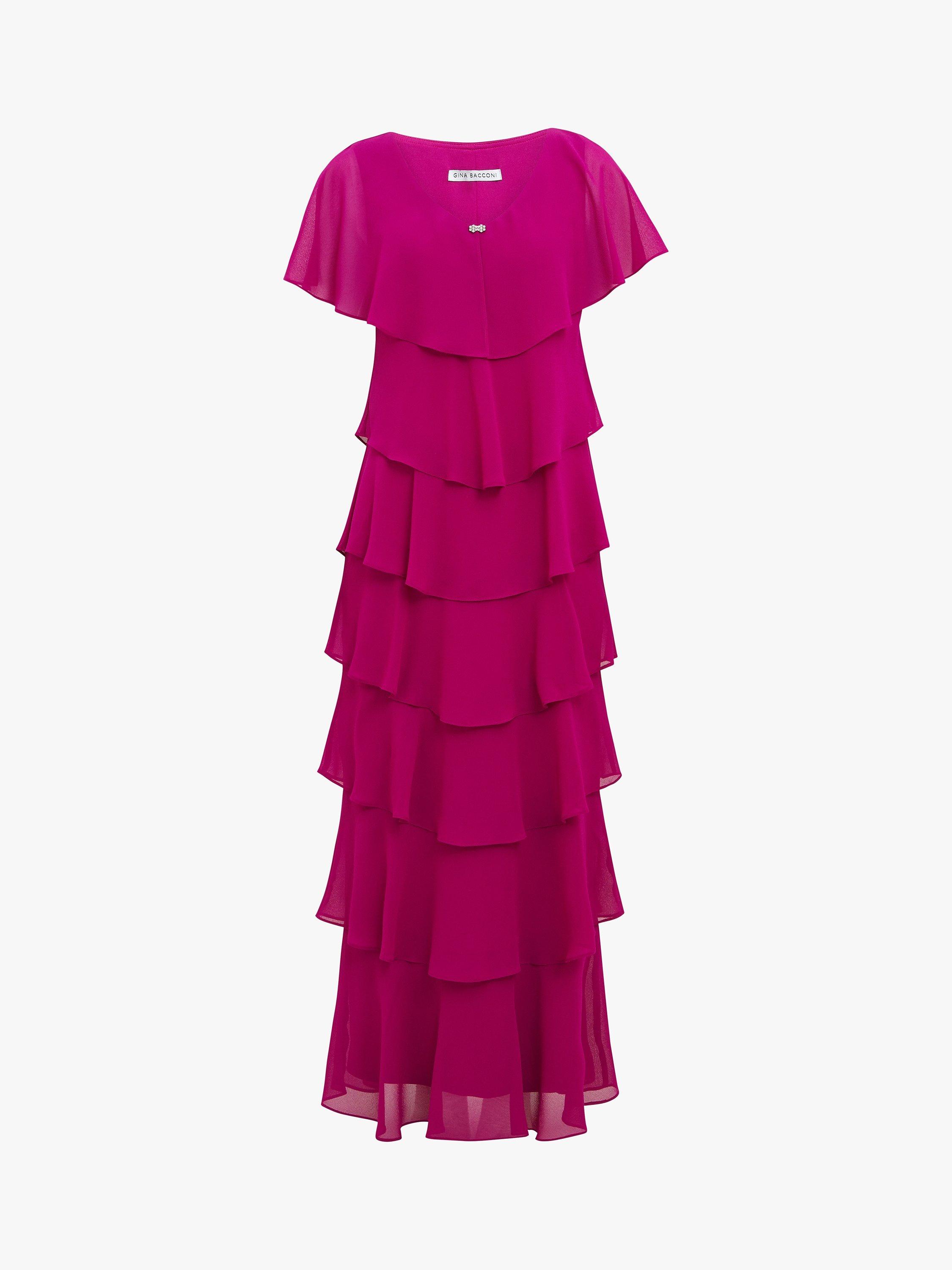 With a tiered design for added movement, this maxi dress from Gina Bacconi is an elegant choice for any event. It has a modern and flattering shape in layered pebble georgette with diamante detailing at the neck.