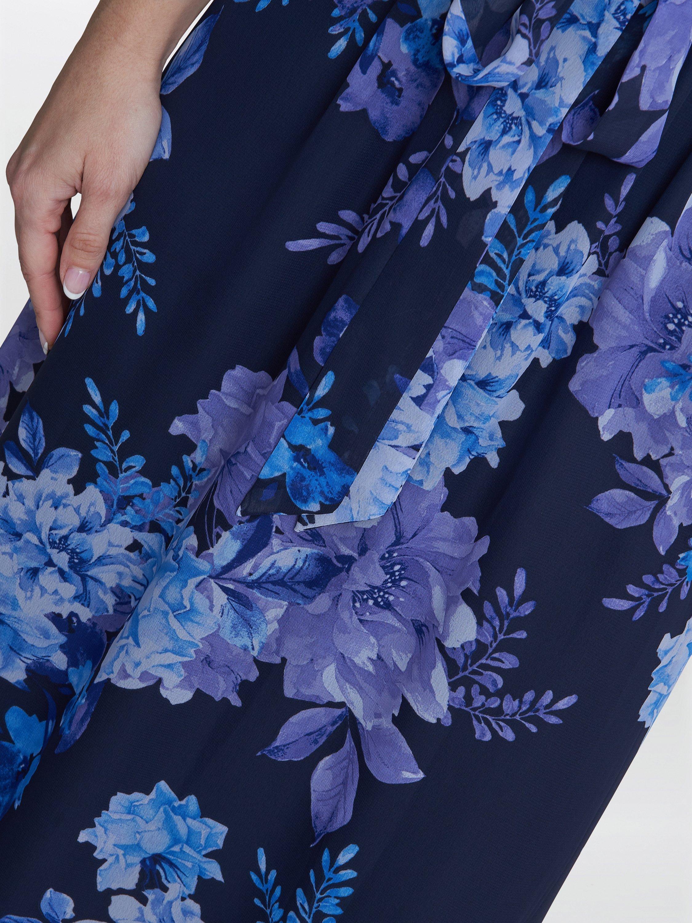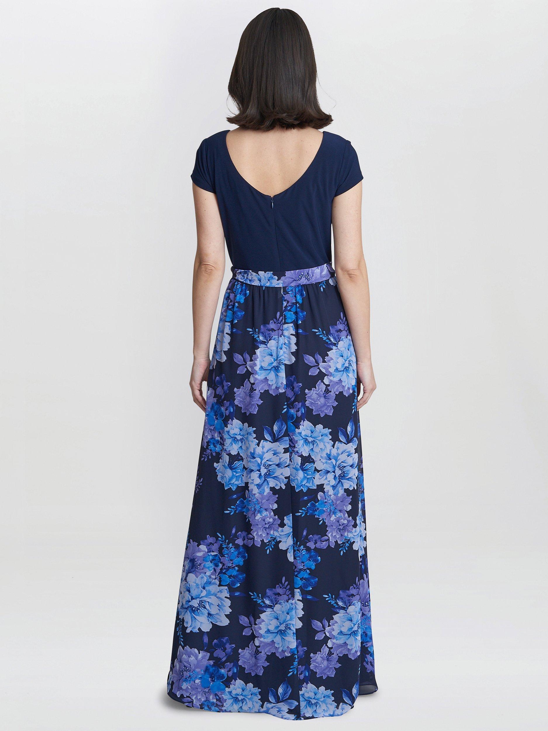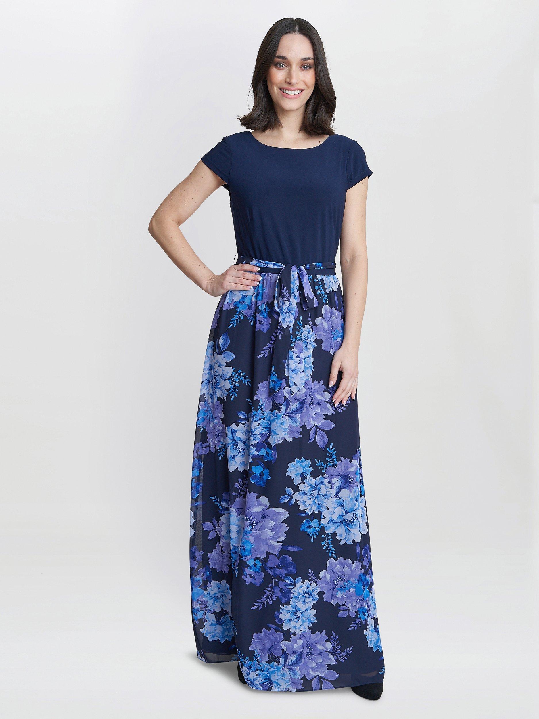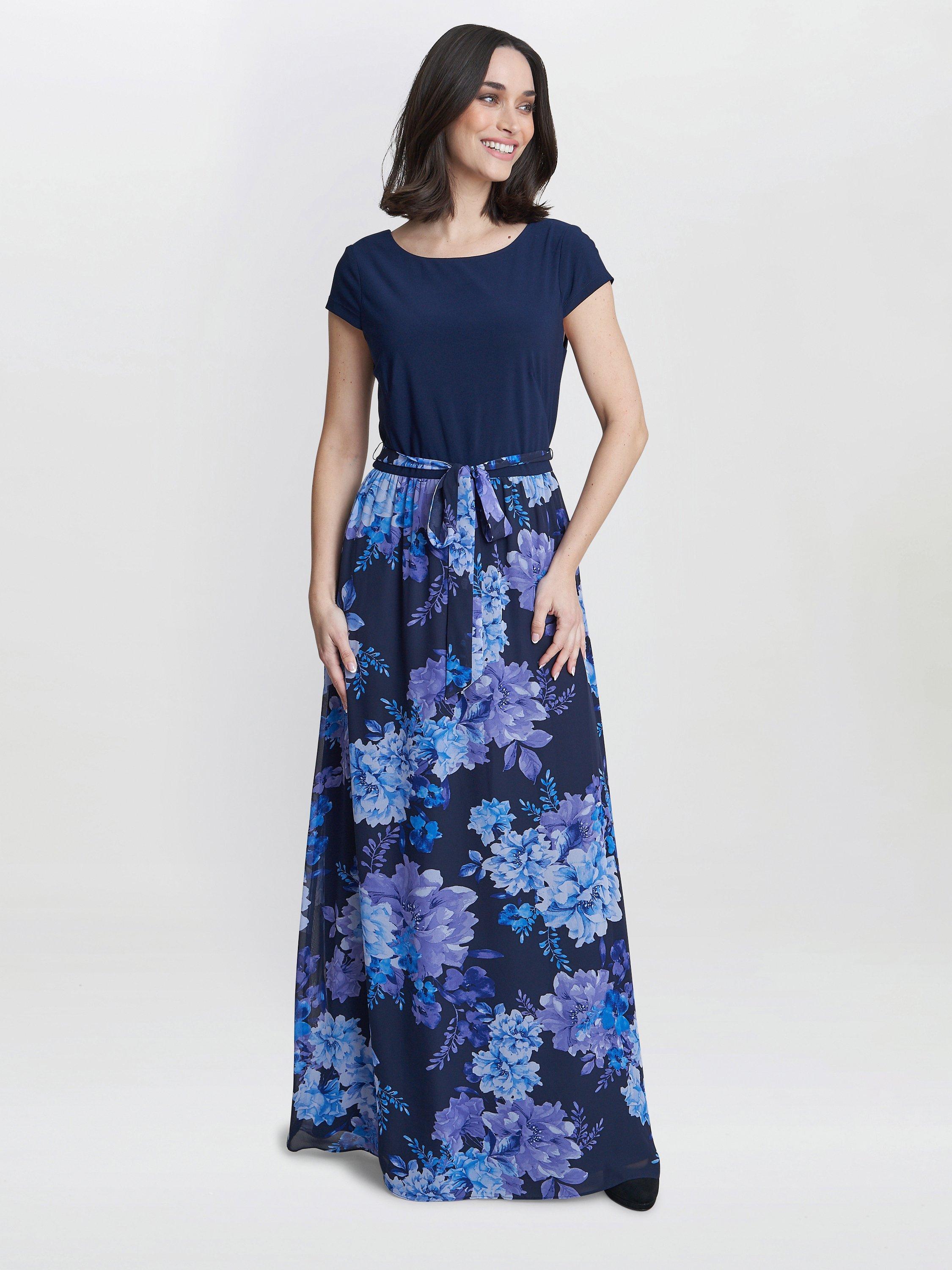 Flattering in all the right places, this maxi dress from Gina Bacconi is made using a blend of fabrics. With a traditional scoop neckline and short sleeves, it blooms with joy through a refreshing floral print.