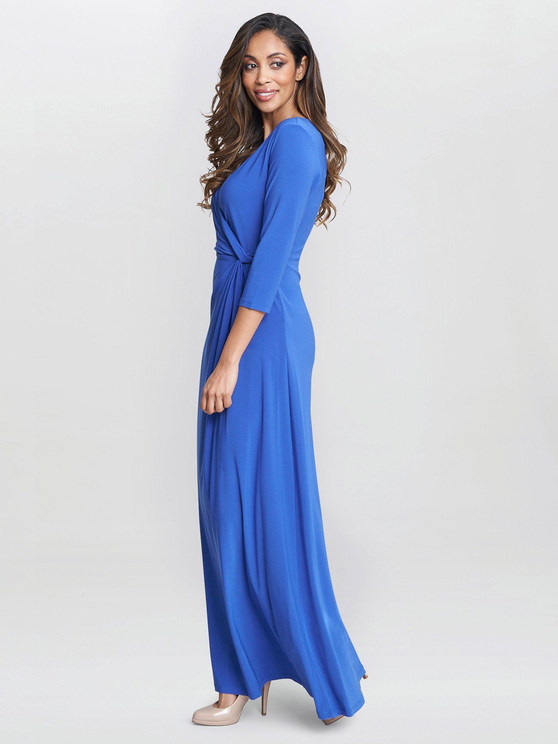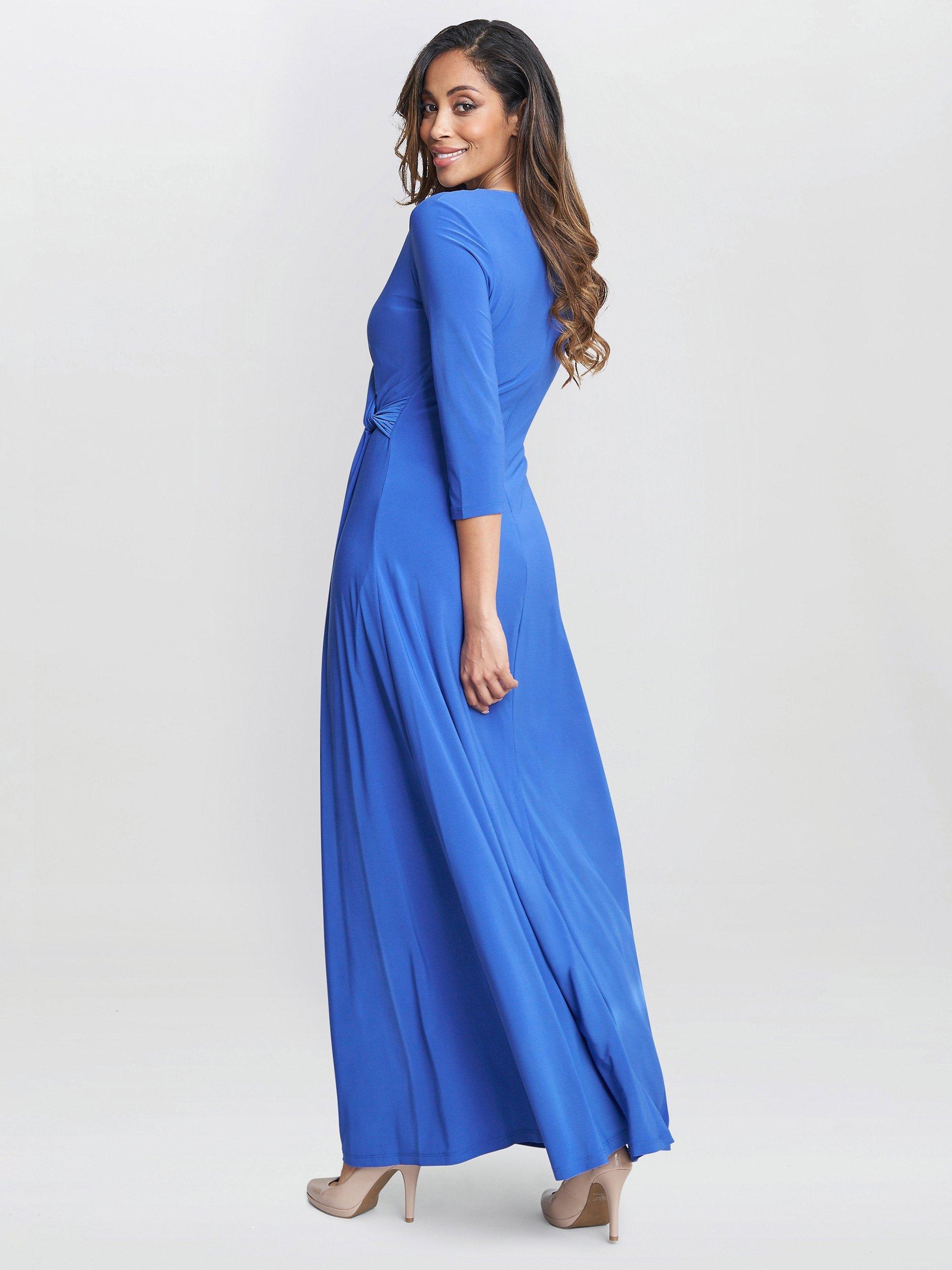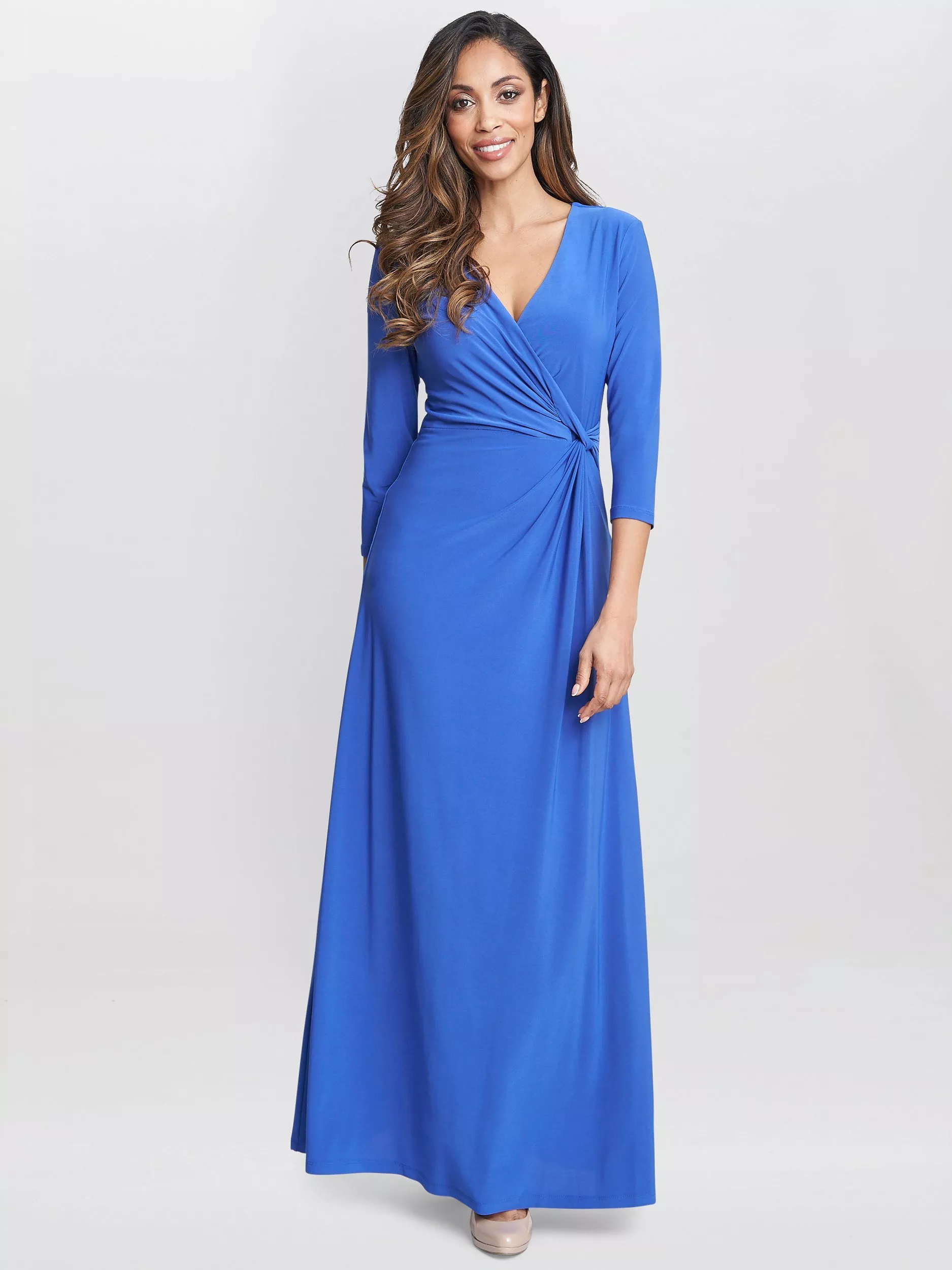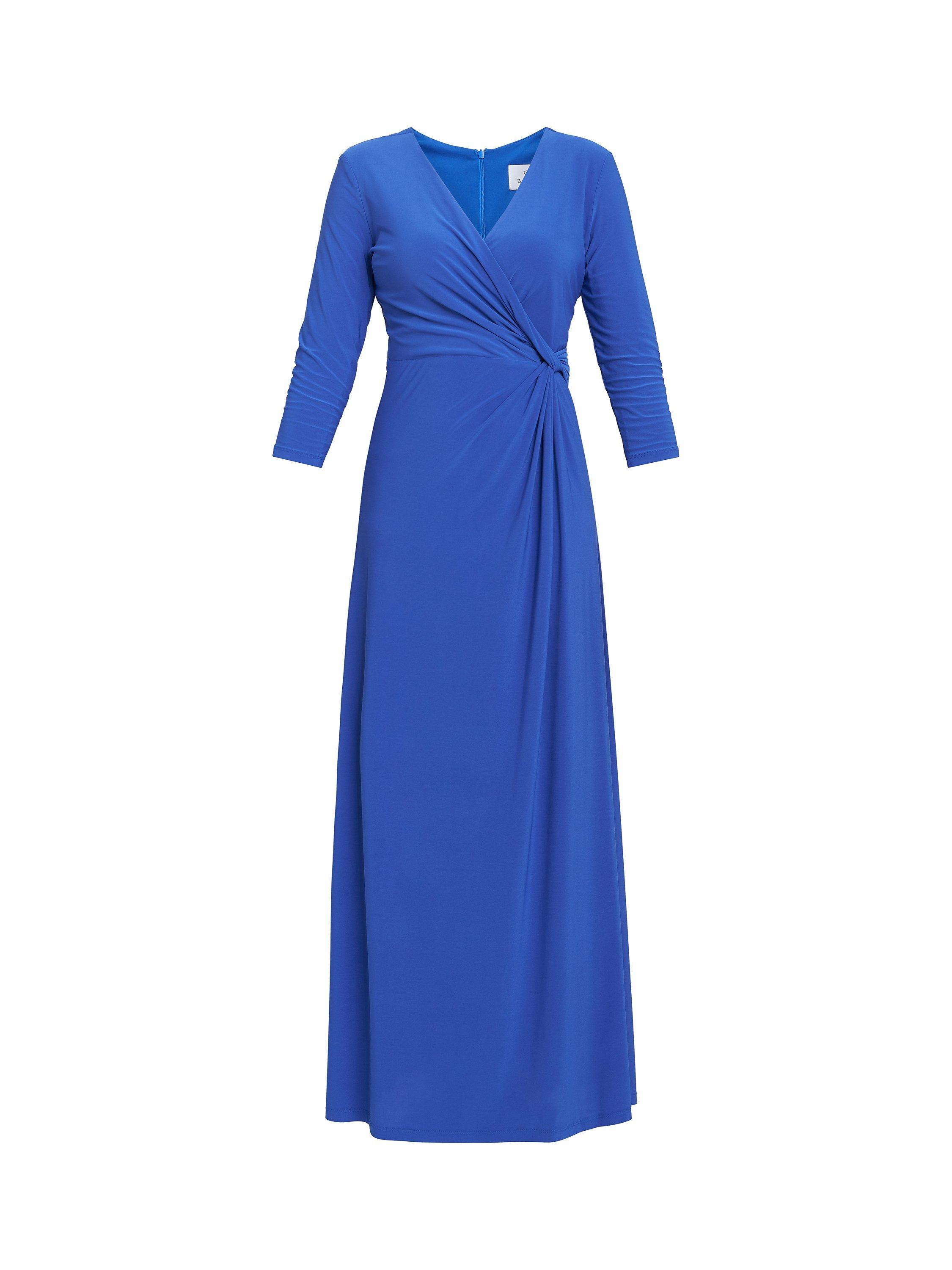 Designed in a fuss-free A-line style, this maxi dress from Gina Bacconi is made using a blend of fabrics. With a fuss-free but smart v-neckline and three quarter length sleeves, this style redefines your collection with the minimum of fuss.