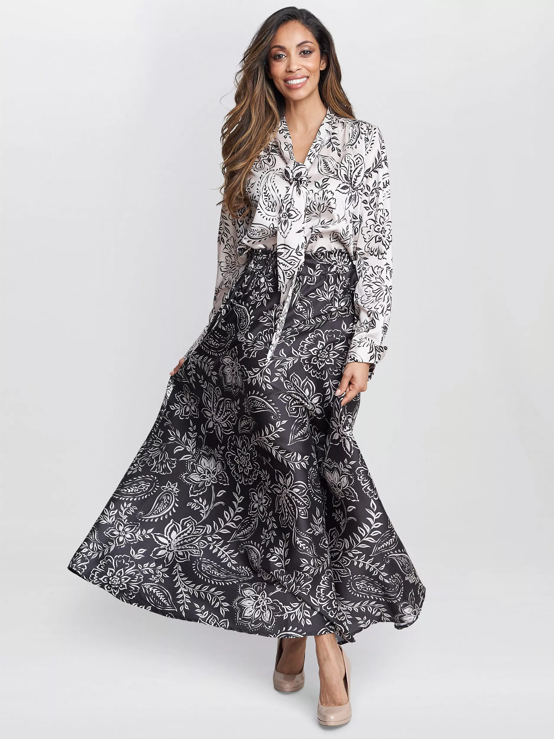 Inspired with a clean-lined profile, this maxi skirt from Gina Bacconi is planted with flourishing florals.
