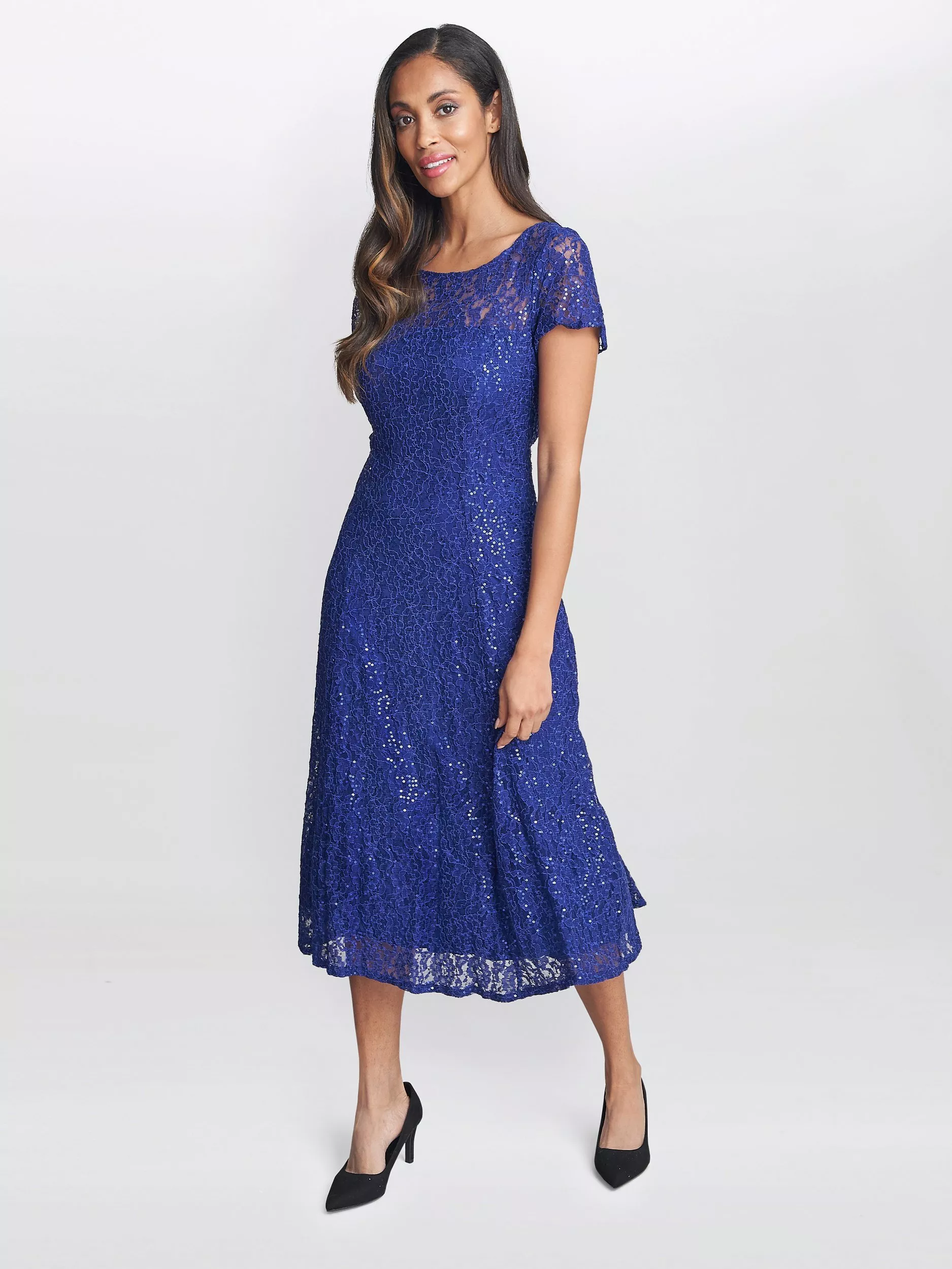 In an easy to wear A-line shape, this mid-length dress from Gina Bacconi is made from a resilient fabric. Keeping things simple with a round neckline and short sleeves, this style is embellished with intricate lace.